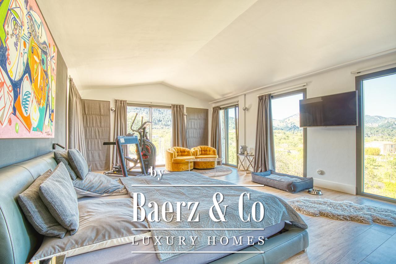 Villa Es Capdellà stands at the meeting point of Mediterranean tradition and contemporary clarity, completed in 2019 and positioned amid the rhythmic mountains of the Serra de Tramuntana. This villa integrates more than 500 m² of luminous space with windows framing steady views of the surrounding landscape, fulfilling the search for serenity and design in Mallorca.