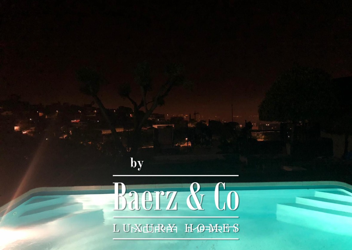 Although the interiors call for complete renovation, the structure’s unique orientation and setting invite visionary restoration. Expansive terraces frame remarkable views and a large swimming pool, establishing an outdoor rhythm that extends the living space. The plot provides the flexibility to expand vertically, subject to allowances, enhancing the property’s potential.