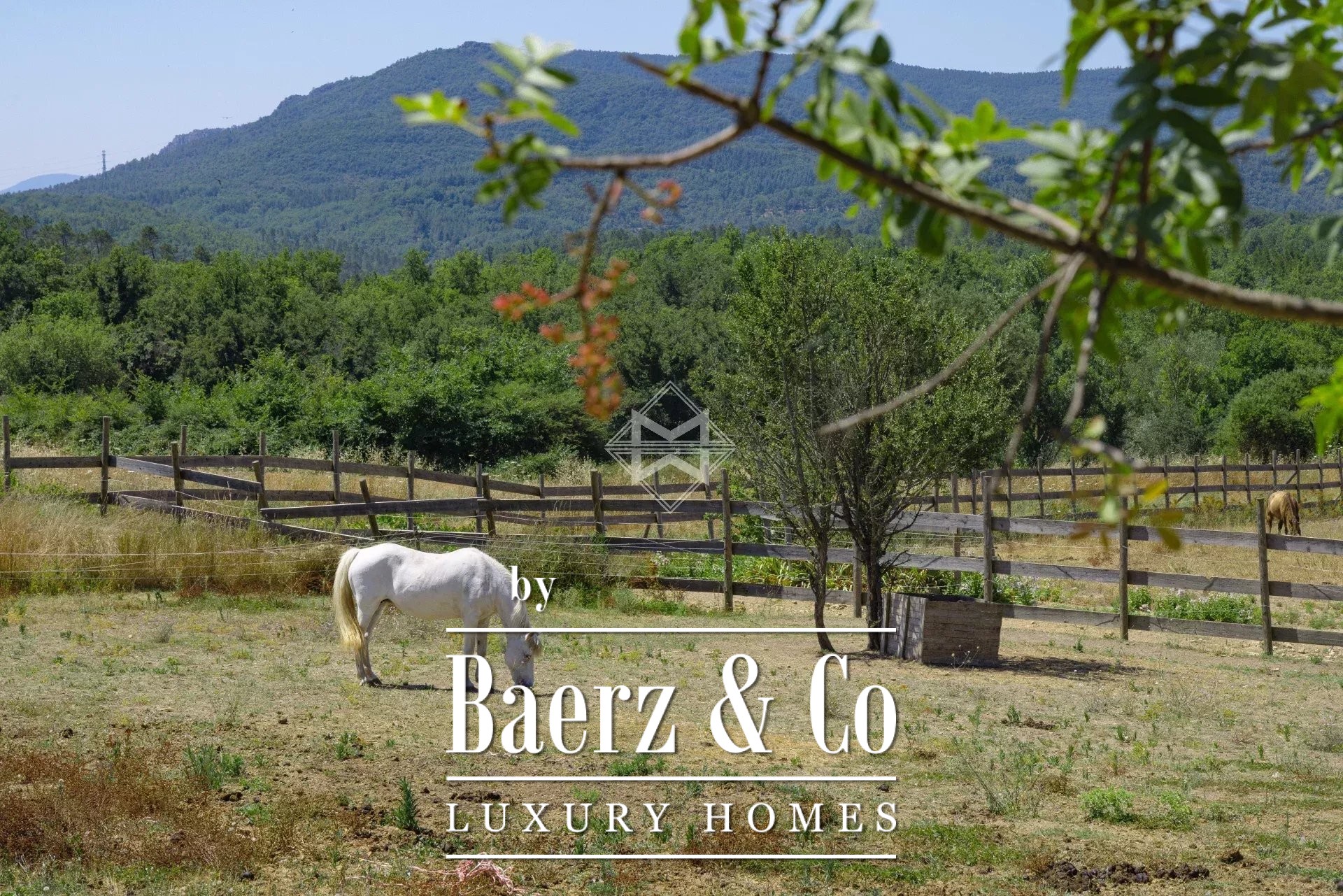 Set within 16,450 m² of preserved landscape, the farmhouse opens to sweeping countryside views, offering both serenity and inspiration. Light floods interior spaces, complemented by authentic fireplaces and the tactile warmth of original materials. Outdoor features include a swimming pool, barbecue, well, and atmospheric lighting that invite quiet contemplation or gentle gatherings. A long-tail variation, such as a luxury house for sale in Fayence, discreetly reflects its appeal to those seeking equestrian potential, bed and breakfast options, or an intimate family retreat.