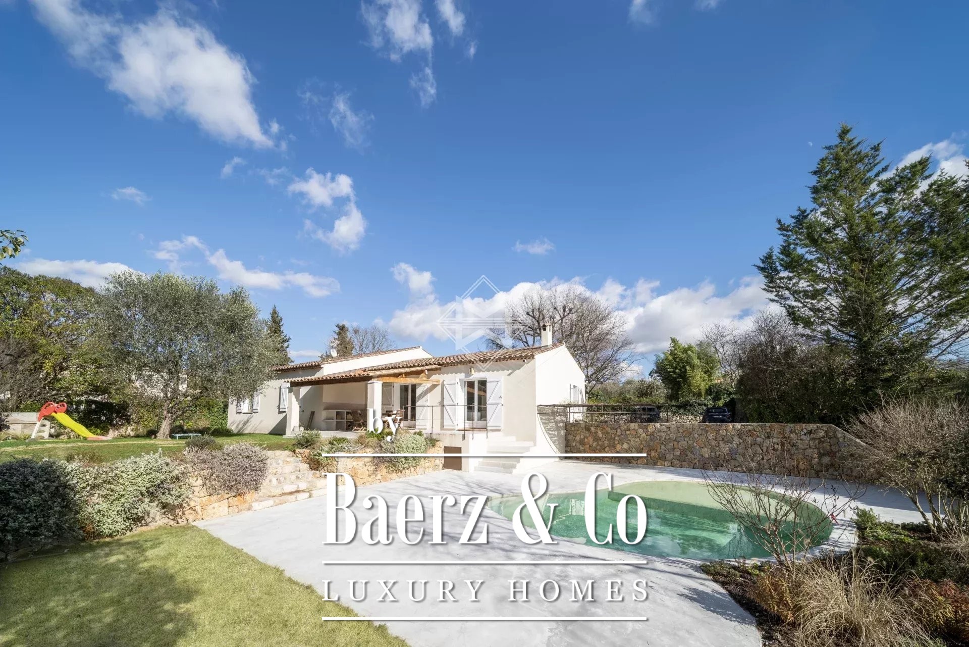 Villa Grasse stands at the end of a tranquil cul-de-sac, surrounded by 1,150 m² of landscaped garden that envelopes the home and pool in calm privacy. This fully renovated, single-storey villa offers 151 m² of living space filled with natural light. Elegant furnishings and bespoke fittings define the interior atmosphere, while quality materials bring a sense of quiet permanence.