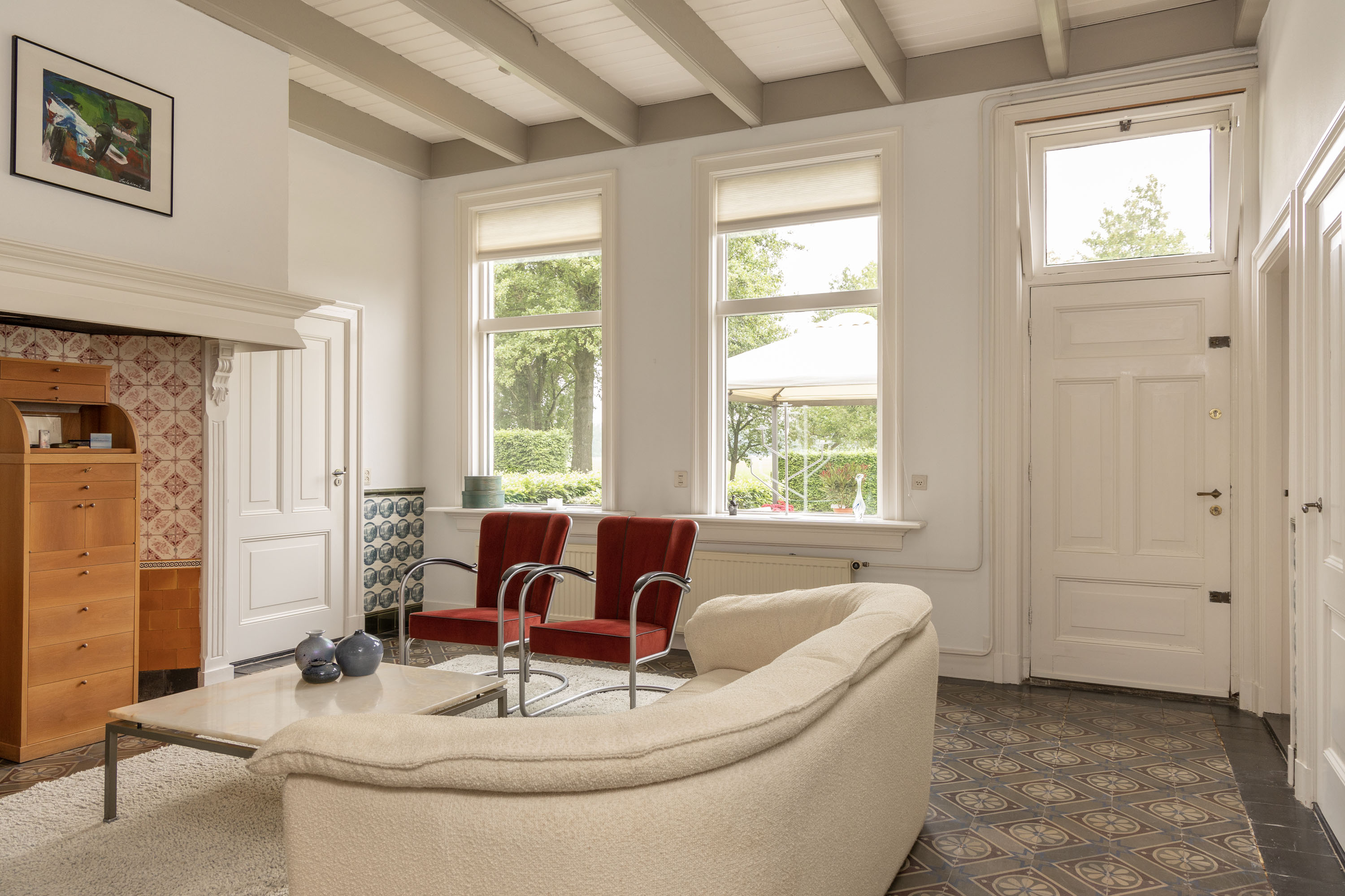 After the agricultural function of the farm was discontinued this farmhouse, built around 1915, was used for a time as two residential units. Through an architect-led renovation, these were combined into a stunning residence where authentic elements are beautifully integrated with a modern layout and design. Old beams, high ceilings and partially original floors, combined with modern features such as a contemporary kitchen, a unique master bedroom and sustainability measures like 28 solar panels, a hybrid heat pump, and partial underfloor heating ensure a charming and comfortable living experience. The farmhouse has an energy label A, with a living area of 428 m² and a volume of 1,748 m³.