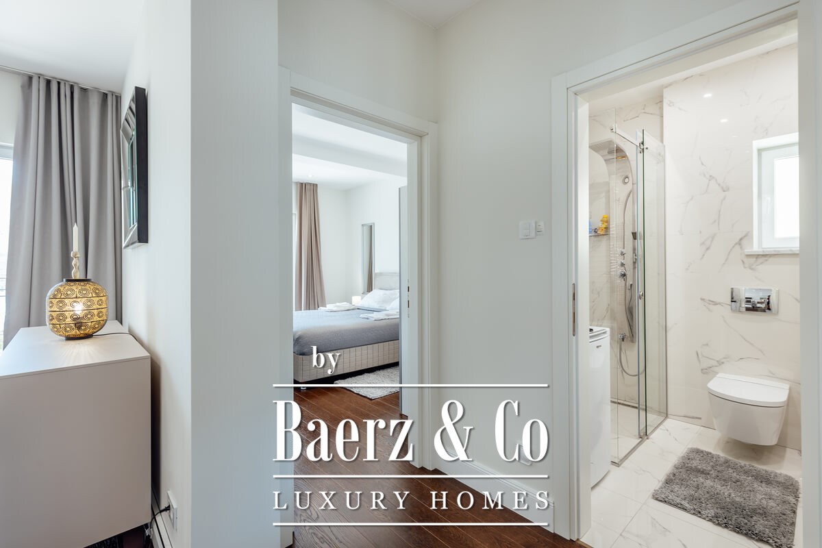 Apartment Herceg Novi offers refined living on the fourth floor of an exclusive residence within a private, five-building complex. The property comprises 115 m² of interior space, complemented by a 19 m² terrace, and features an open plan living room with kitchen and dining area, two bedrooms, and two bathrooms. Unfurnished, the apartment presents a canvas for individual expression, allowing new owners to tailor its modern volumes to personal taste.
