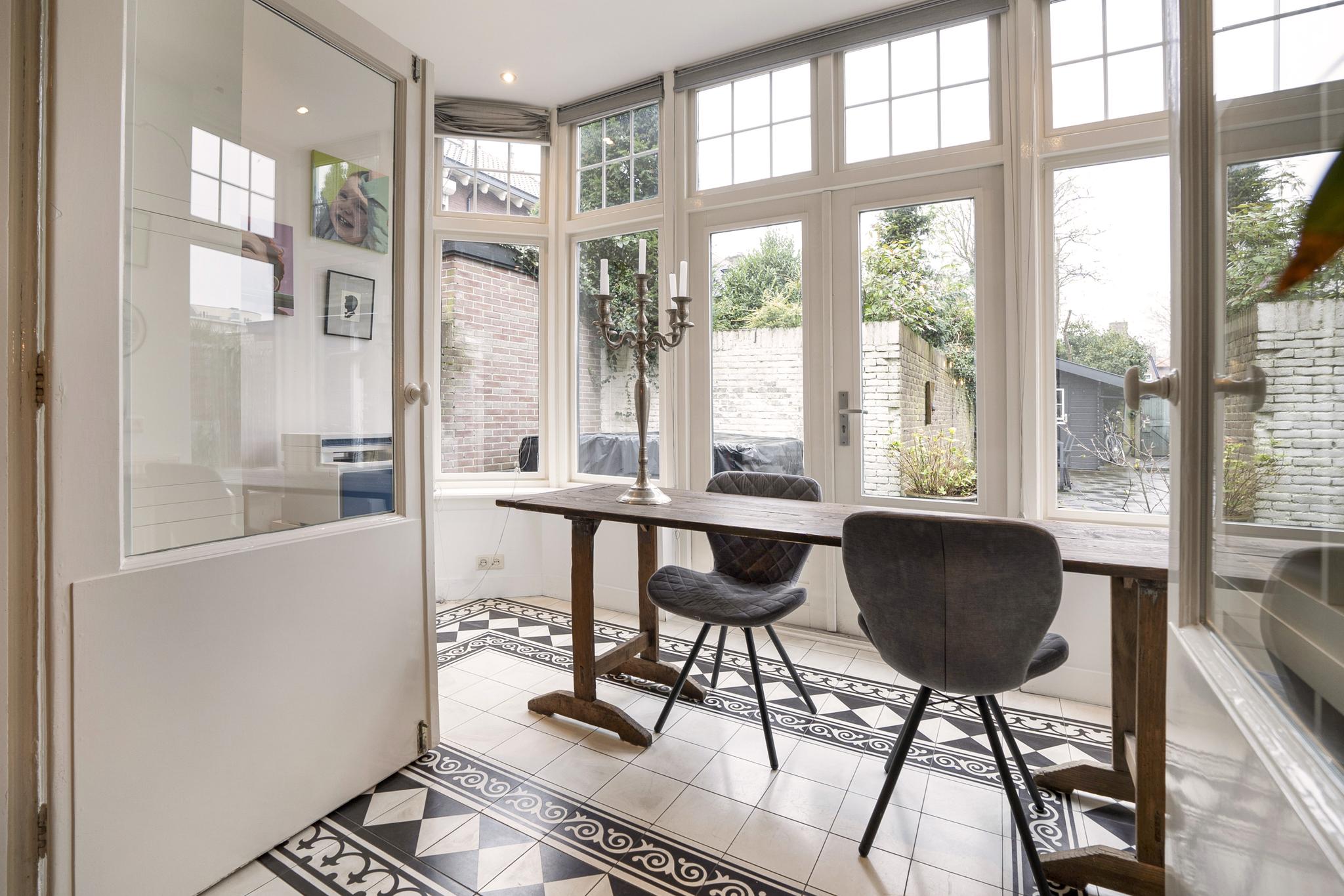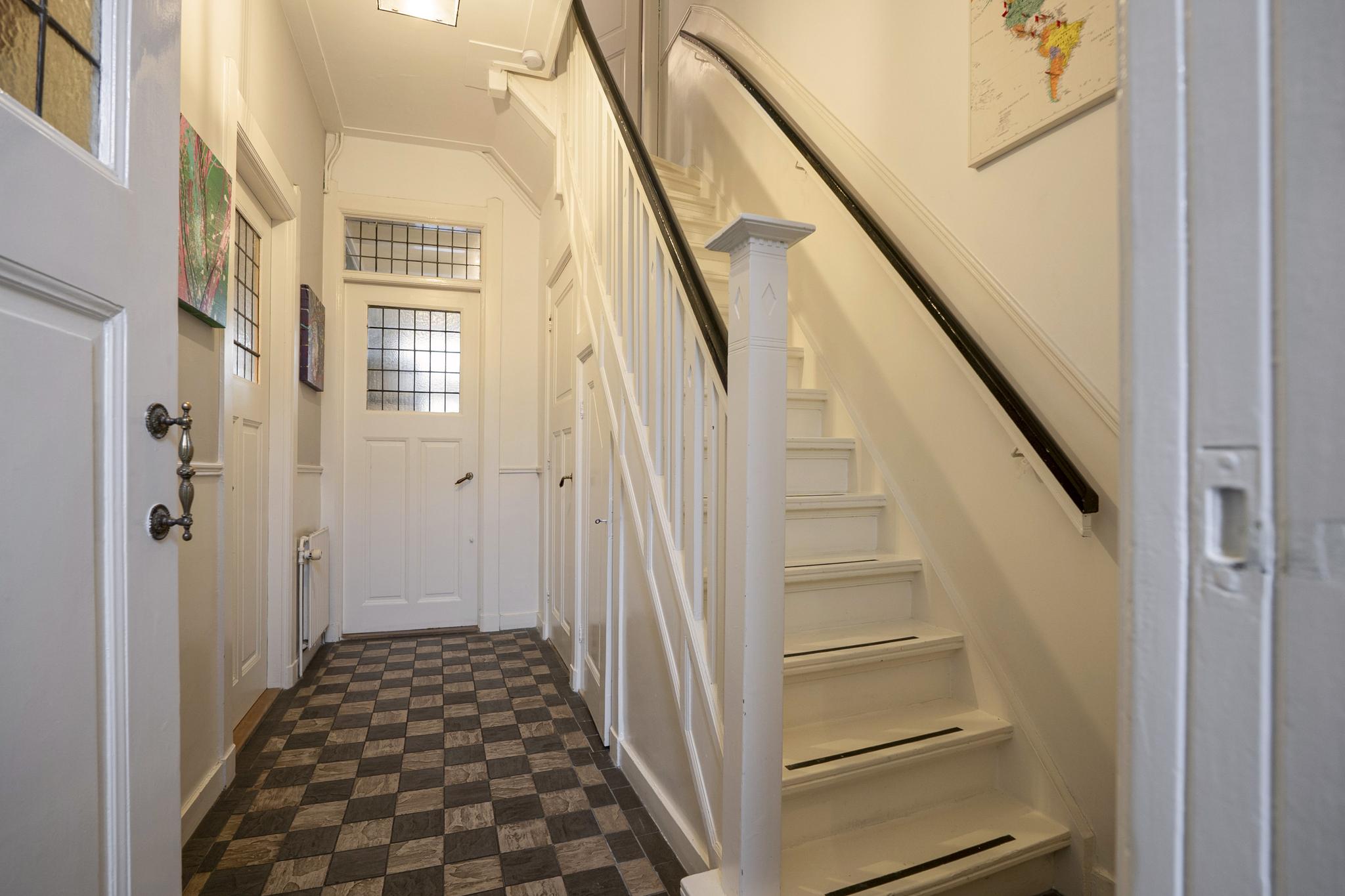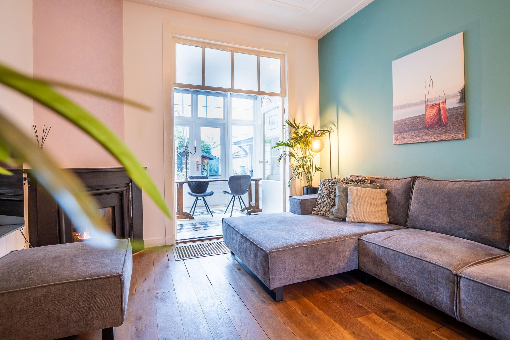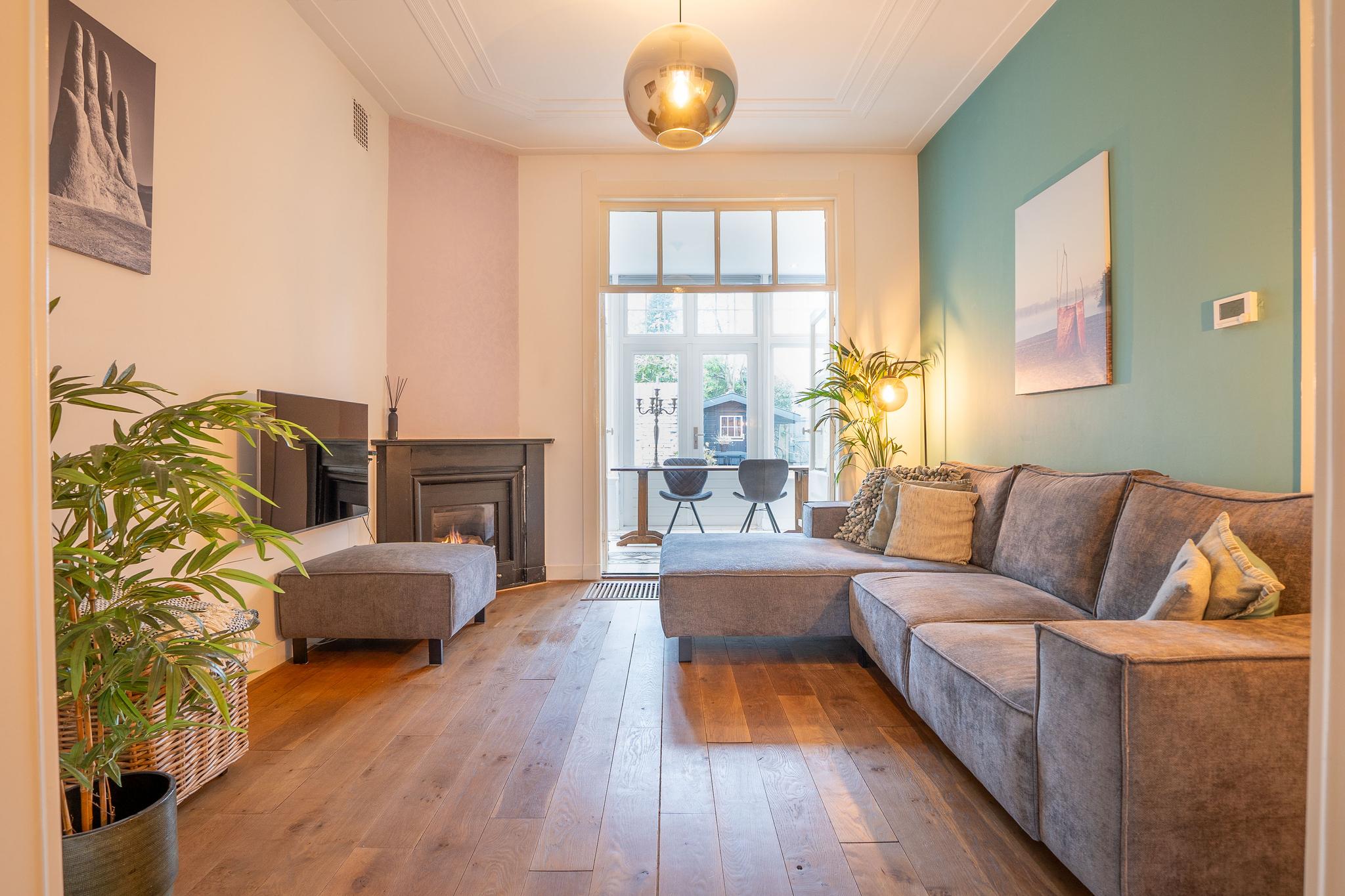 In a quiet and sought-after street near the centre of Hilversum, this charming semi-detached town house from 1910 with ample parking space is now for sale. The location offers the best of both worlds: close to the city, yet with the peace and freedom of a green, tranquil neighbourhood. The house strikes a perfect balance between historical charm and modern comfort. With original features from the early 20th century, including high ceilings, stained-glass doors, a living room with en-suite doors, black marble fireplaces, sash windows, and an impressive staircase, this is a unique home that seamlessly blends past and present.