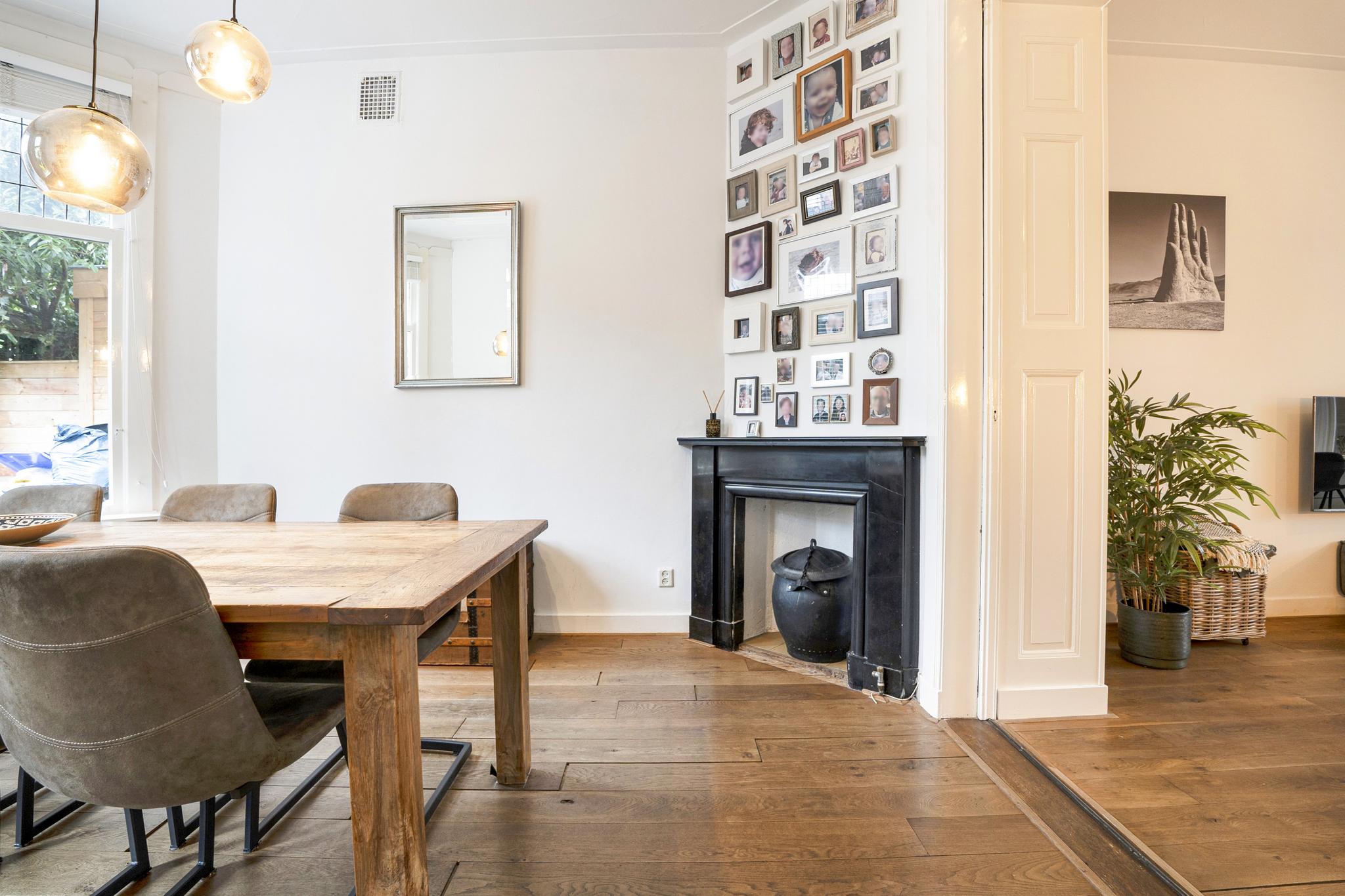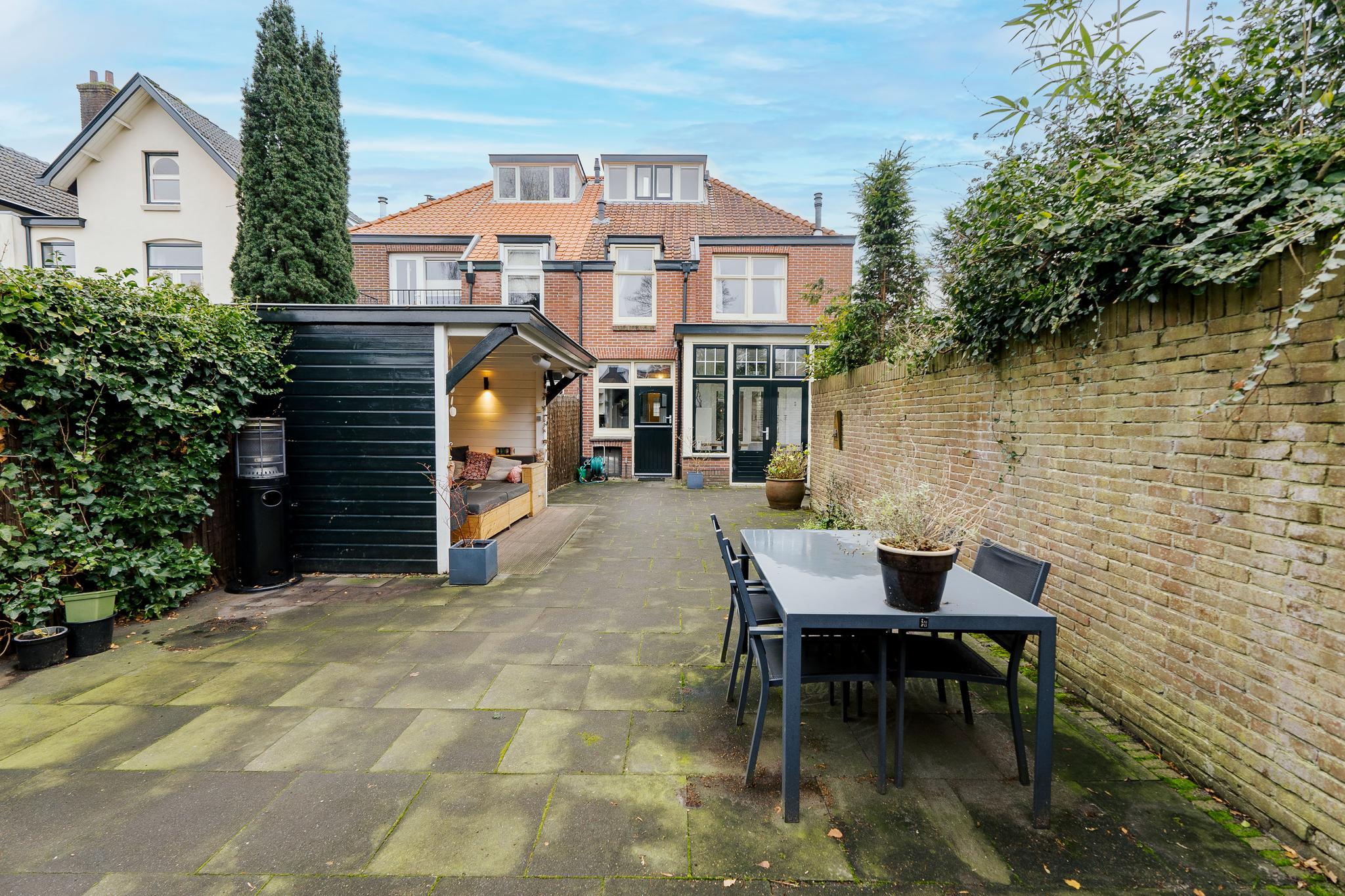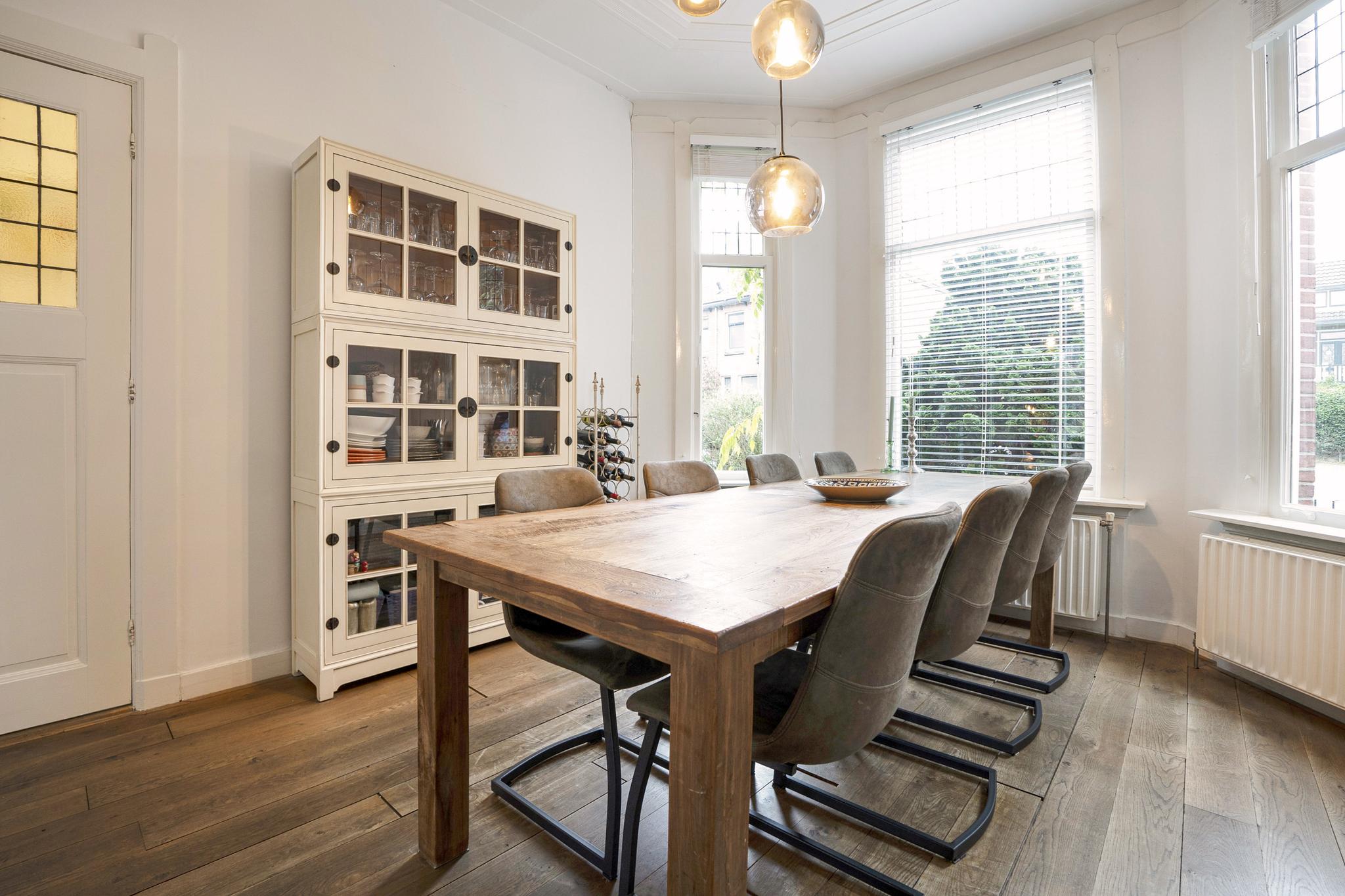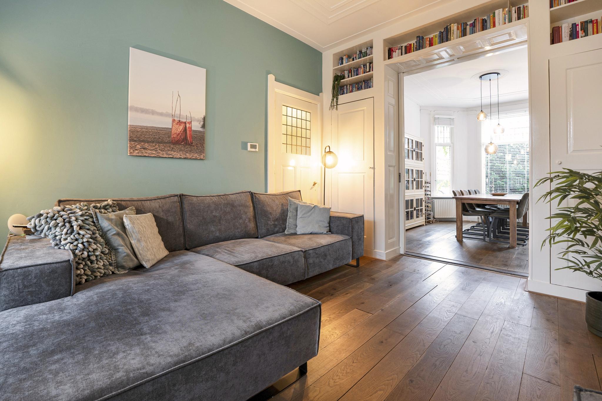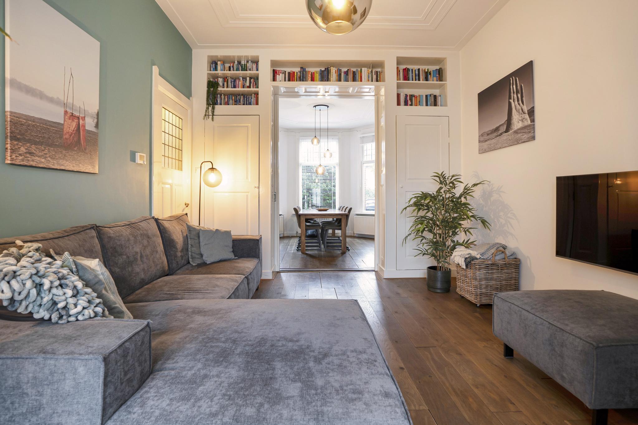 In a quiet and sought-after street near the centre of Hilversum, this charming semi-detached town house from 1910 with ample parking space is now for sale. The location offers the best of both worlds: close to the city, yet with the peace and freedom of a green, tranquil neighbourhood. The house strikes a perfect balance between historical charm and modern comfort. With original features from the early 20th century, including high ceilings, stained-glass doors, a living room with en-suite doors, black marble fireplaces, sash windows, and an impressive staircase, this is a unique home that seamlessly blends past and present.