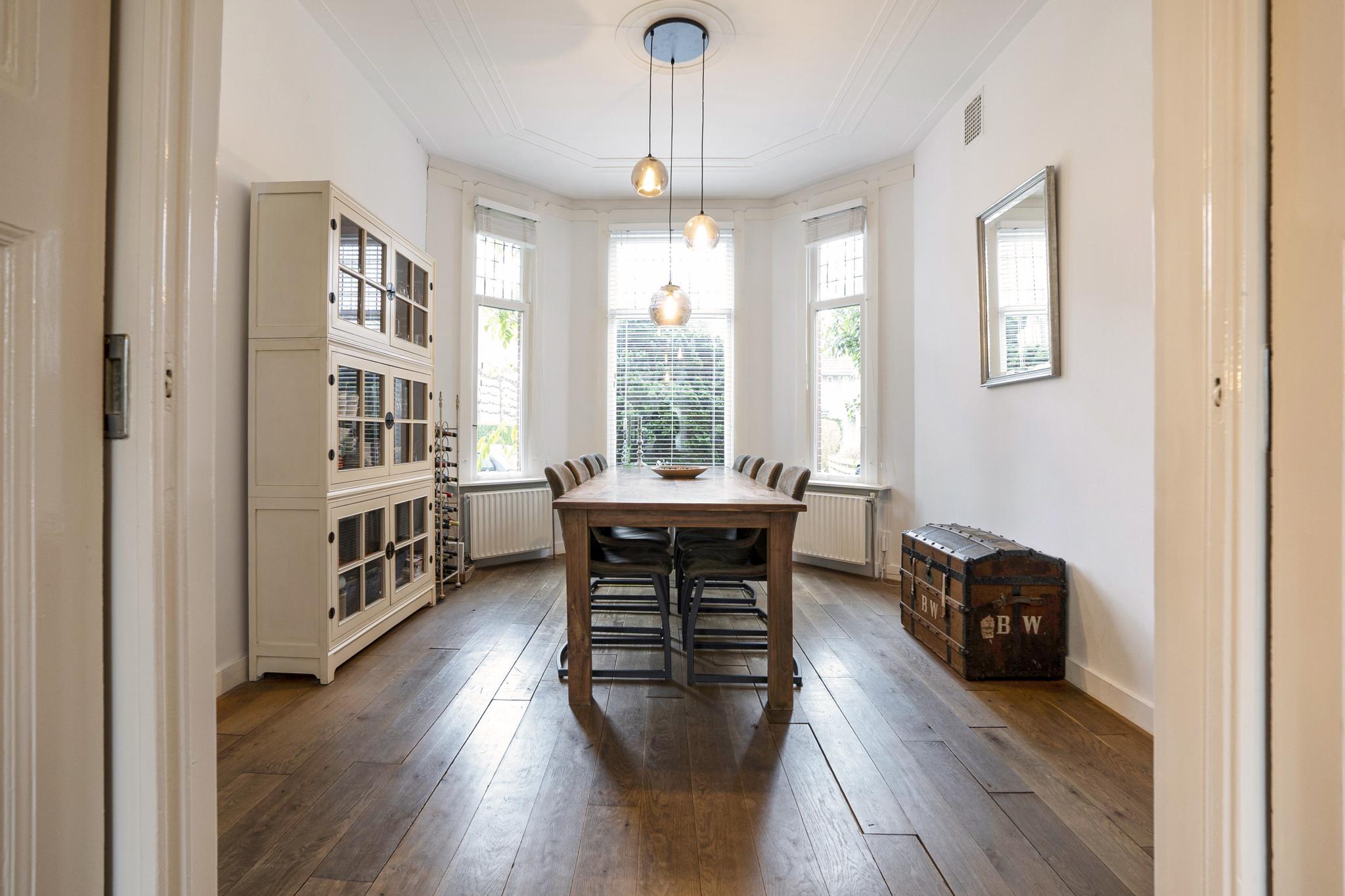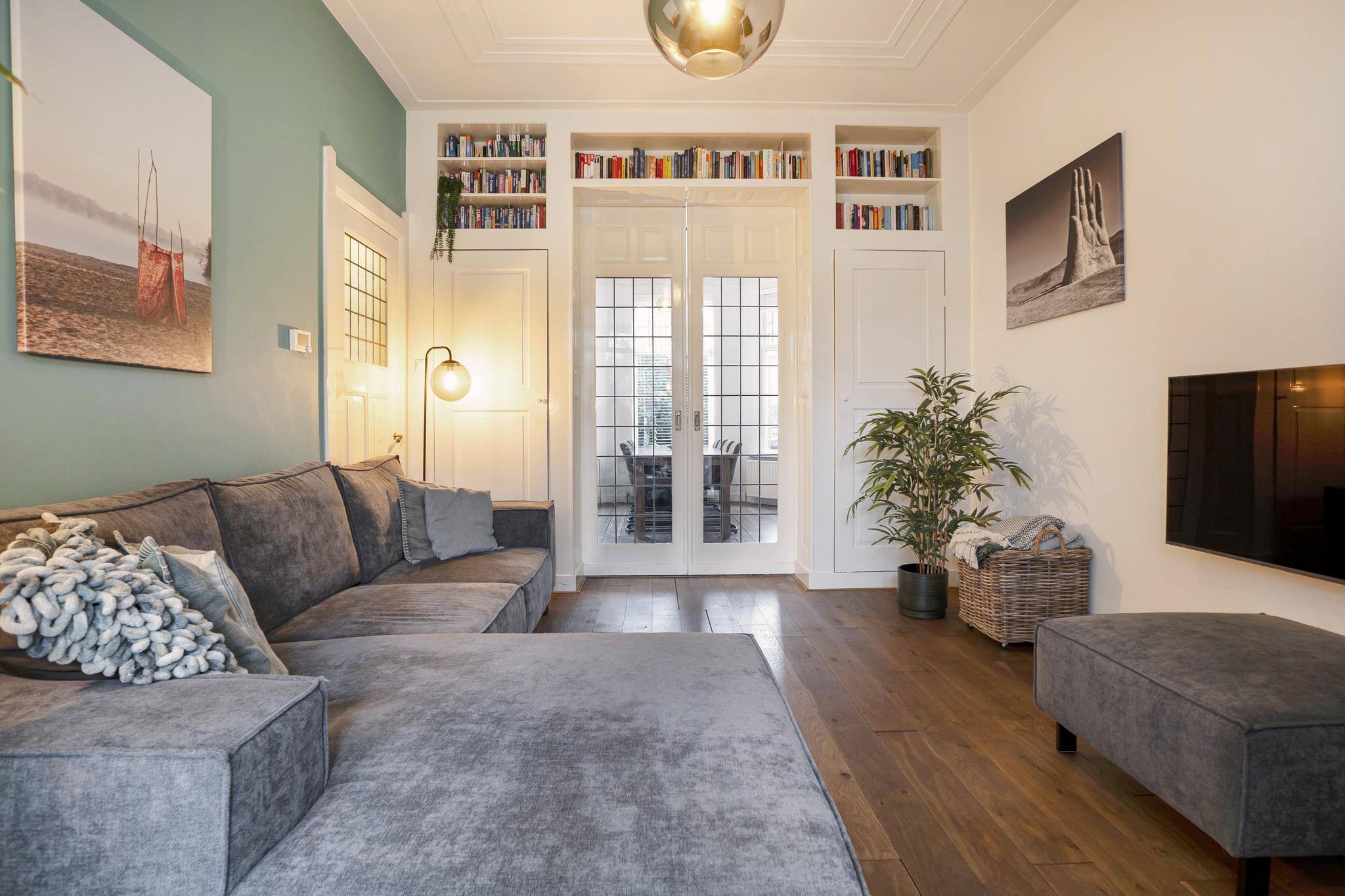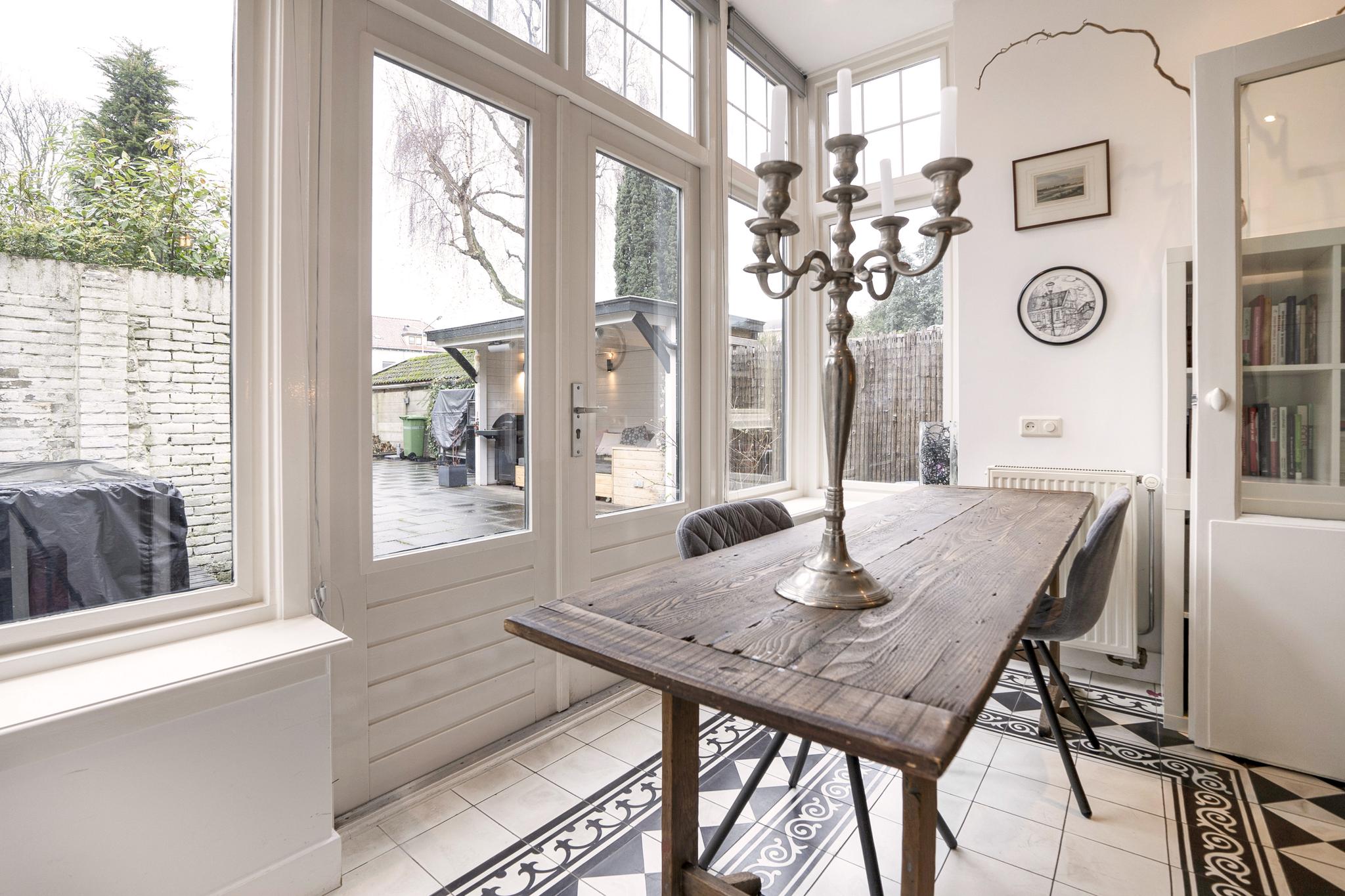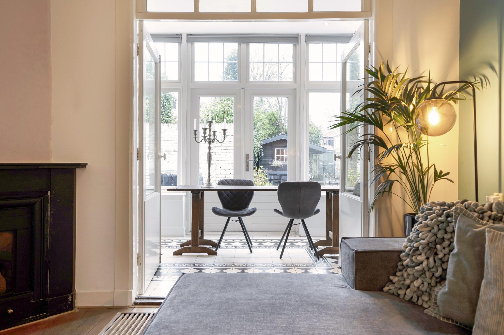 In a quiet and sought-after street near the centre of Hilversum, this charming semi-detached town house from 1910 with ample parking space is now for sale. The location offers the best of both worlds: close to the city, yet with the peace and freedom of a green, tranquil neighbourhood. The house strikes a perfect balance between historical charm and modern comfort. With original features from the early 20th century, including high ceilings, stained-glass doors, a living room with en-suite doors, black marble fireplaces, sash windows, and an impressive staircase, this is a unique home that seamlessly blends past and present.