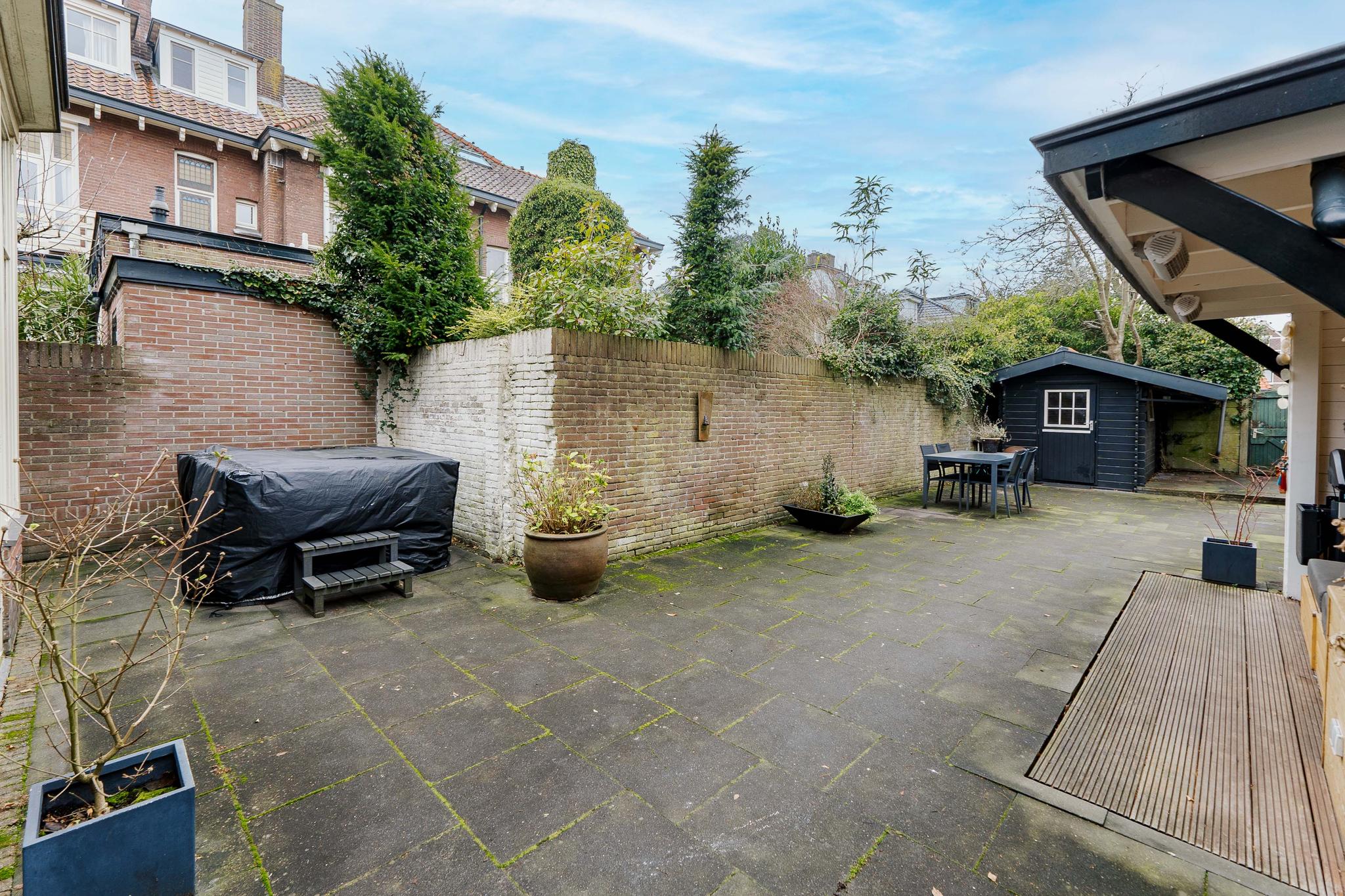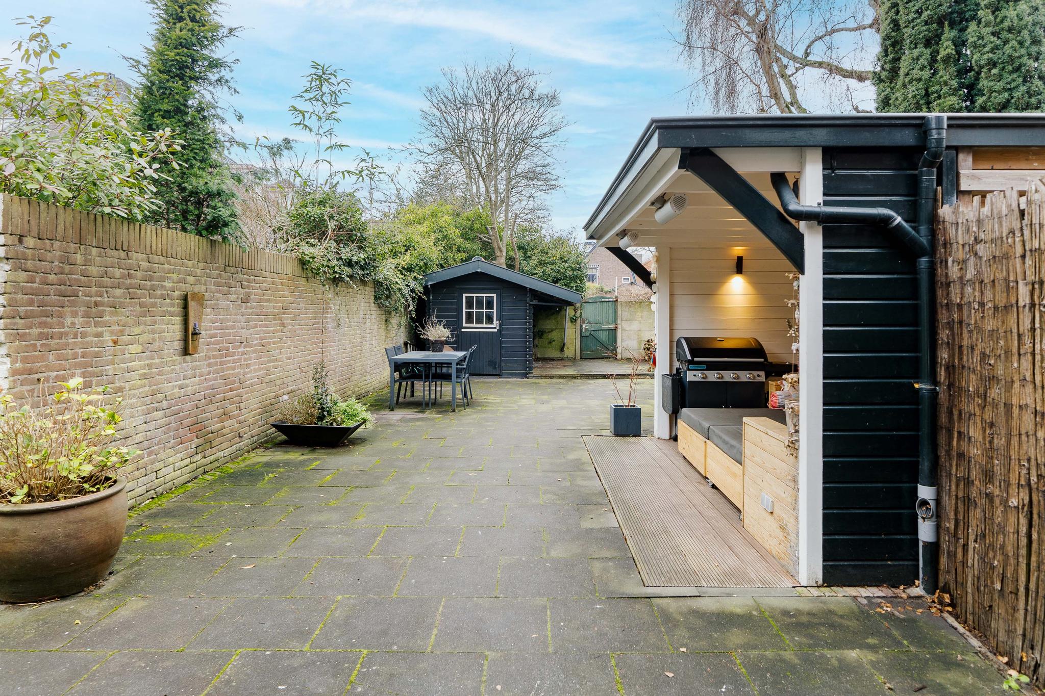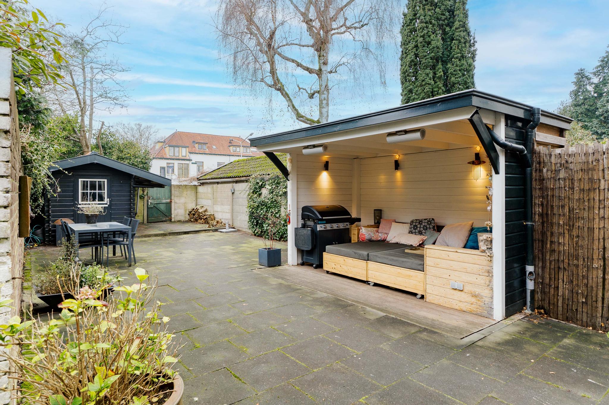 The deep garden is approximately 20 metres long and 7 metres wide. It is low-maintenance and features a beautiful veranda equipped with dimmable lighting and electricity. There is also a wooden shed with electricity. The property is accessible via a parking area at the rear, and a pathway along the side of the house leads to the garden. With its western orientation and ample privacy, you can enjoy sunny afternoons and evenings in the garden, surrounded by tranquillity, while still benefitting from the city’s conveniences without any disturbance.