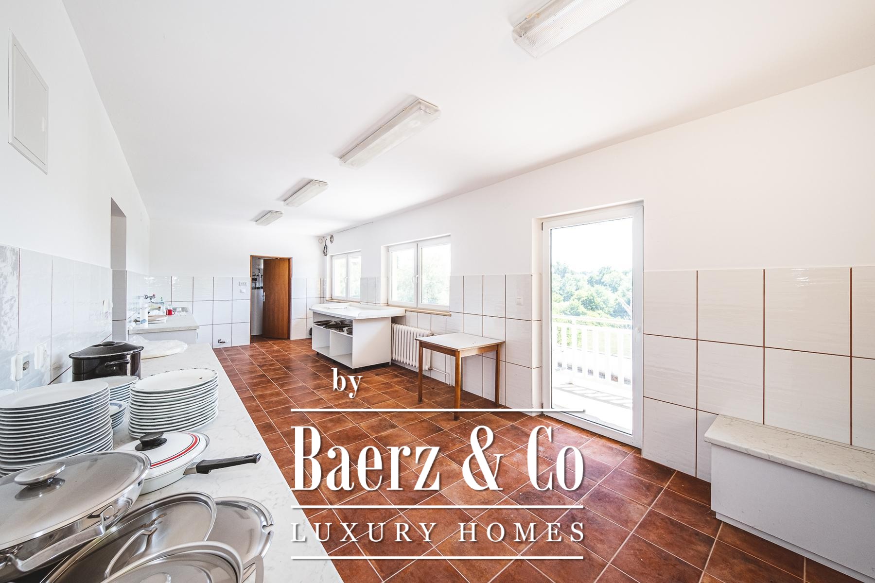 House Oroslavje presents a distinctive opportunity for those seeking adaptable commercial space in northern Croatia. This 1861 m² building, constructed in 2000 and partially renovated in 2015, occupies a 7823 m² plot and offers substantial promise for a variety of future uses. House Oroslavje, structured across multiple levels, comprises 52 rooms arranged for versatility—accommodating kitchens, storage areas, bedrooms, bathrooms, and service rooms—supported by thoughtful infrastructure such as central gas heating, an internal elevator, air conditioning, and ventilation. The clear floor plan and robust utilities invite seamless conversion, whether envisioned as a nursing facility, catering enterprise, or boarding house. Connectivity is assured: the A2 motorway and Stara Zagorska are minutes away, with the Žejinci bus station at 2.7 km and the Veliko Trgovišće railway station, served by the Zagreb–Varaždin line, just 5.2 km distant. The scale, location, and considered renovation establish this property as a core asset for those seeking a blend of operational flexibility and regional accessibility.