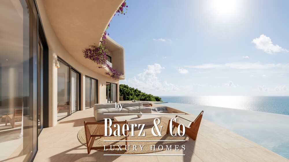Within its 215 m², the villa provides four luxury bedrooms, each fitted with built-in wardrobes and electric shutters, alongside three refined bathrooms. The open-plan interiors transition seamlessly to expansive terraces overlooking the coastline, complementing daily life with an ever-present view of sea and sky. The designer kitchen is fitted with high-quality appliances, while every room benefits from individually adjustable climate systems to ensure comfort throughout the seasons.