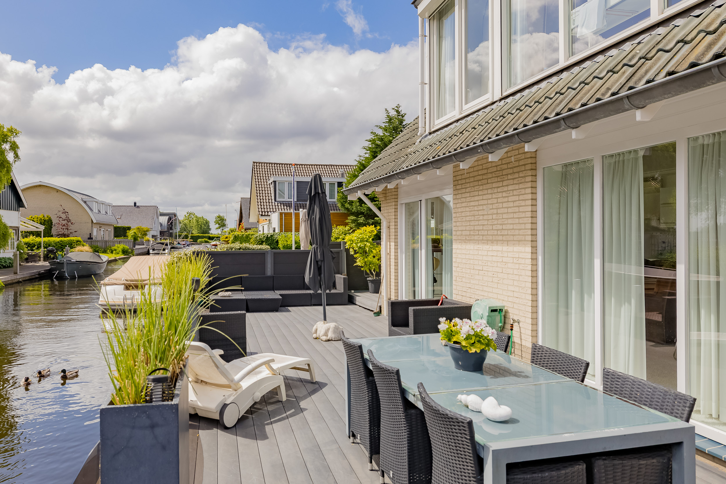 Living where others vacation? This detached villa on Kaag Island makes it possible. Located in the middle of the Kagerplassen, surrounded by water and directly on water with its own jetty, this property offers everything you are looking for: space, comfort and privacy. Here every day begins with the gentle lapping of water in the background and ends on your own deck terrace while the boats slowly sail by.