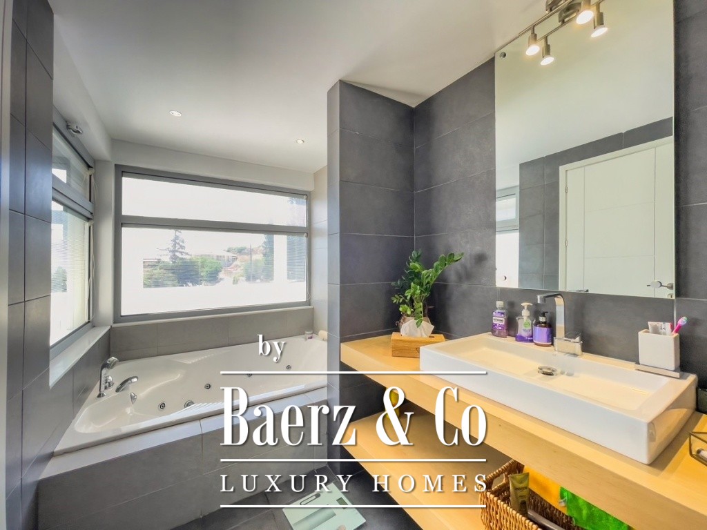 The home’s thoughtful verticality is expressed through a smartly configured lower level with guest suite, playroom, and separate entrance, balancing privacy with flexibility. Upstairs, three bedrooms, including a master with dressing area and lavish en-suite bathroom, offer quiet outlooks onto the sea and gardens. Underfloor heating, a central cooling system, a solar water heater, and a 5kW photovoltaic installation are seamlessly integrated, as is a comprehensive smart home system and security features like CCTV and alarm.