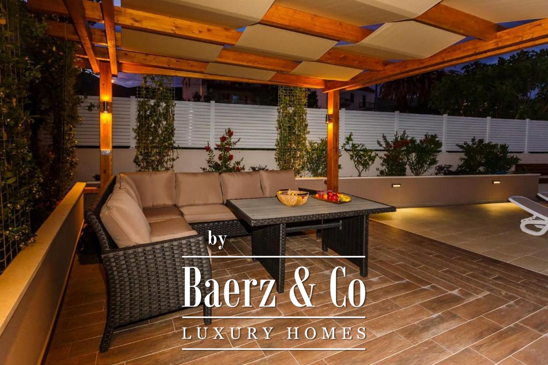 The upper floors house a five-bedroom apartment, featuring a kitchen with dining area, expansive living room flowing to a terrace, four bathrooms, and a further terrace with sea view. Seven bedrooms and seven bathrooms in total offer ample space for privacy or hospitality. All stands within a privileged setting, steps from the beach and amenities such as shops, cafés, and restaurants, blending the ease of daily rhythm with rare seclusion. This villa for sale in Kaštela Croatia presents a compelling balance for those who seek refined living or a sound investment.