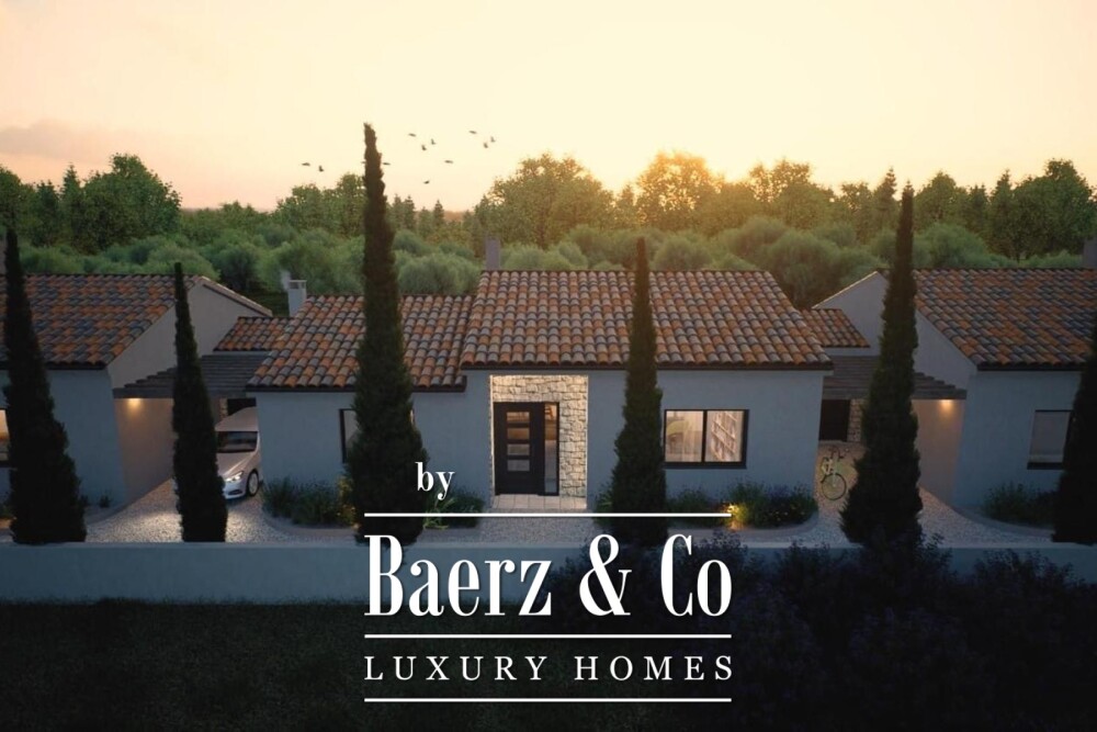 Modern villas Kaštelir-Labinci present an inviting prospect for those seeking rare investment opportunities in Croatia. Situated in a serene location bordered by greenery and quiet pace, these three single-storey villas form a cohesive and versatile residential ensemble. Each villa is carefully constructed using Wienerberger Porotherm bricks and Komerling PVC joinery, with ceramic flooring throughout, underfloor heating, and high ceilings reaching up to 4 metres, creating luminous and spacious interiors.