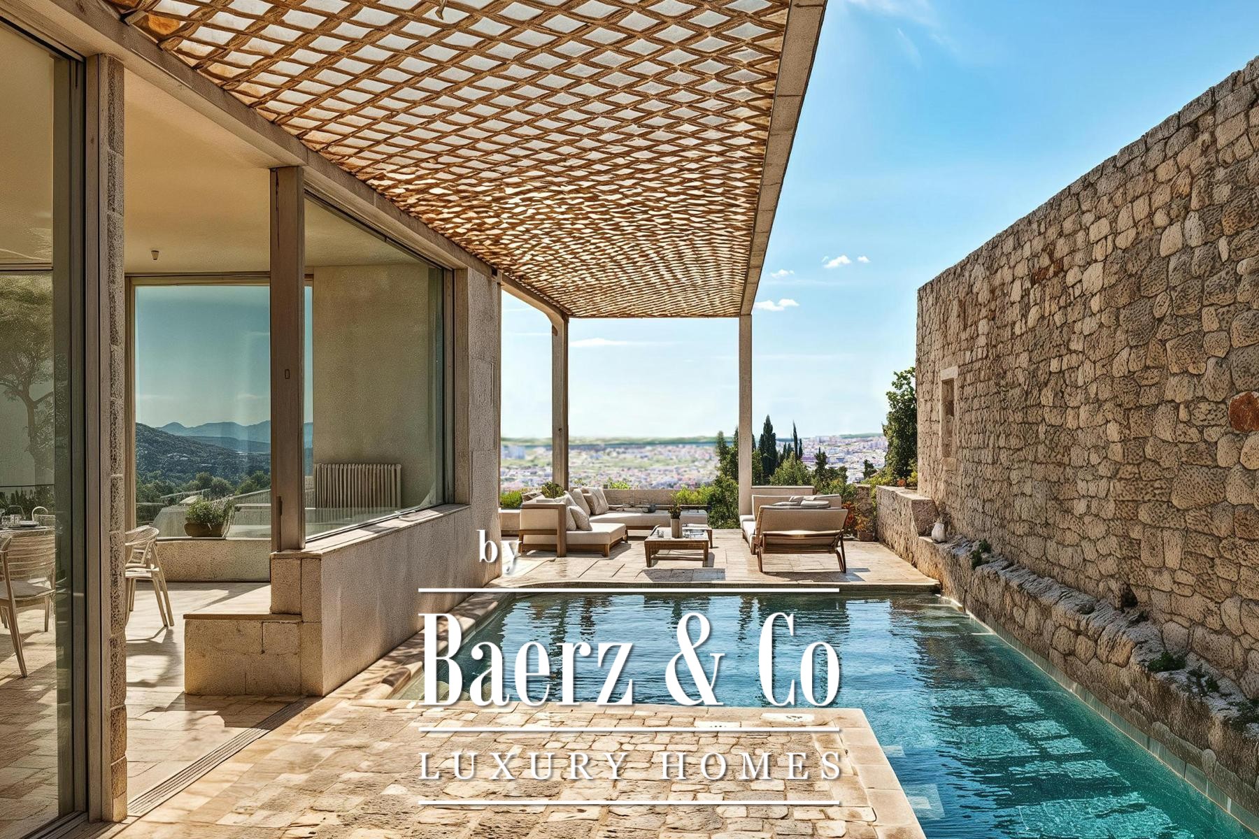Villa Klis with panoramic views welcomes you to a contemporary vision of privacy and comfort, where striking modern design meets a tranquil Croatian hillside. Set on a 300 m² plot, this villa offers 367 m² of living space across an underground level and three elevated floors, each thoughtfully composed to optimise light and transition between indoors and out.