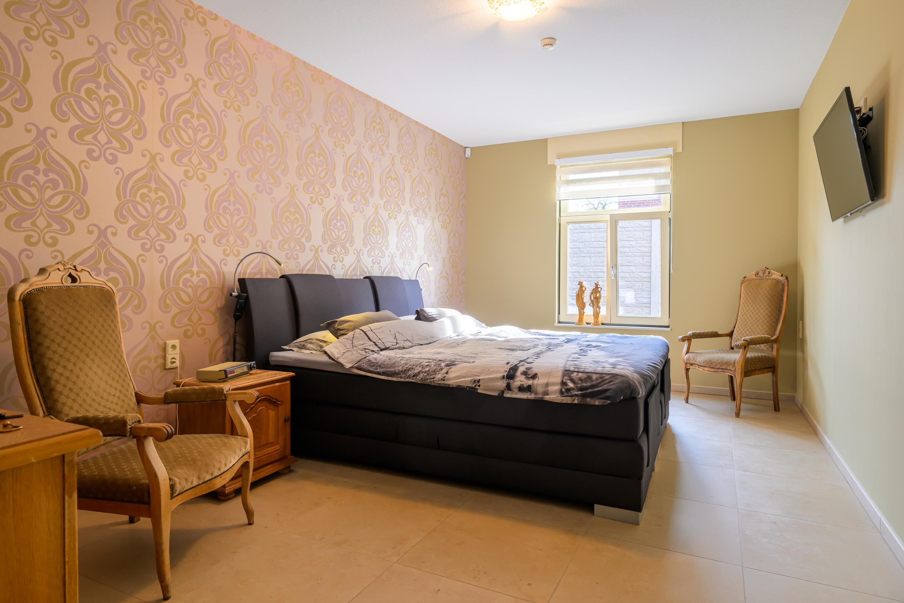 De tuinkamer, bereikbaar vanuit zowel de woonkamer als keuken, is een lichte ruimte met volledig te openen harmonica deuren en een sfeervolle kachel, ideaal voor elk seizoen. Verder zijn er op de begane grond drie ruime slaapkamers en een luxe badkamer met ligbad, inloopdouche, wastafel en toilet. Aangrenzend aan de badkamer ligt een royale inloopkast, met aansluitingen voor het witgoed.