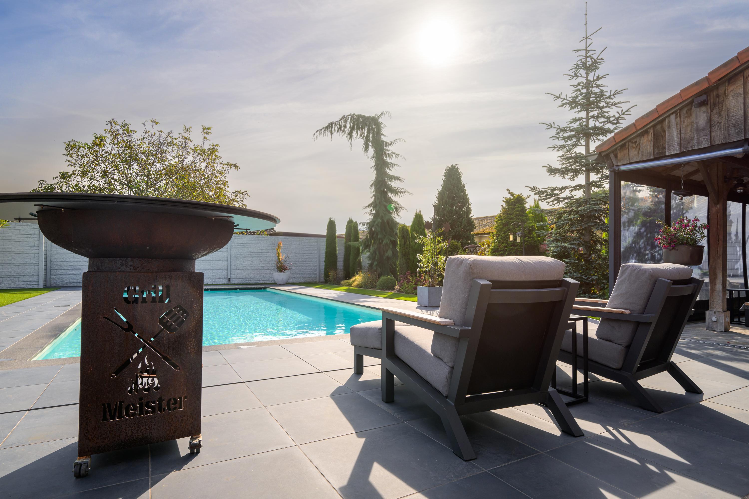 Bij lekker wonen hoort ook lekker buiten kunnen zijn op zijn tijd. In de prachtig aangelegde, onderhoudsvriendelijke tuin, moet dat zeker goed komen. Dit is werkelijk een oase van rust. Plaats een comfortabele lounge set en geniet in alle rust van het buitenleven. De tuin biedt voldoende privacy en is verder voorzien van: een verwarmd zwembad (met automatische lamellenafdekking), een buitendouche, vijverpartij en een royaal gazon.