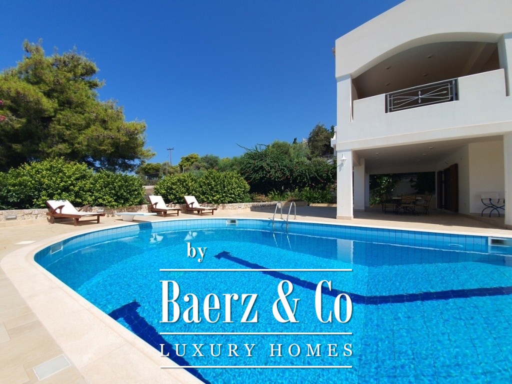 Villa Kosta invites an immediate sense of serenity, positioned in a coveted pine-covered enclave less than 500 meters from pristine Greek beaches. This villa Kosta pairs uninterrupted sea views with a 335 square meter interior, anchored within a privately fenced 1,020 square meter landscaped plot. Light traces every line of the three levels, which are linked by both an internal oak staircase and a discreet three-person elevator.