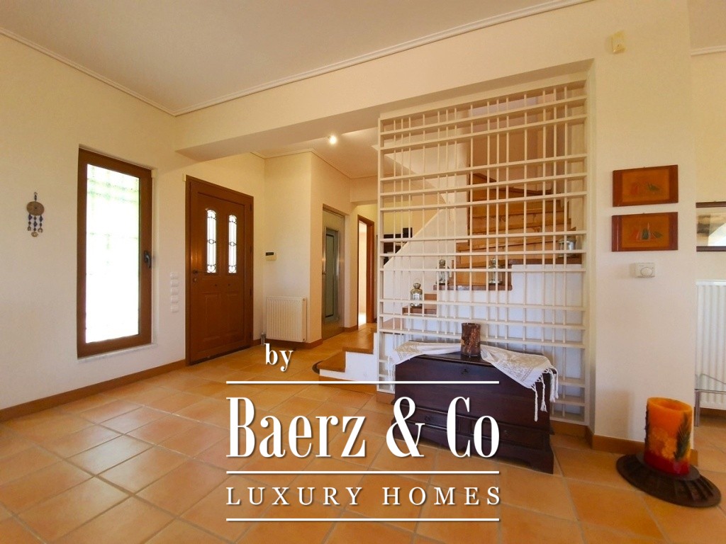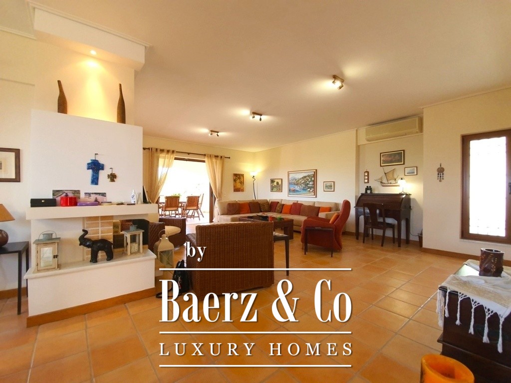 A three-car underground garage with storage and secure internal access emphasizes privacy and ease. Comfort is assured through autonomous oil heating, air conditioning, double glazing, security alarm, and thoughtful insulation. The villa offers the option to acquire a neighboring plot of 1,050 square meters, signaling future potential in one of Kosta’s most exclusive settings. This sea view villa in Kosta represents understated luxury and a rare integration of architecture, landscape, and light.