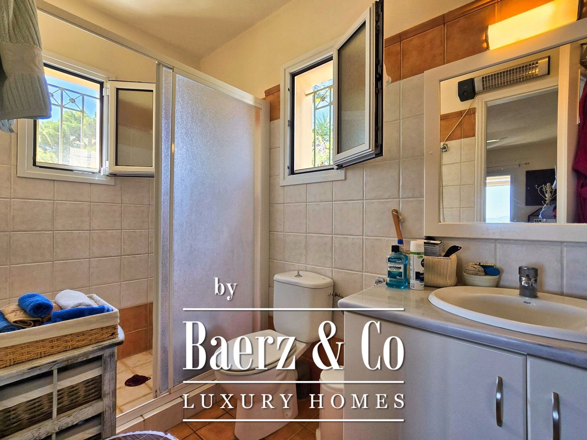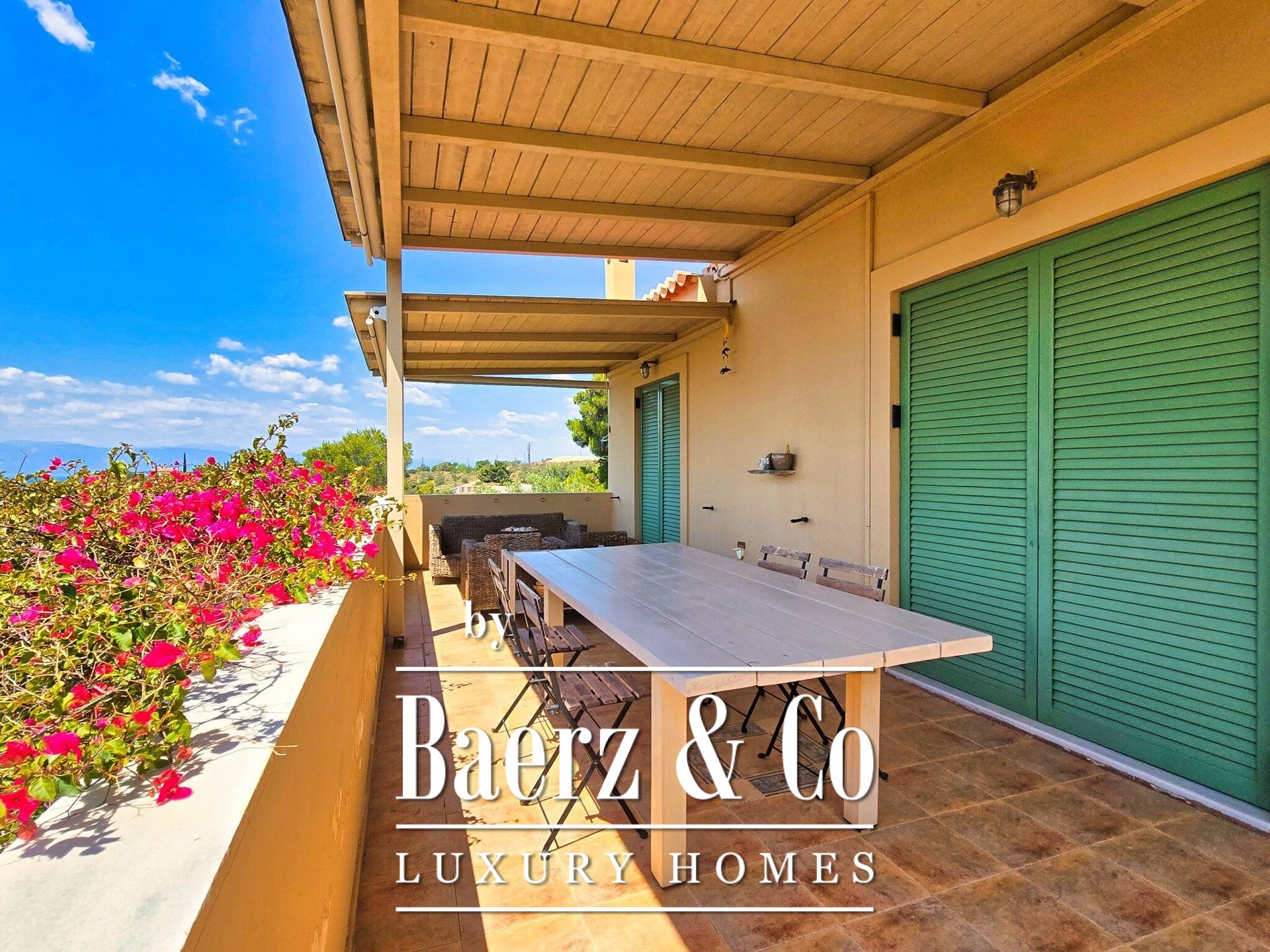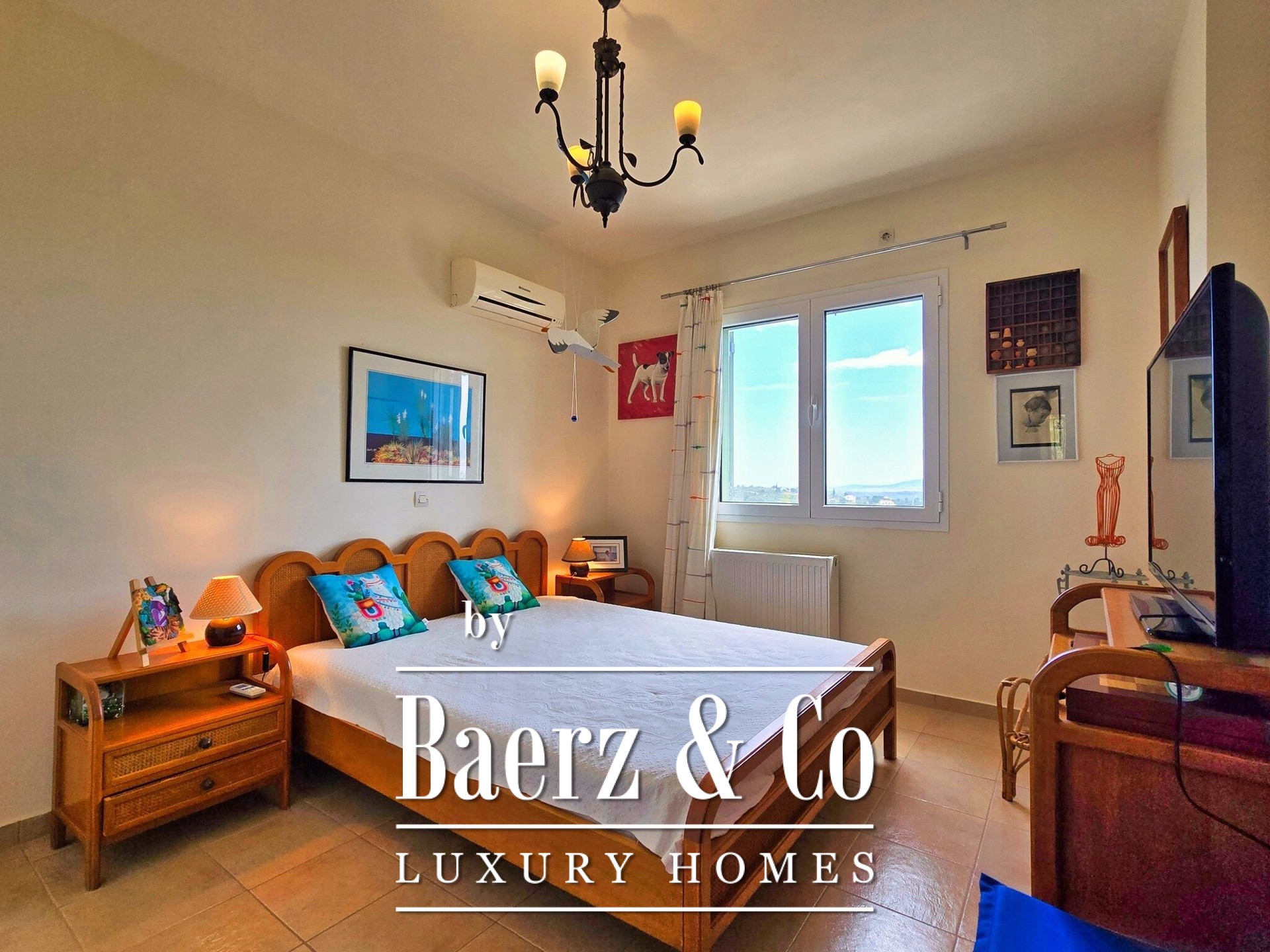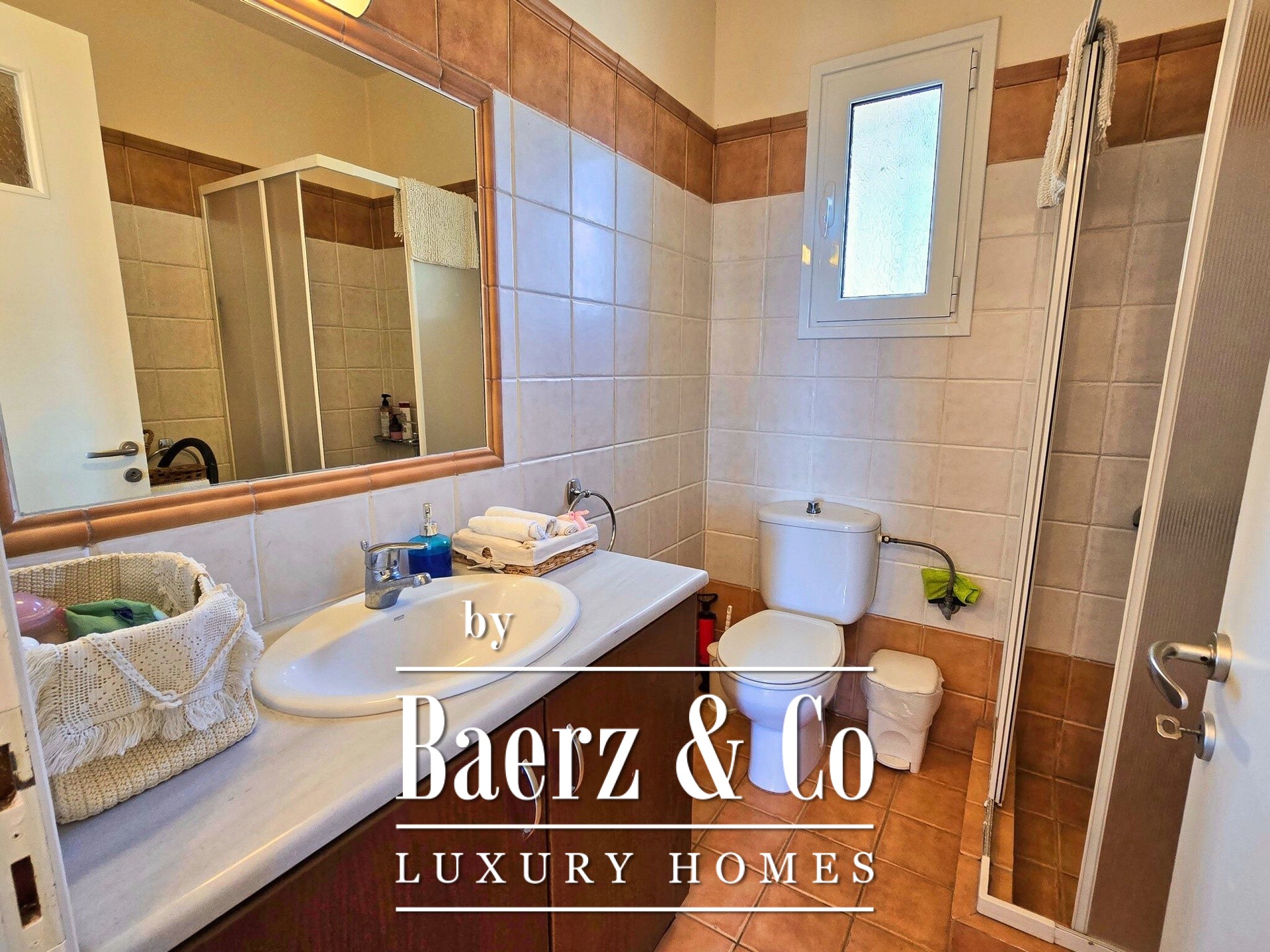 Detached house Kranidi offers a tranquil Mediterranean retreat, set within a demarcated 1,500 m² plot adorned with olive trees and mature landscaping. The property spans 121.03 m² across two levels, presenting an interplay of light and open space. Unobstructed panoramic sea views define the atmosphere, with the ground floor’s 101.46 m² housing an open-plan living area and kitchen, three bedrooms—including a master suite with private bath—and a spacious veranda sheltered by a pergola. The seamless flow to the garden blurs boundaries between interior and landscape, honoring the clarity of sea and sky.