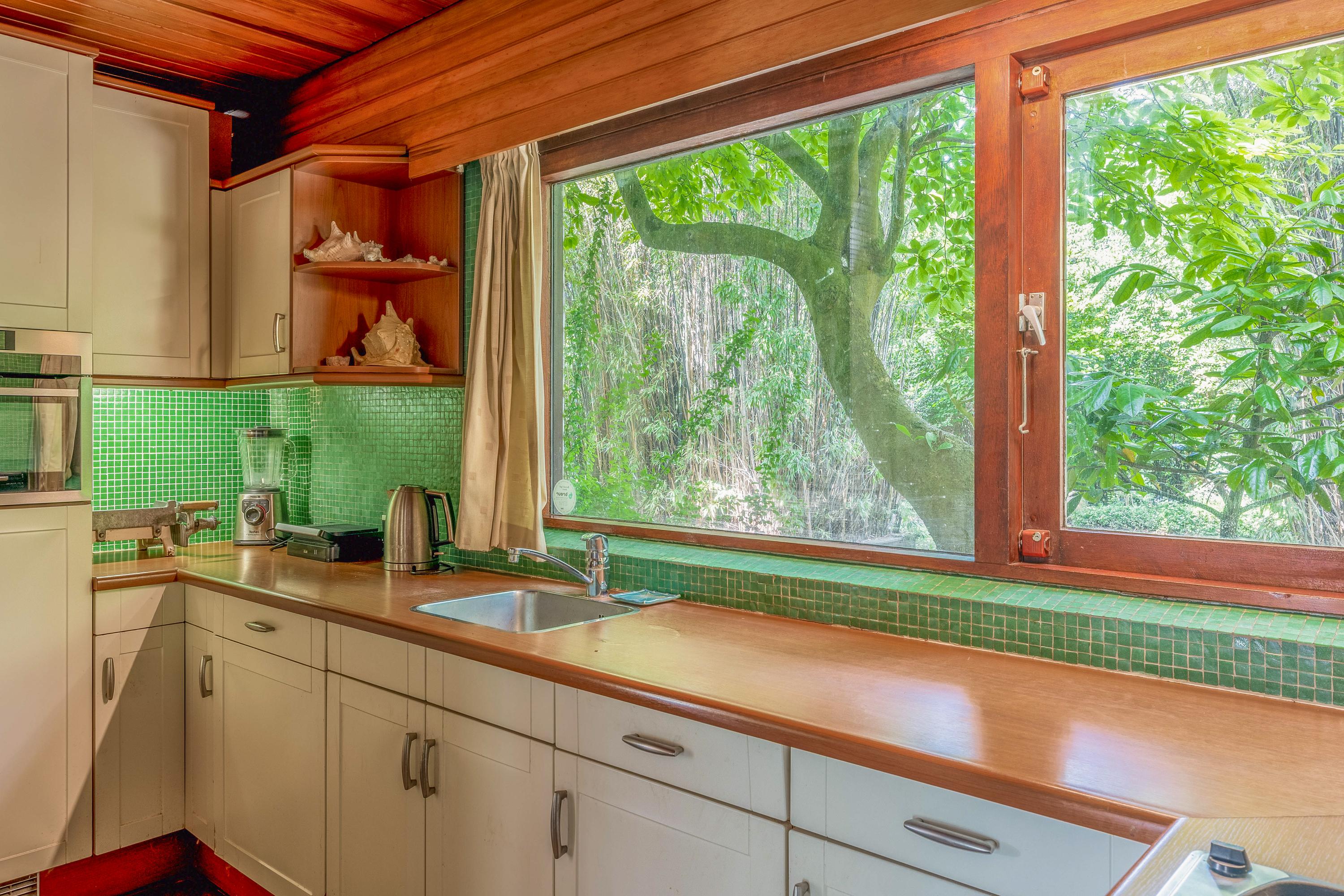 The lush garden offers plenty of opportunities for gardening enthusiasts and is equally perfect for those who just want to relax in peace and quiet. Set within an exclusive, small-scale residential park outside the dike, the location provides a unique sense of privacy, minimal traffic, and freedom. From the expansive rooftop terrace on the first floor, you can enjoy stunning views over the River Lek and the iconic windmills of Kinderdijk.