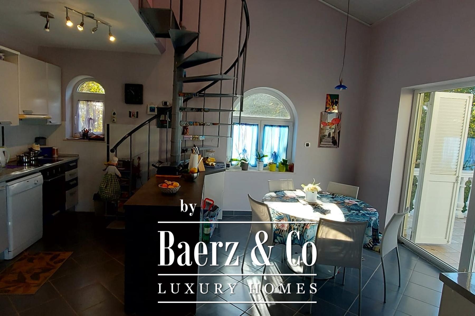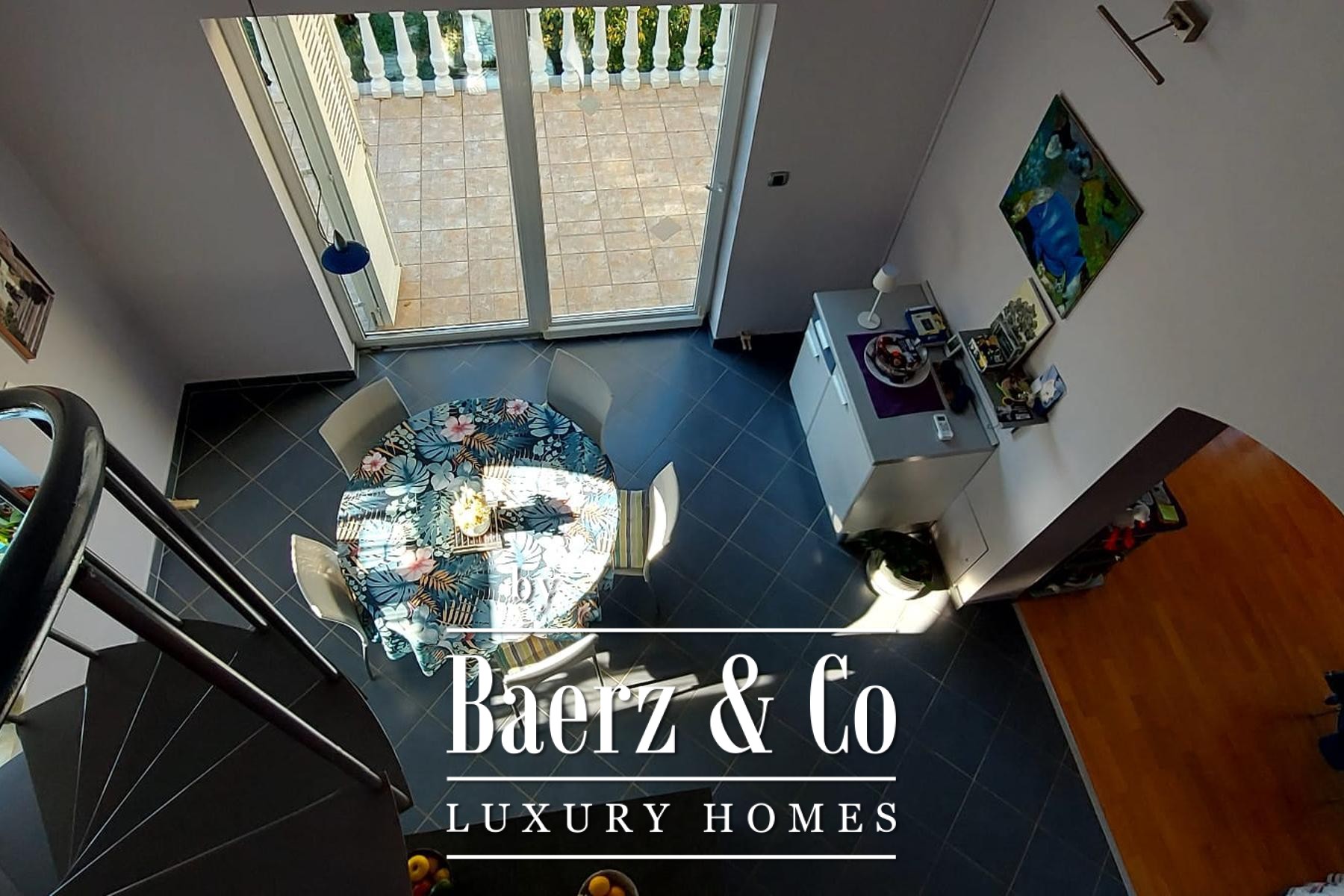 The lower ground apartment of 47 m² features an integrated kitchen and dining area, a living room, bathroom, bedroom and a private terrace open to the garden. The ground floor presents two one-bedroom apartments, each 37 m², both with access to a loggia that can be separated for added discretion. Ascend to the first floor and enter a spacious 74 m² apartment with two bedrooms, expansive living and dining areas and a spiral staircase that unveils a light-filled attic gallery, suitable for additional sleeping quarters. Every level offers terraces or loggias with far-reaching views across the Adriatic, bringing a sense of calm throughout.