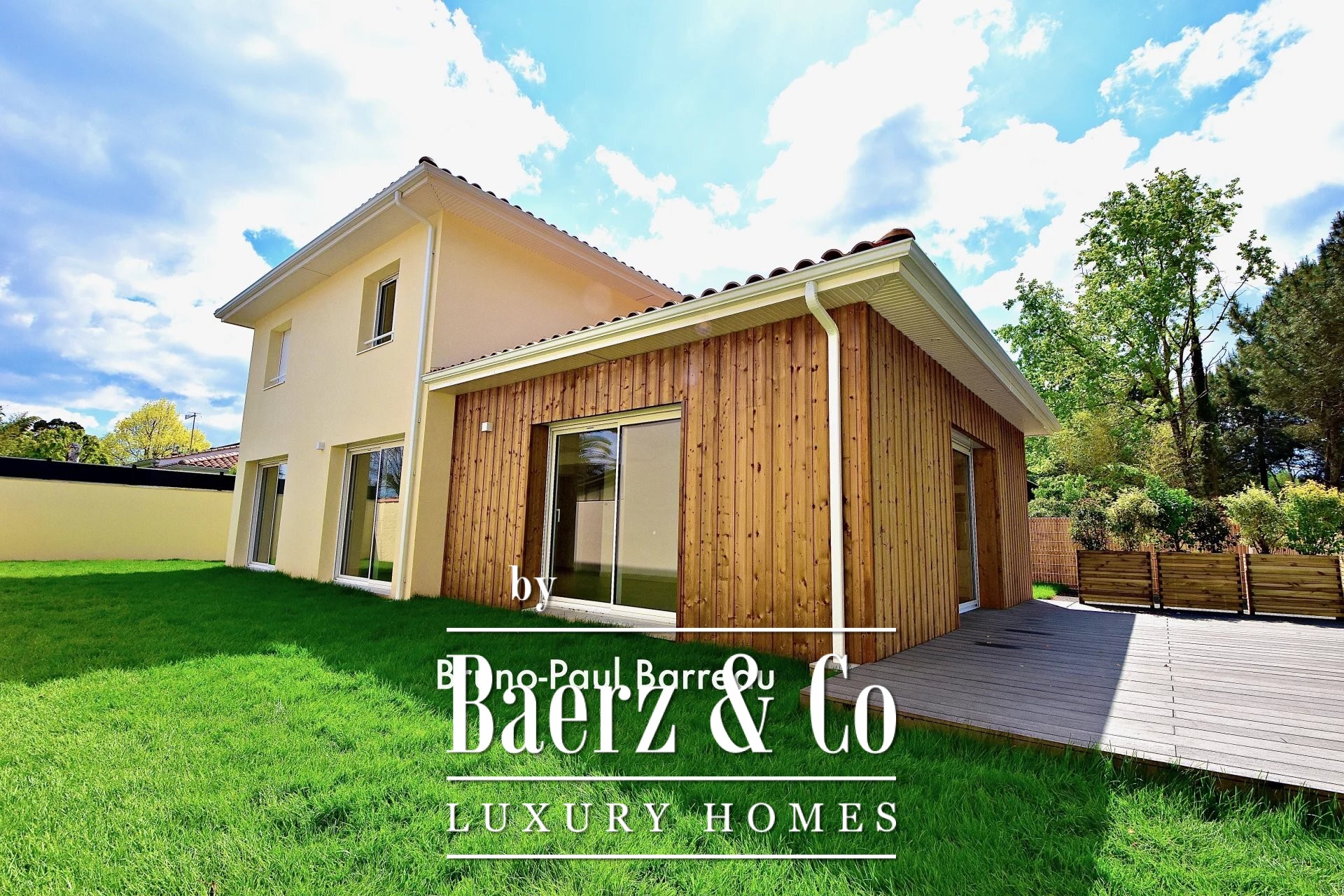 The 675 m² parcel feels purposeful, with a manicured lawn, an automatic watering system, and a large driveway that can double as a petanque pitch. Practical amenities include a heat pump, reversible air-conditioning, electric shutters, double glazing, and home automation. An electric gate ensures privacy and ease. For those seeking a contemporary luxury house for sale in La Teste-de-Buch with subtle refinement and access to coastal living, this offering stands quietly apart.