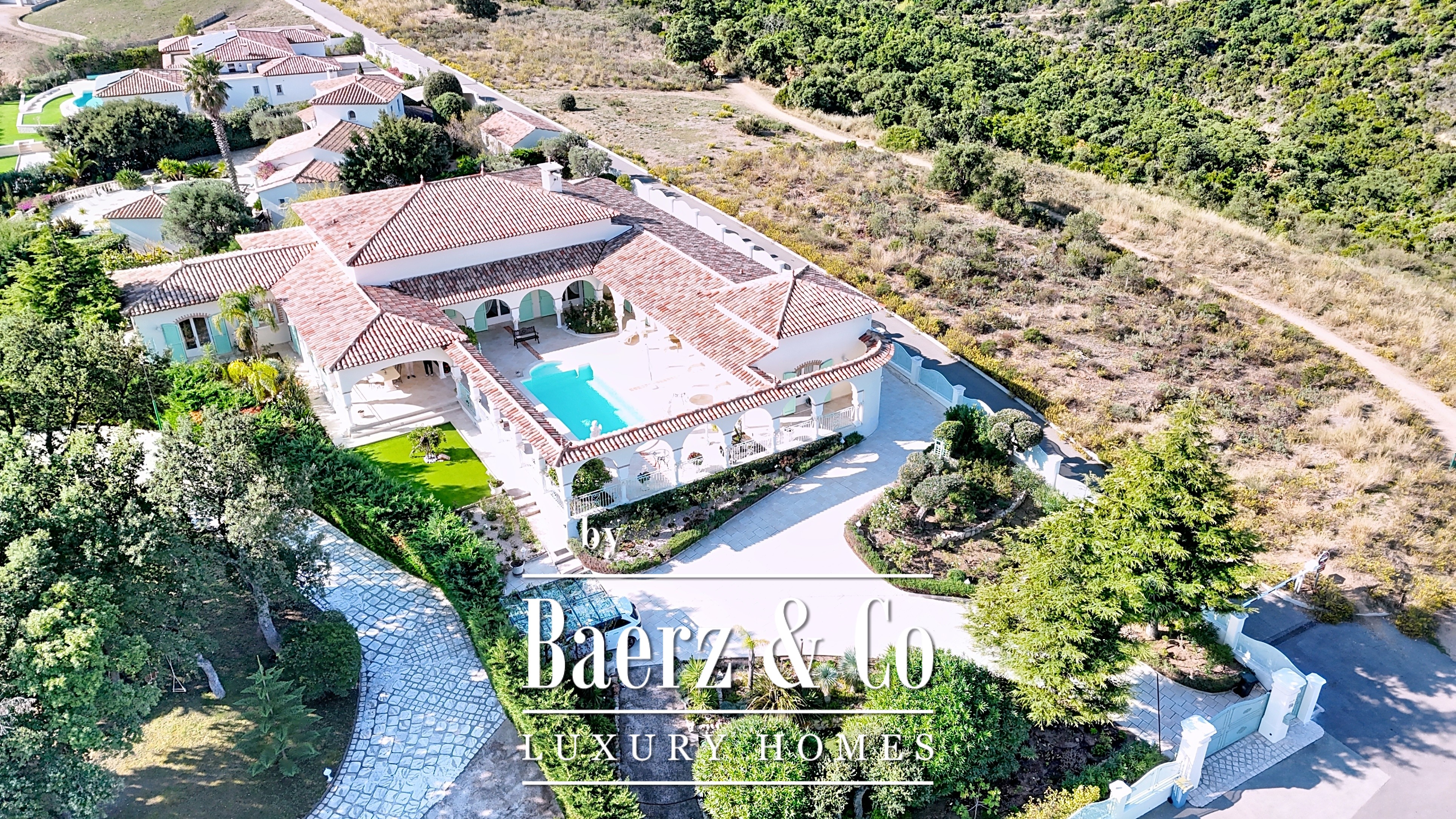 Villa Saint-Raphael with panoramic sea view offers a rare combination of timeless architecture and Mediterranean light. This hacienda-style residence unfolds across 400 m² of living space, set within more than 2,000 m² of curated gardens, presiding over vistas of the Mediterranean, the Estérel hills, and the Gulf of Saint-Tropez.