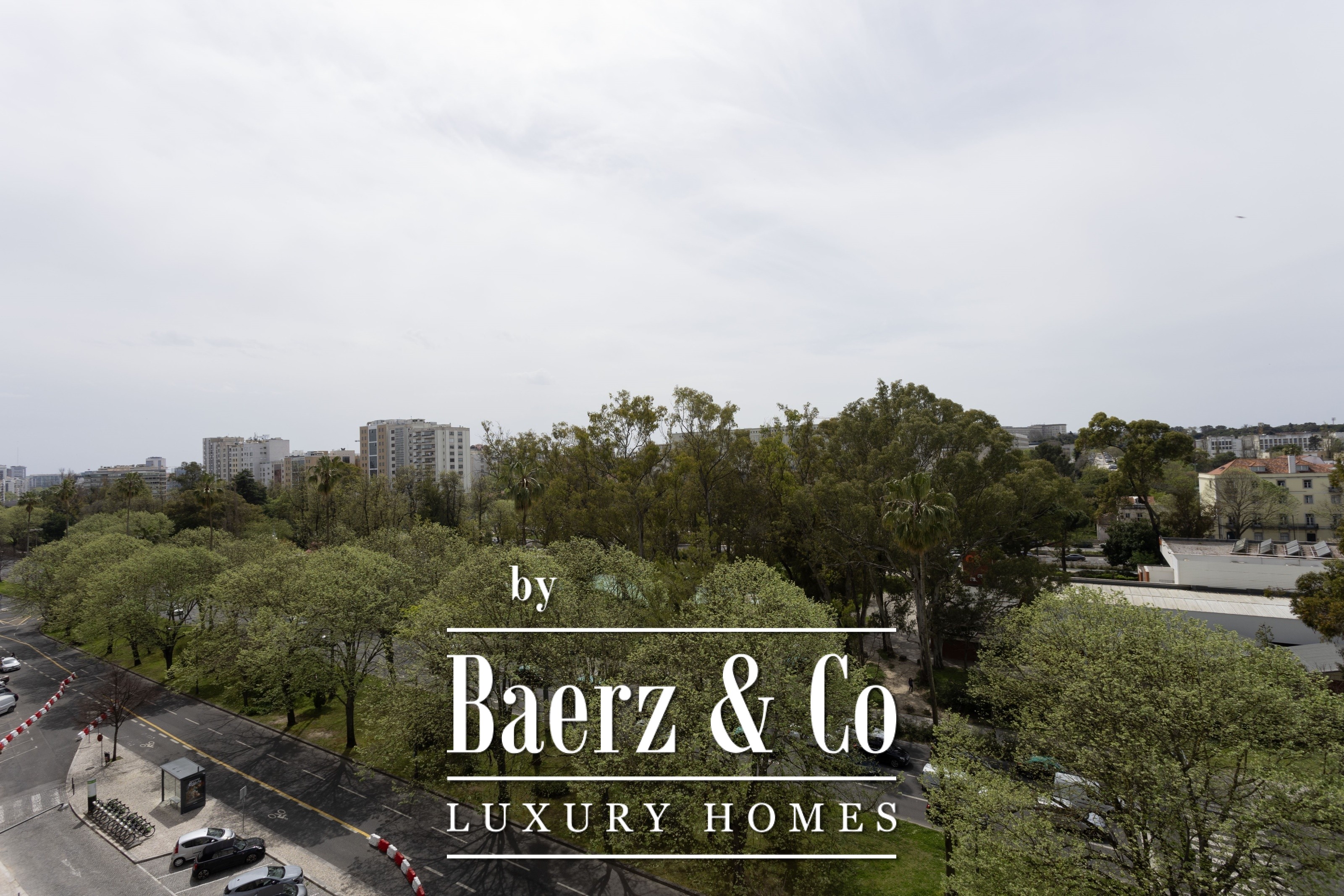This duplex penthouse Lisbon offers a rare intersection of space, perspective, and discretion in the heart of Campo Grande. Set on the top two floors of the renowned Campo Grande 200 condominium, the 213 m² residence opens westwards to views of Jardim Mario Soares, infusing the main living areas, dining space, and modern kitchen with light and a sense of place. Four generously proportioned bedrooms, including two with ensuite bathrooms, speak to a life staged quietly above the city. Three full bathrooms and an additional guest facility offer both privacy and comfort.