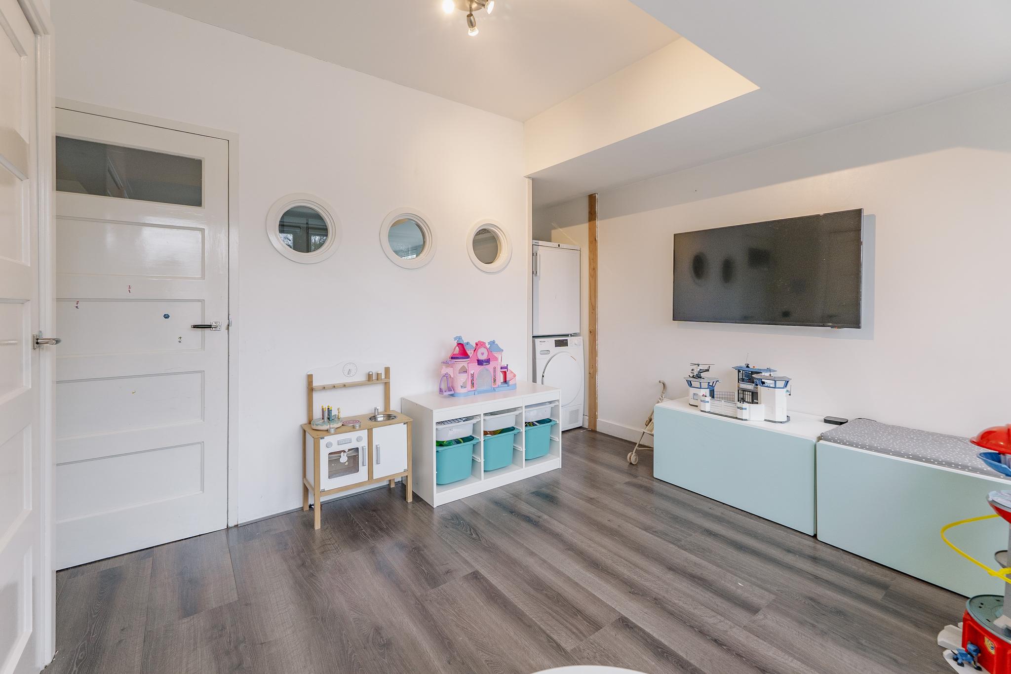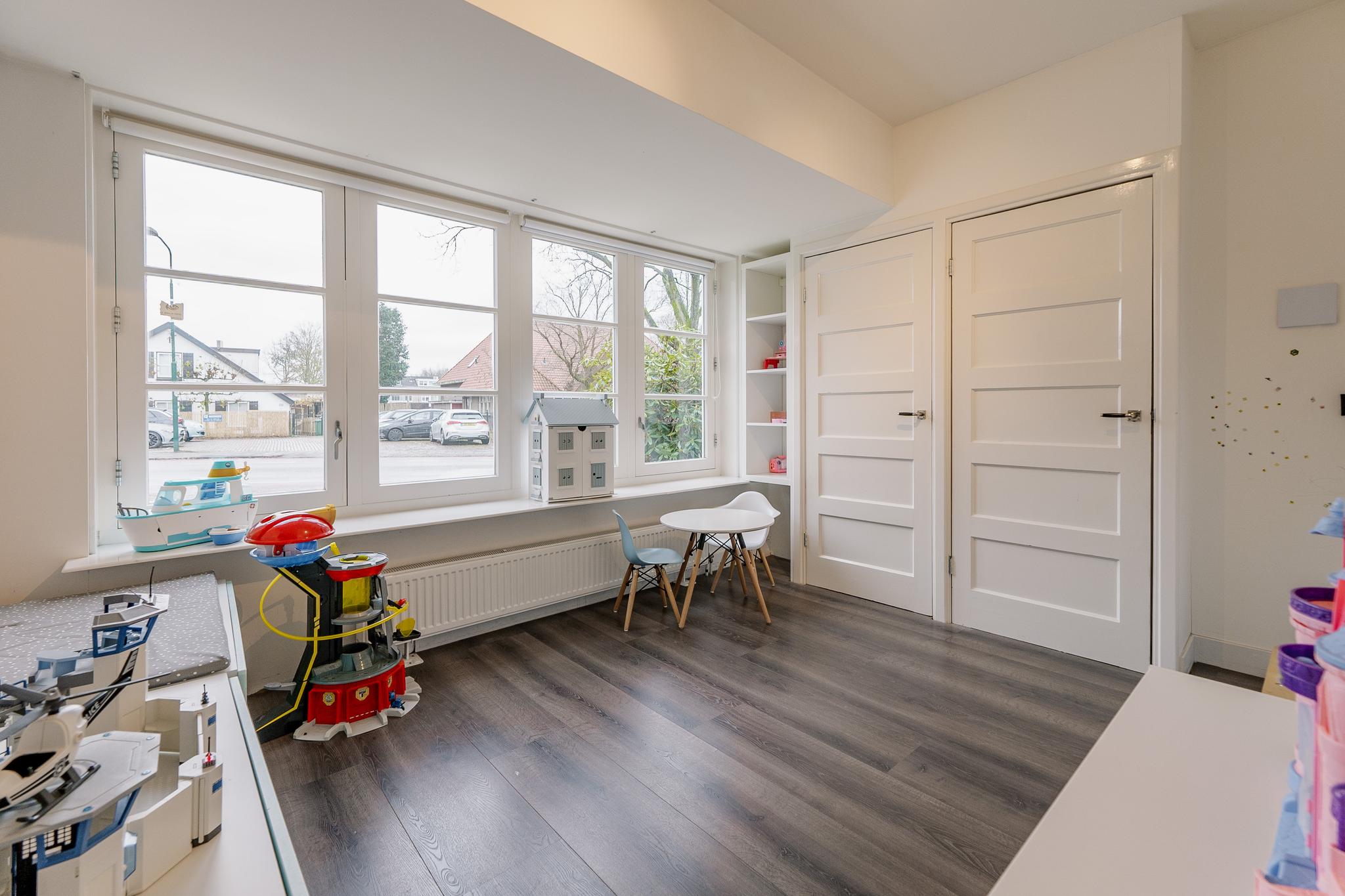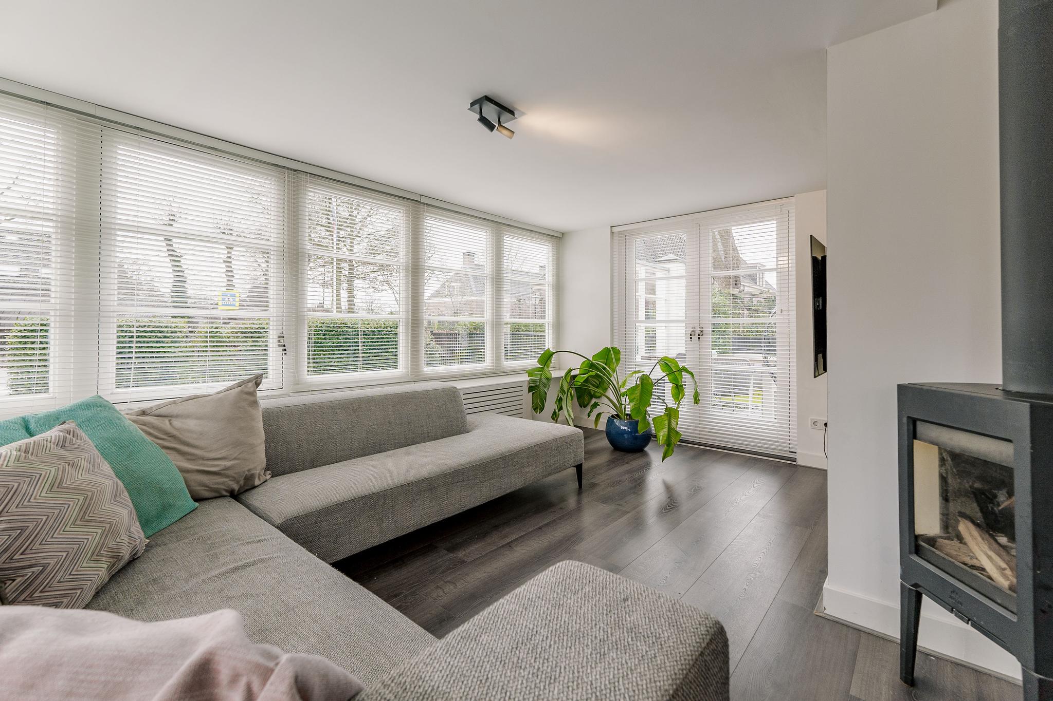 Begane grond: Bij binnenkomst word je verwelkomd in een ruime hal met garderobe en een toilet met fontein. De royale woonkamer, voorzien van een sfeervolle houtkachel, sluit aan op een lichte open keuken. De gezellige zitkamer heeft openslaande deuren naar een terras, terwijl de aparte werkkamer eveneens via openslaande deuren toegang biedt tot de tuin. Aan de voorzijde van de woning bevindt zich een aparte werk- of televisiekamer.