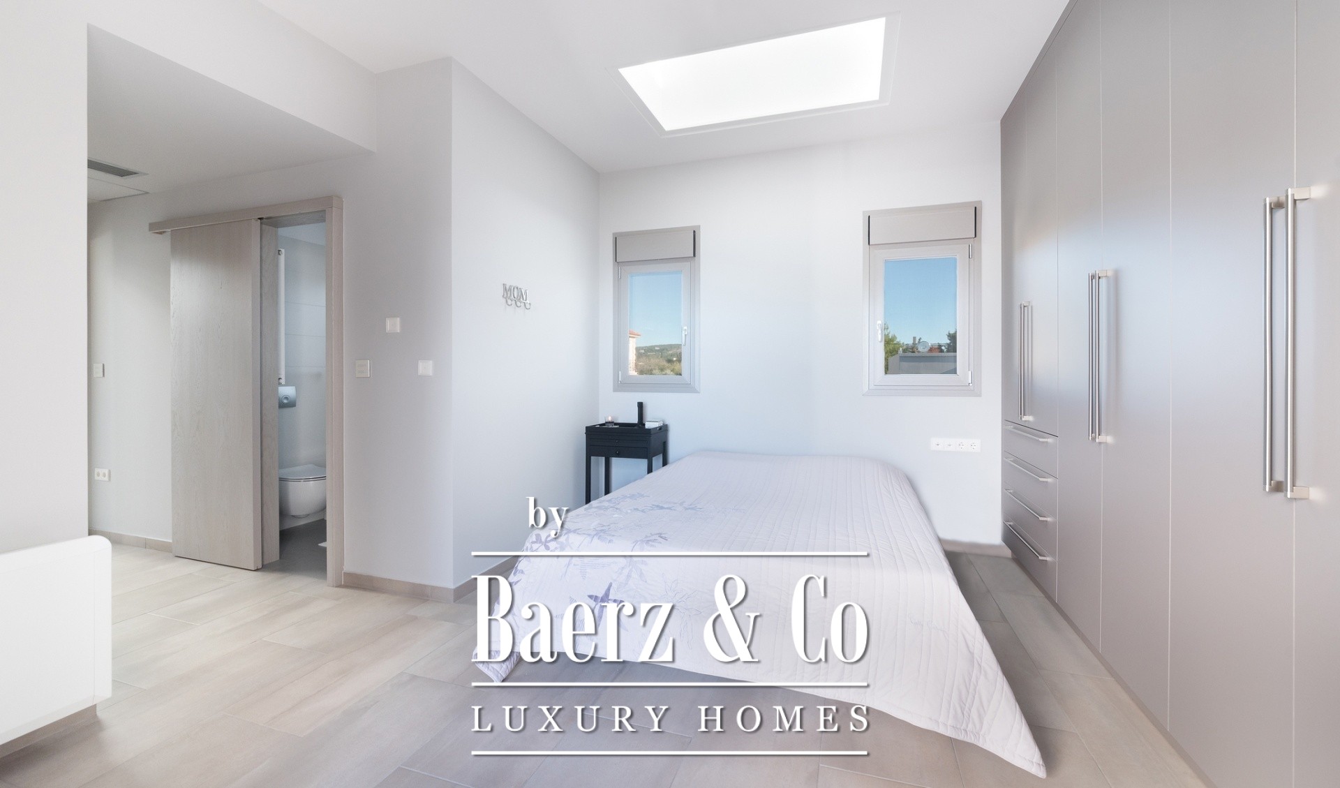 The 394m² plot is fully fenced and ready for a future pool. Optional purchase of an adjacent 401m² plot allows for future expansion. Club Hotel Casino Loutraki and the thermal spa are minutes away, while Athens International Airport lies within an hour’s drive, underscoring exclusivity and accessibility. This luxury detached house for sale in Loutraki-Perachora is a statement in elegant Hellenic living.