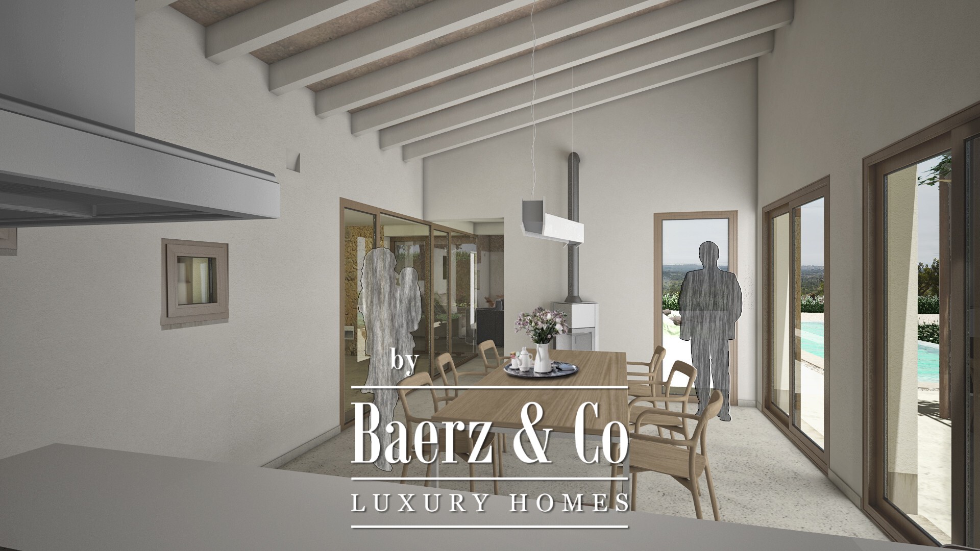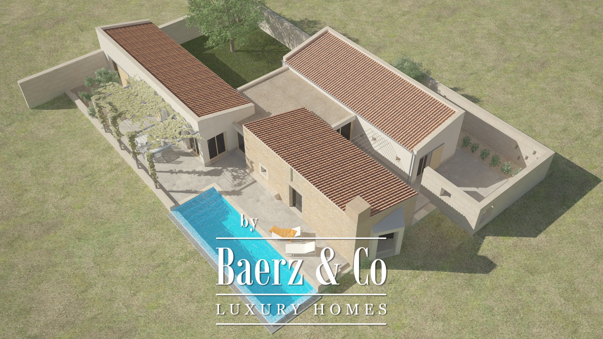 Country house Manacor presents an opportunity set on a substantial 32,500 m² plot, quietly positioned between Manacor and Porto Cristo. This single-storey residence, with 400 m² of living area, is currently under construction and awaits a discerning owner to shape its final aesthetic.