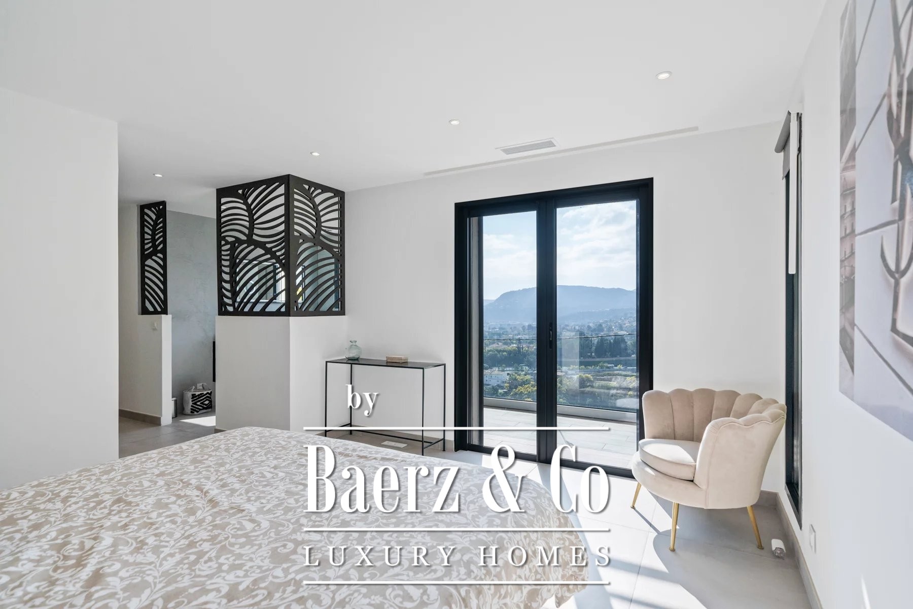 This contemporary villa Mandelieu-la-Napoule presents 302 m² of living space, only 30 minutes from La Croisette and 10 minutes from the coast. The villa’s architecture is carefully considered, with three levels accessible by lift offering a seamless flow between expansive interiors and breathtaking views of the sea and Estérel hills. Within, five bedrooms each have their own en-suite bathroom, emphasizing privacy and comfort at every turn.