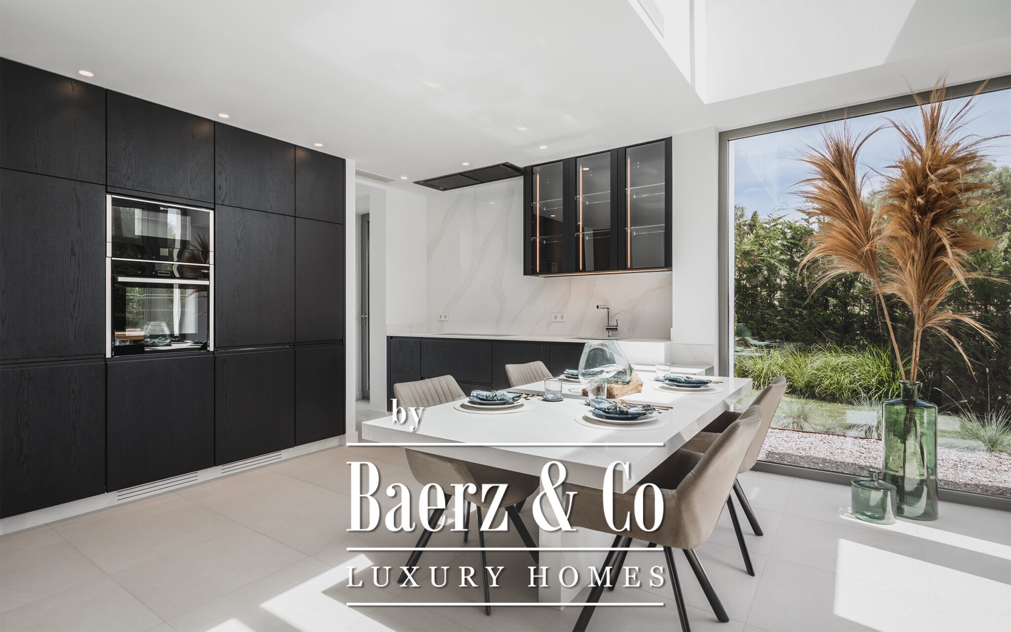 Villa Marbella in El Paraiso offers a tranquil and sophisticated setting among the Andalusian hills, surrounded by the exclusivity of a select gated community of just nine residences. This villa, with 626 m² of living space set upon an 808 m² plot, is designed for those seeking seclusion and easy proximity to Marbella, Estepona, and the coast. Villa Marbella in El Paraiso presents clean lines and generous south to southeast orientation, ensuring interiors are flooded with natural light. Floor-to-ceiling glazing connects open-plan living spaces and a sculptural, high-end German kitchen to terraces, private landscaped gardens, and a personal swimming pool. Each bedroom features en-suite bathrooms, elegant wood flooring, and muted, contemporary finishes—combining Villeroy & Boch fixtures, grey marble tiling, and thoughtful lighting. The residence privileges comfort and refinement, with amenities such as underfloor heating, hot and cold air conditioning, home automation, and a fireplace. Two covered parking spaces, intelligent movement sensors, and a multi-purpose basement—ideal for a gym or cinema—complete the offering. The surrounding El Paraiso enclave is serviced by renowned golf courses, international schools, boutiques, and fine dining, supporting a pace of life defined by discretion and access.