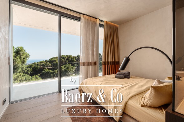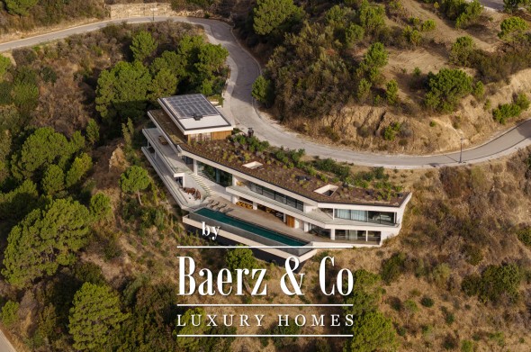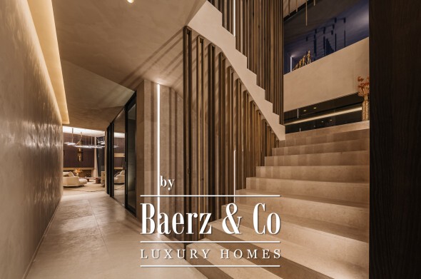 Technology and comfort advance in tandem: a full Control 4 Domotic system, adaptive AC, integrated audio-visual, two elevators, an automated aromatic diffuser, and security with 24/7 monitoring maximise ease and peace of mind. Life extends naturally outdoors with a 500 m² terrace network, infinity pool, outdoor lounges and automated irrigation. A multi-car garage, gym, and cinema room complement the villa’s holistic composition.