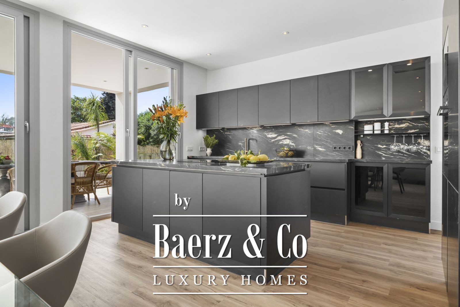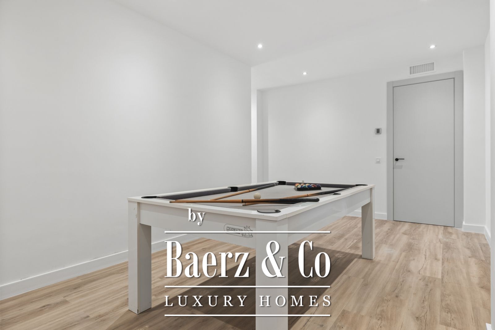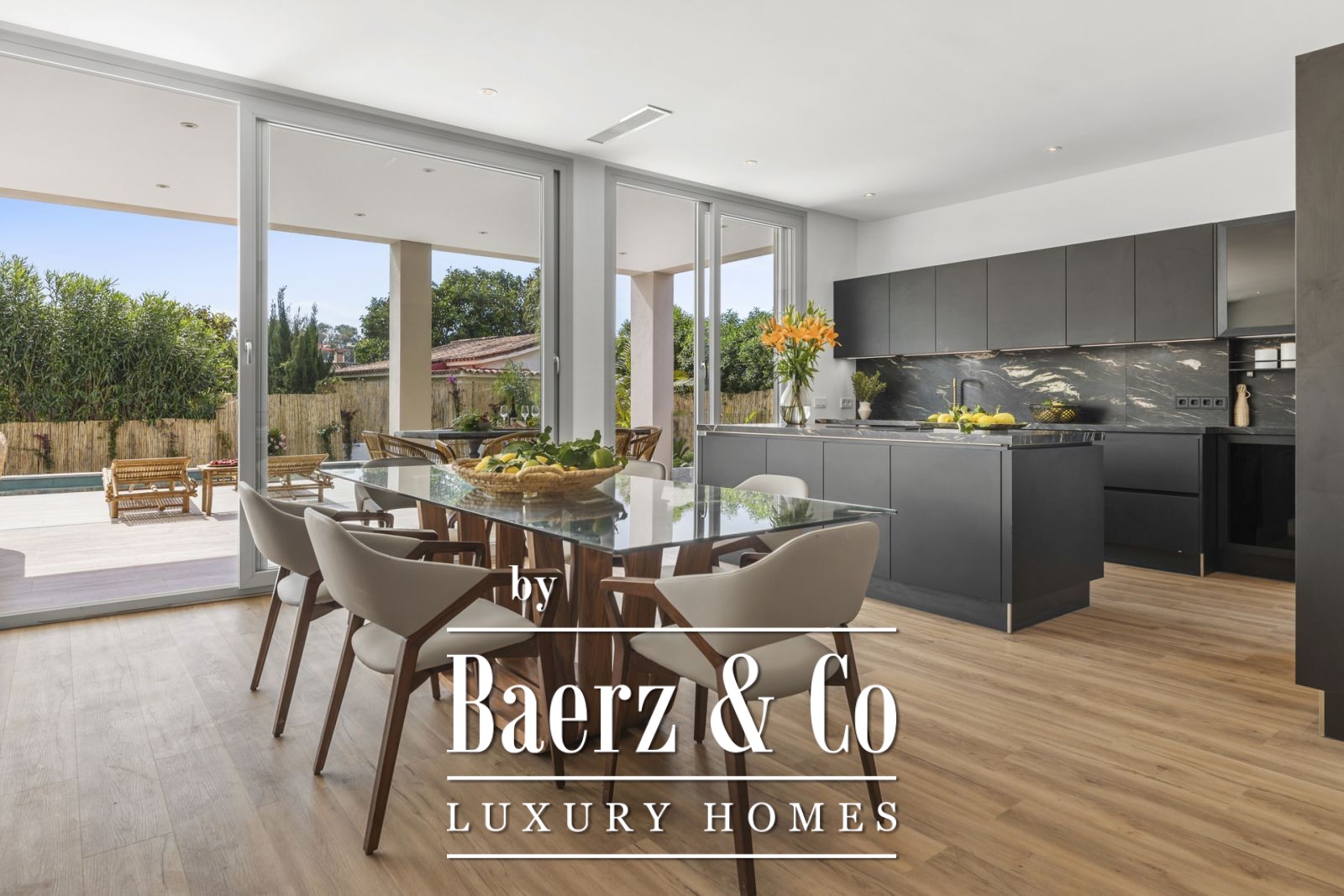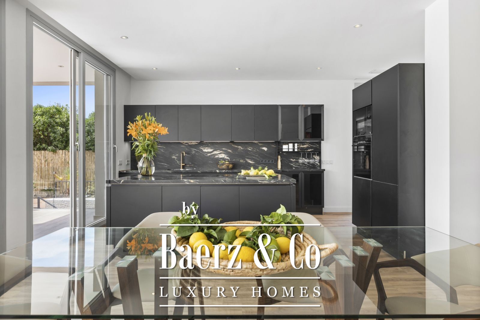 Inside, five bedrooms and four bathrooms offer spatial harmony, complemented by features such as solar panels, underfloor heating, a fireplace, and Wi-Fi dimmable lighting. Thermo glazing on the first floor enhances the sense of comfort. The villa’s private swimming pool sits harmoniously on its 610 m² plot, while a second kitchen and games room provide flexible living options for gatherings or year-round enjoyment.