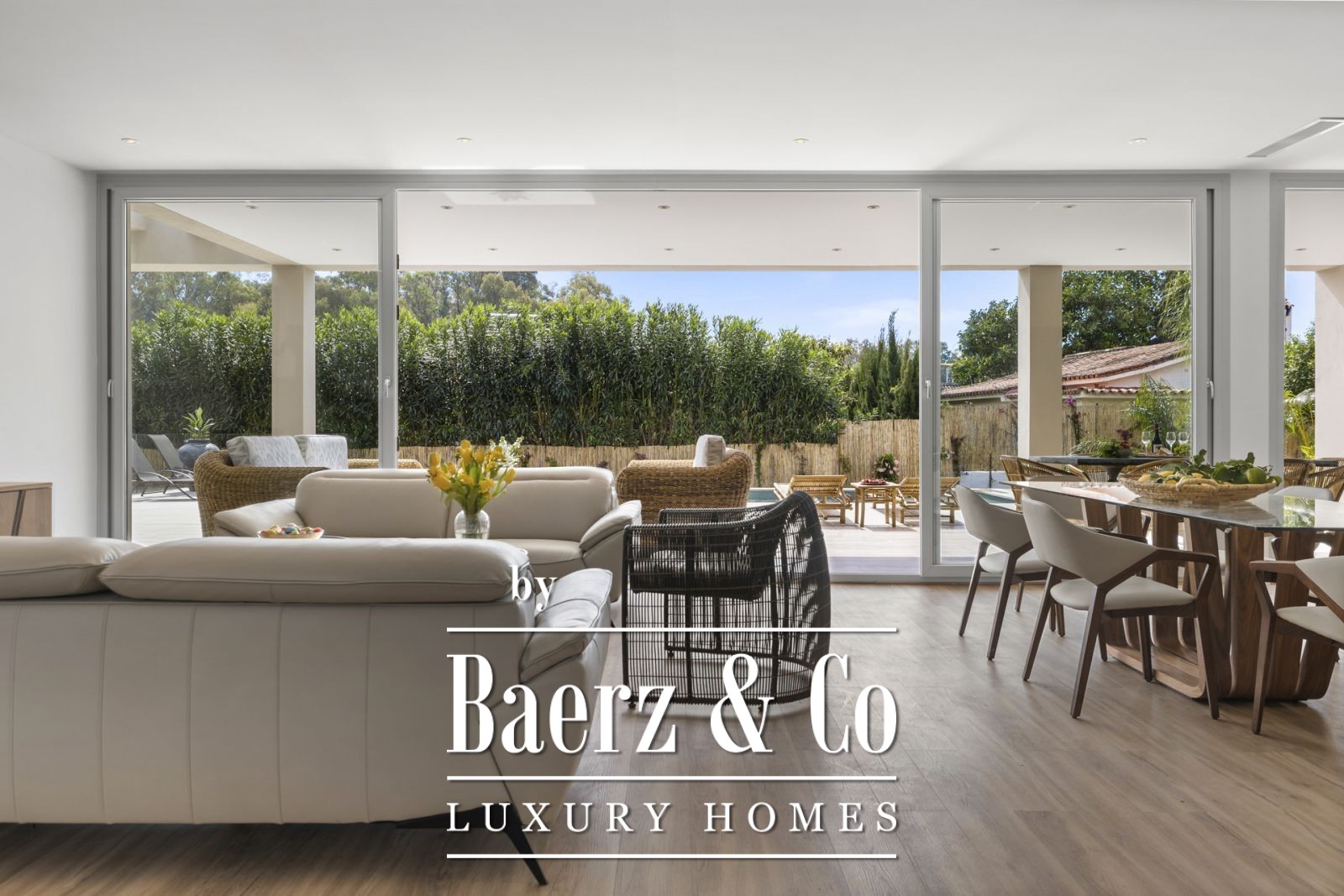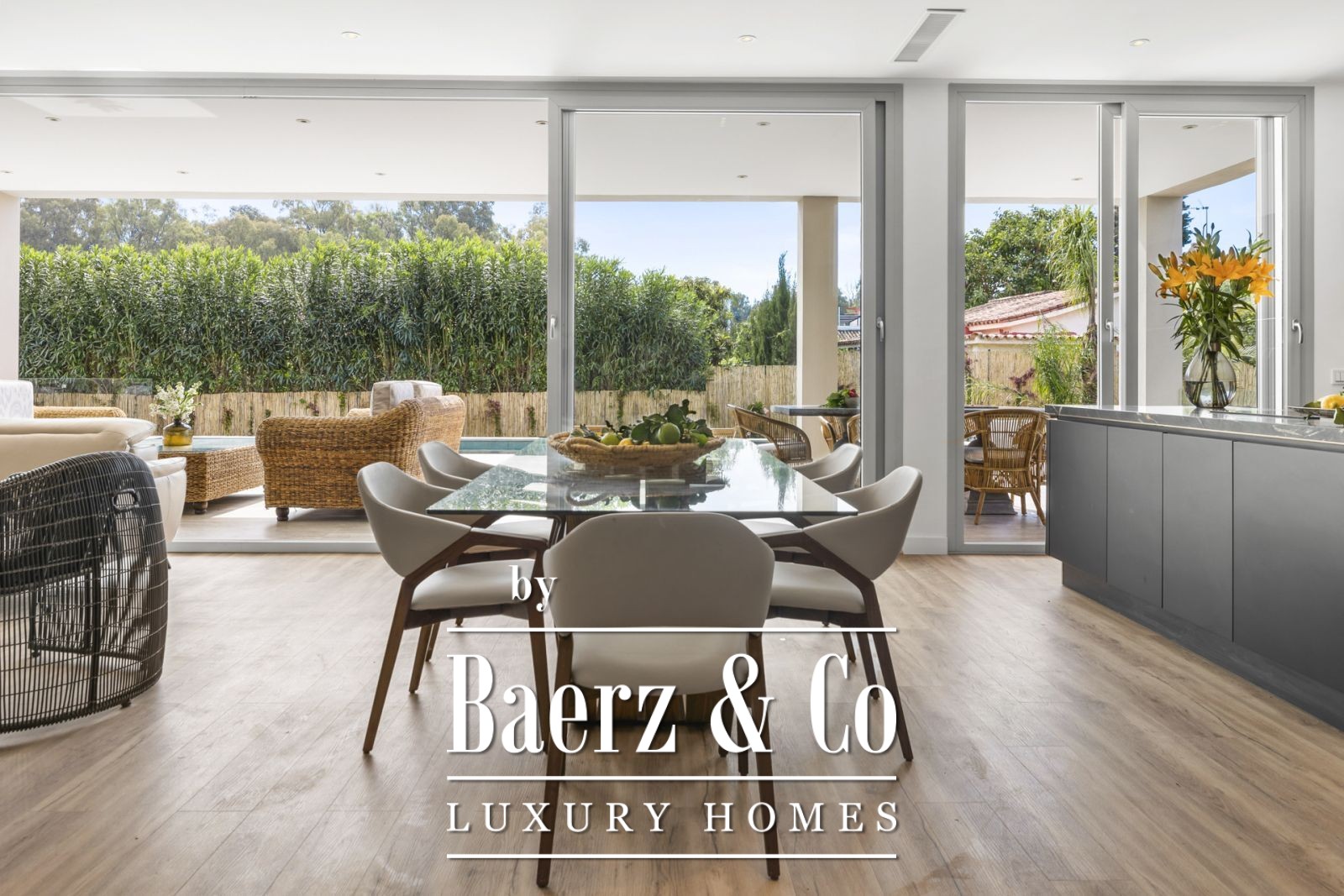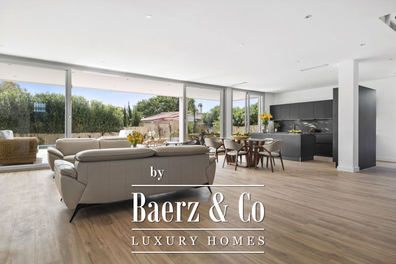 Inside, five bedrooms and four bathrooms offer spatial harmony, complemented by features such as solar panels, underfloor heating, a fireplace, and Wi-Fi dimmable lighting. Thermo glazing on the first floor enhances the sense of comfort. The villa’s private swimming pool sits harmoniously on its 610 m² plot, while a second kitchen and games room provide flexible living options for gatherings or year-round enjoyment.