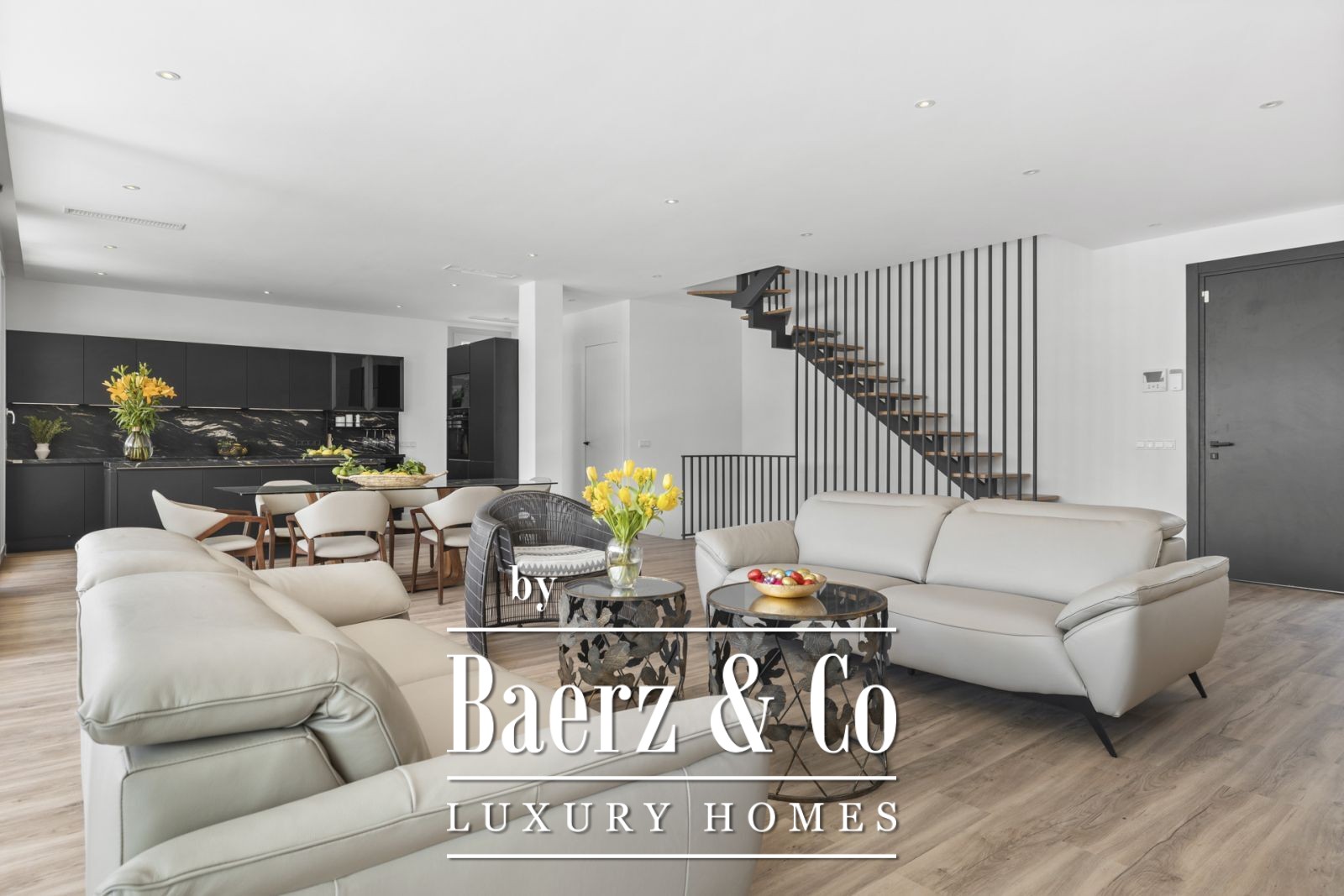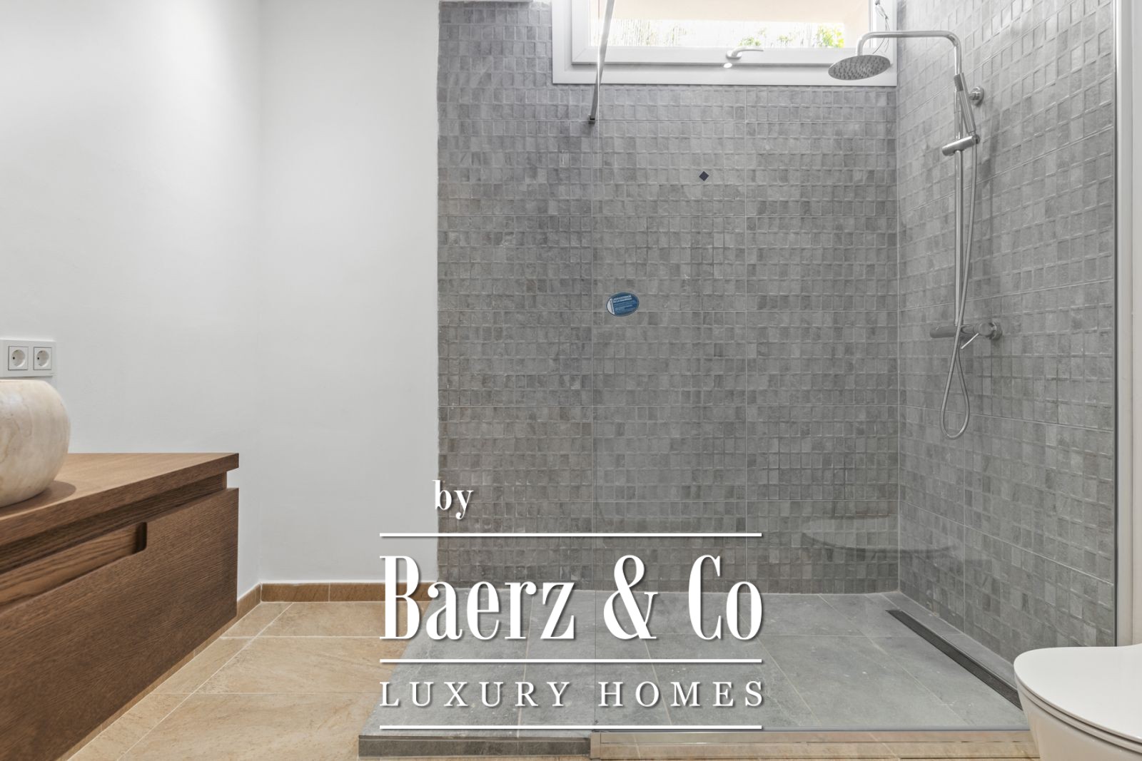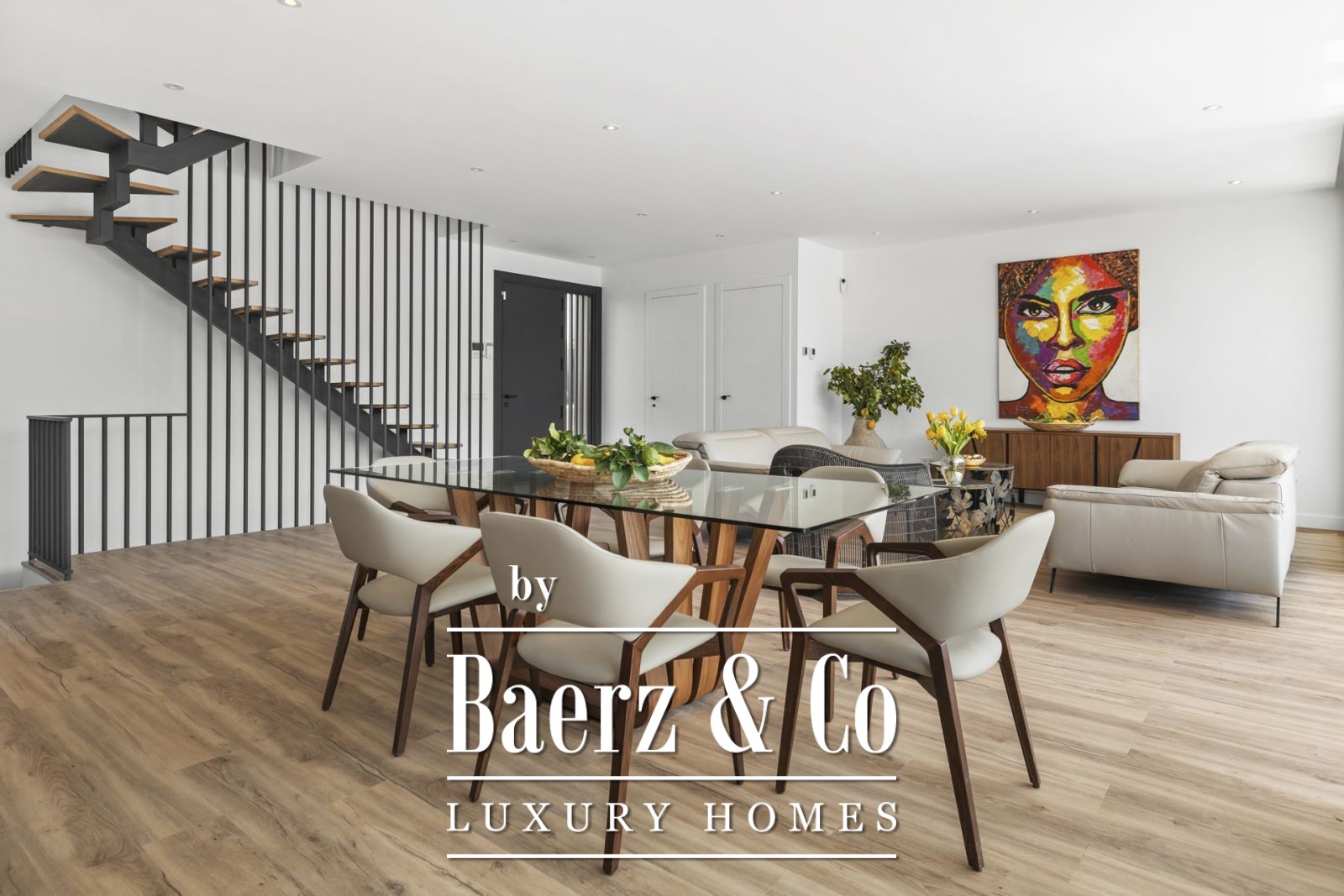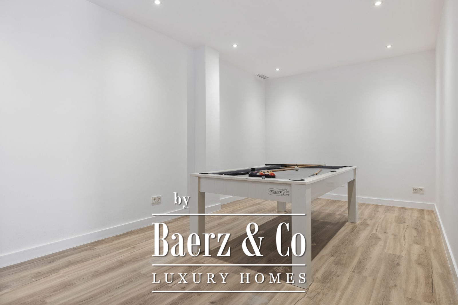 Inside, five bedrooms and four bathrooms offer spatial harmony, complemented by features such as solar panels, underfloor heating, a fireplace, and Wi-Fi dimmable lighting. Thermo glazing on the first floor enhances the sense of comfort. The villa’s private swimming pool sits harmoniously on its 610 m² plot, while a second kitchen and games room provide flexible living options for gatherings or year-round enjoyment.