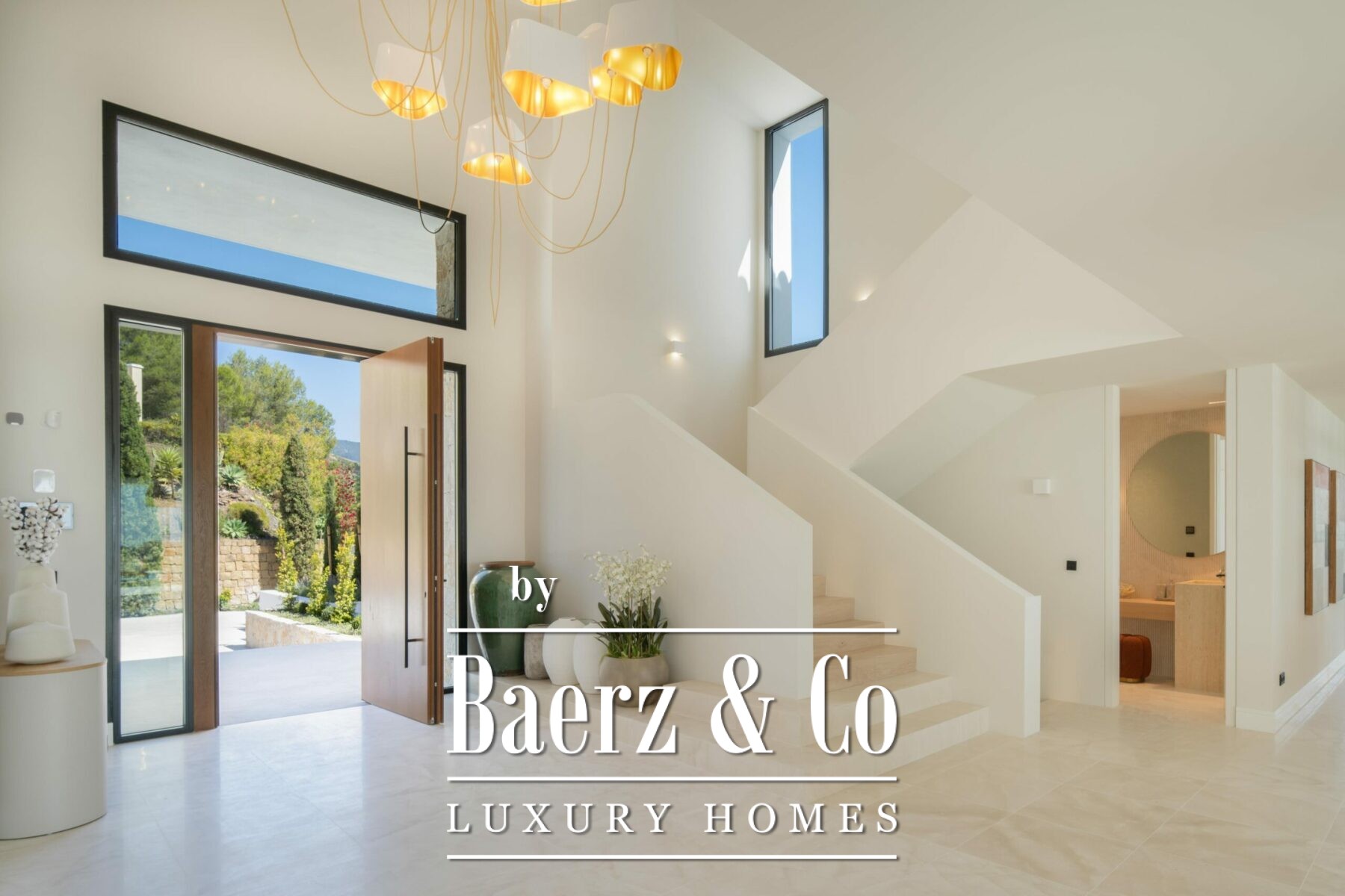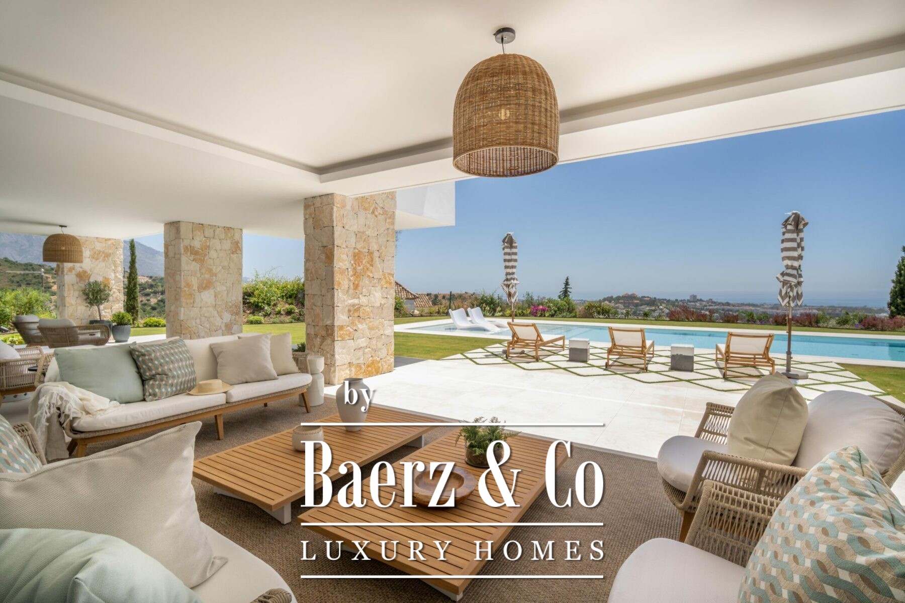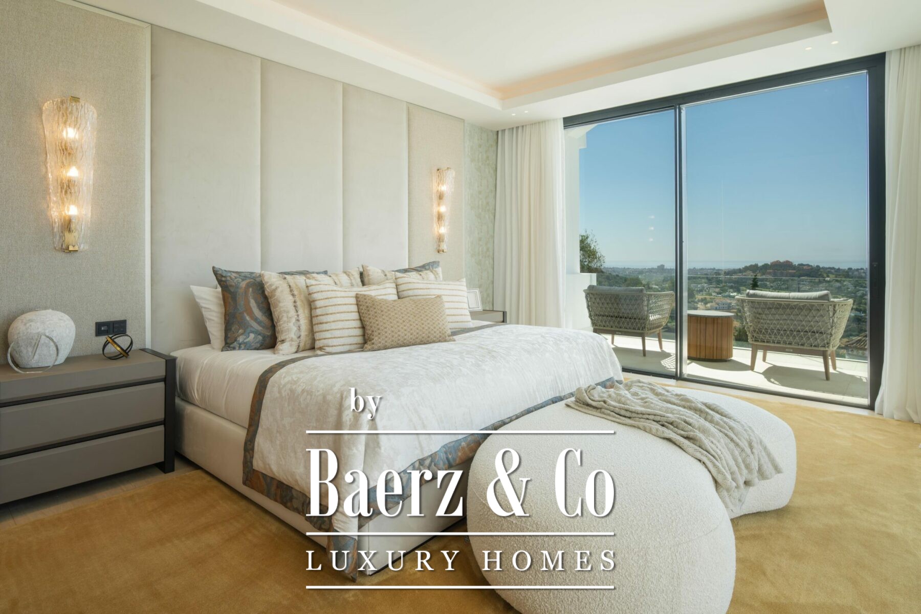 Villa Marbella with Panoramic Sea Views welcomes discerning residents to a newly completed architectural retreat by a renowned design atelier. Poised on an elevated 3,631 m² plot, this property embodies a harmonious connection between Mediterranean and French Provencal influences, reflected in the use of natural materials and traditional rooflines. The villa opens onto landscaped gardens, thoughtfully curated for privacy and visual impact, while a private pool invites moments of repose amid the serenity of mature plantings.