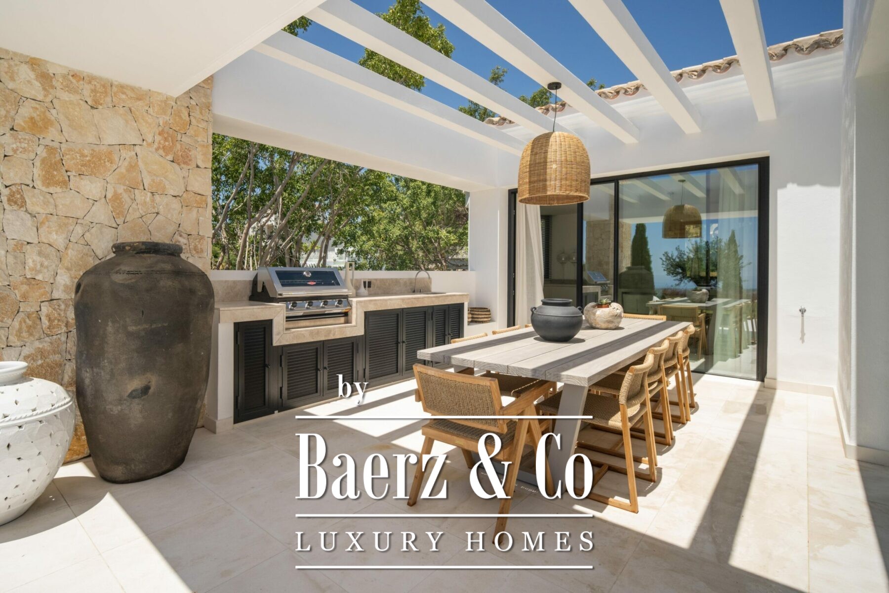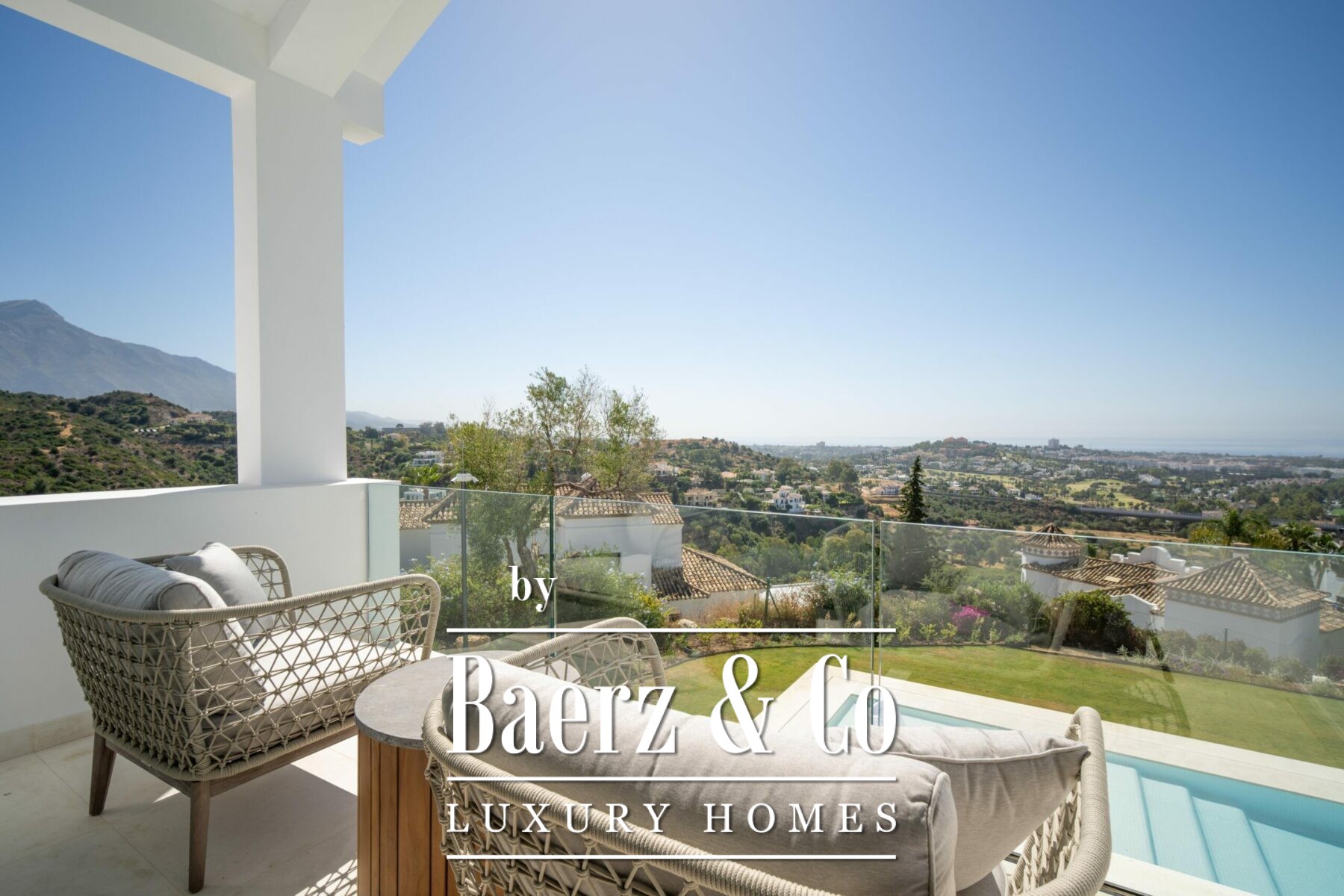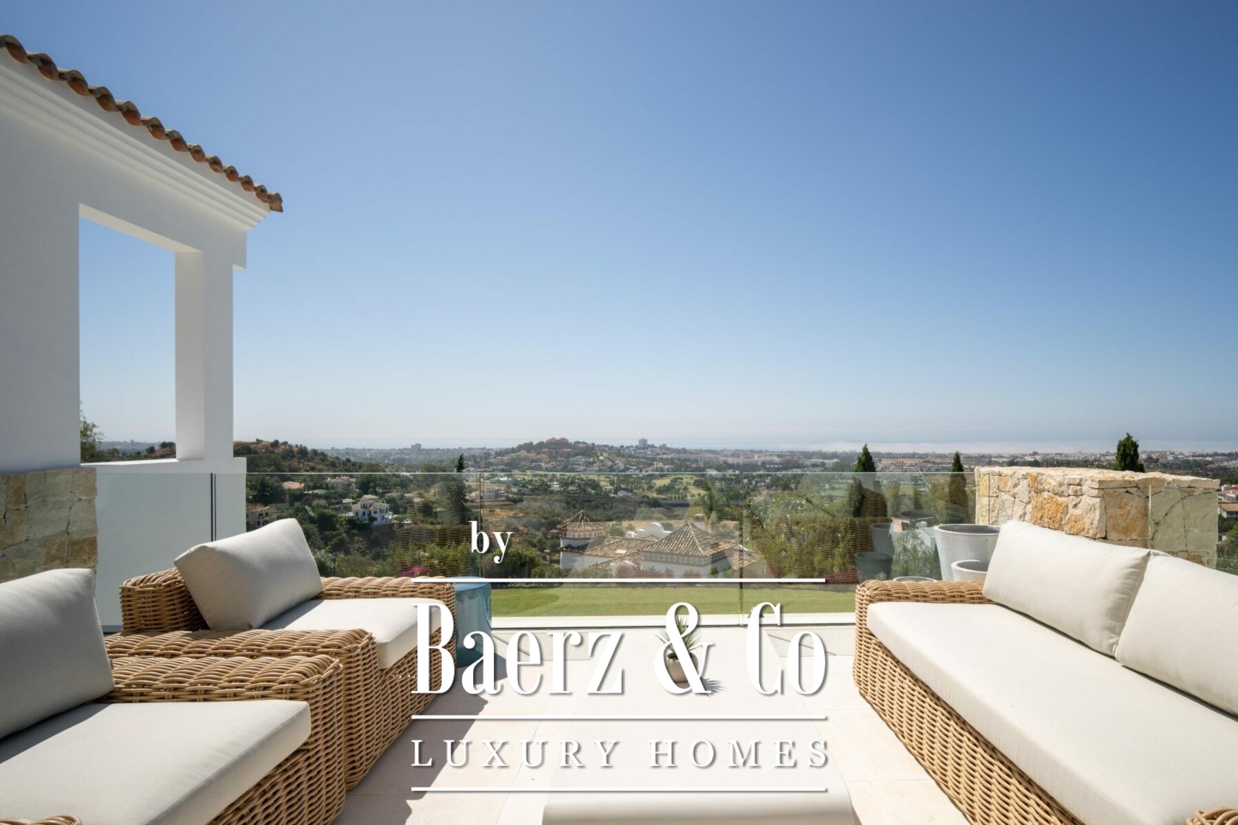 Villa Marbella with Panoramic Sea Views welcomes discerning residents to a newly completed architectural retreat by a renowned design atelier. Poised on an elevated 3,631 m² plot, this property embodies a harmonious connection between Mediterranean and French Provencal influences, reflected in the use of natural materials and traditional rooflines. The villa opens onto landscaped gardens, thoughtfully curated for privacy and visual impact, while a private pool invites moments of repose amid the serenity of mature plantings.