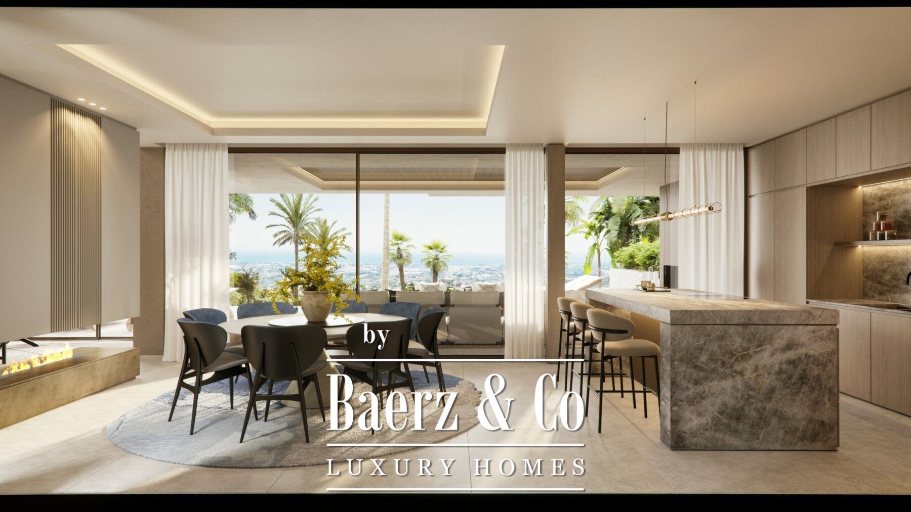 Villa Marbella with sea and mountain views invites a life of discernment within the heart of Nueva Andalucia. This villa, part of an exclusive off-plan project of twenty-six residences, occupies a 979 m² plot with a living area of 488 m², capturing the spirit of contemporary architecture. The design, envisioned by a celebrated architect, shapes open, light-filled volumes where five bedrooms and five bathrooms are woven into an intelligent flow of interior and exterior living.