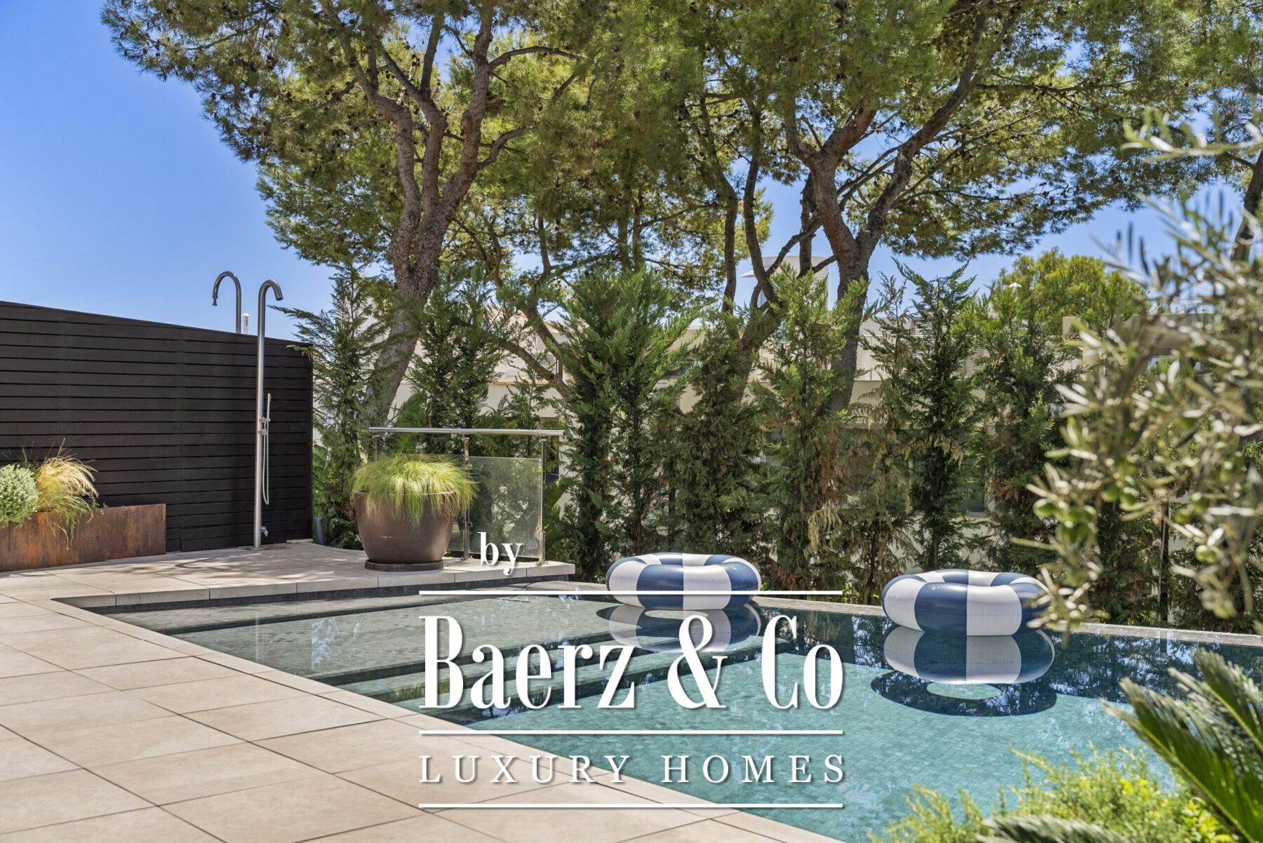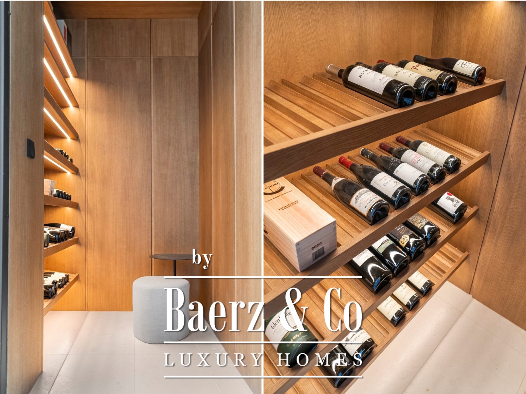 Within its 500 m² of living space, this home is composed for those who value discreet luxury. Three bedrooms and three bathrooms are complemented by bespoke finishes and a sequence of spacious, light filled interiors. The private wine cellar, walk in closet, and utility room reflect a commitment to thoughtful detail, while the golf simulator room transforms effortlessly into a home cinema or dedicated space for leisure.