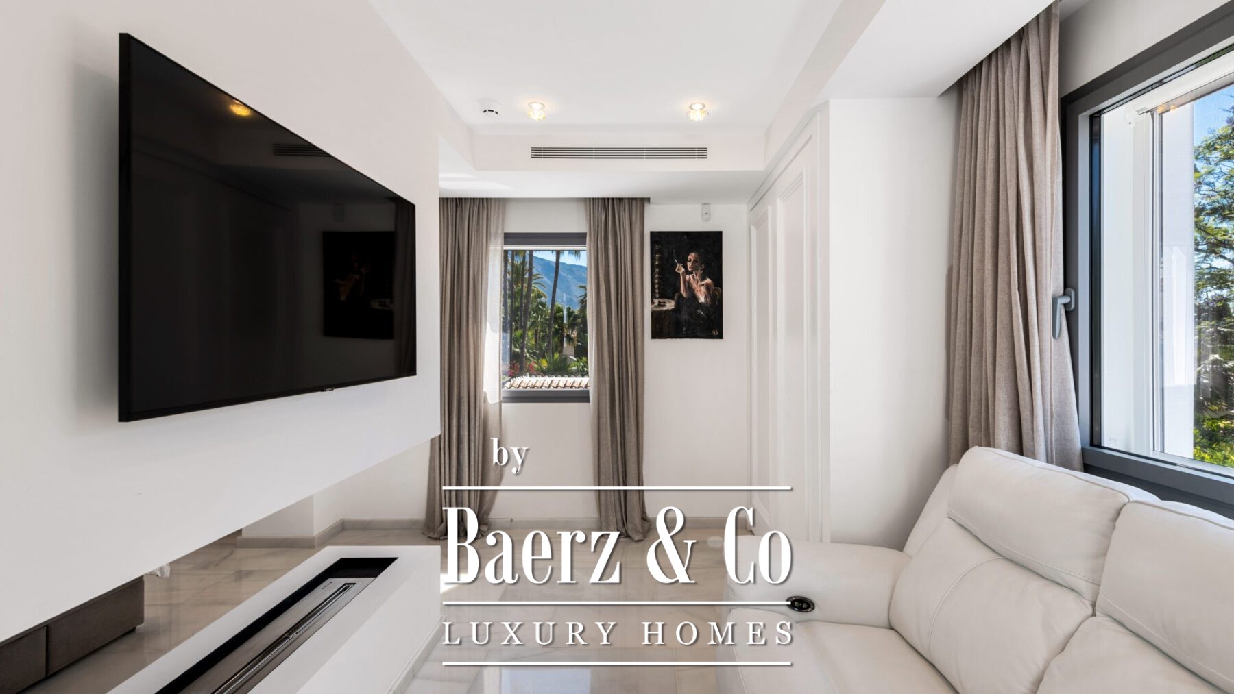 Amenities include zoned air conditioning, underfloor heating for precise comfort, a full smart home automation system, cinema room, outdoor kitchenette, BBQ, garage, and 24-hour security. With golf and mountain views, this luxury villa Marbella is both a private sanctuary and gateway to the area’s premier golf, beaches, and amenities.