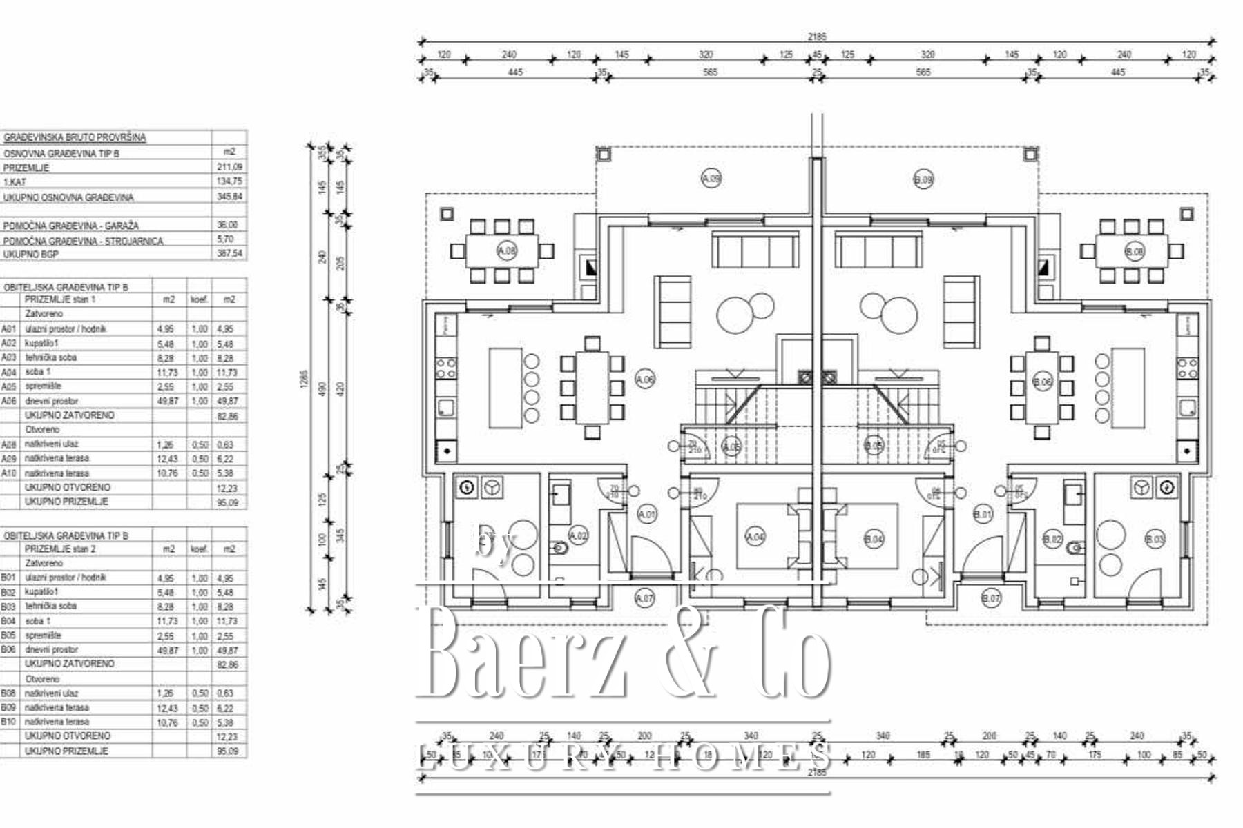 Technical rooms and utility areas are incorporated throughout, while garage spaces and parking ensure privacy and convenience. Currently offered in the low Roh-bau phase, the complex allows for further individualization. The Medulin setting—discreet yet connected to natural attractions and coastal life—adds to the villa complex Medulin’s investment appeal and its potential for personal or shared use.