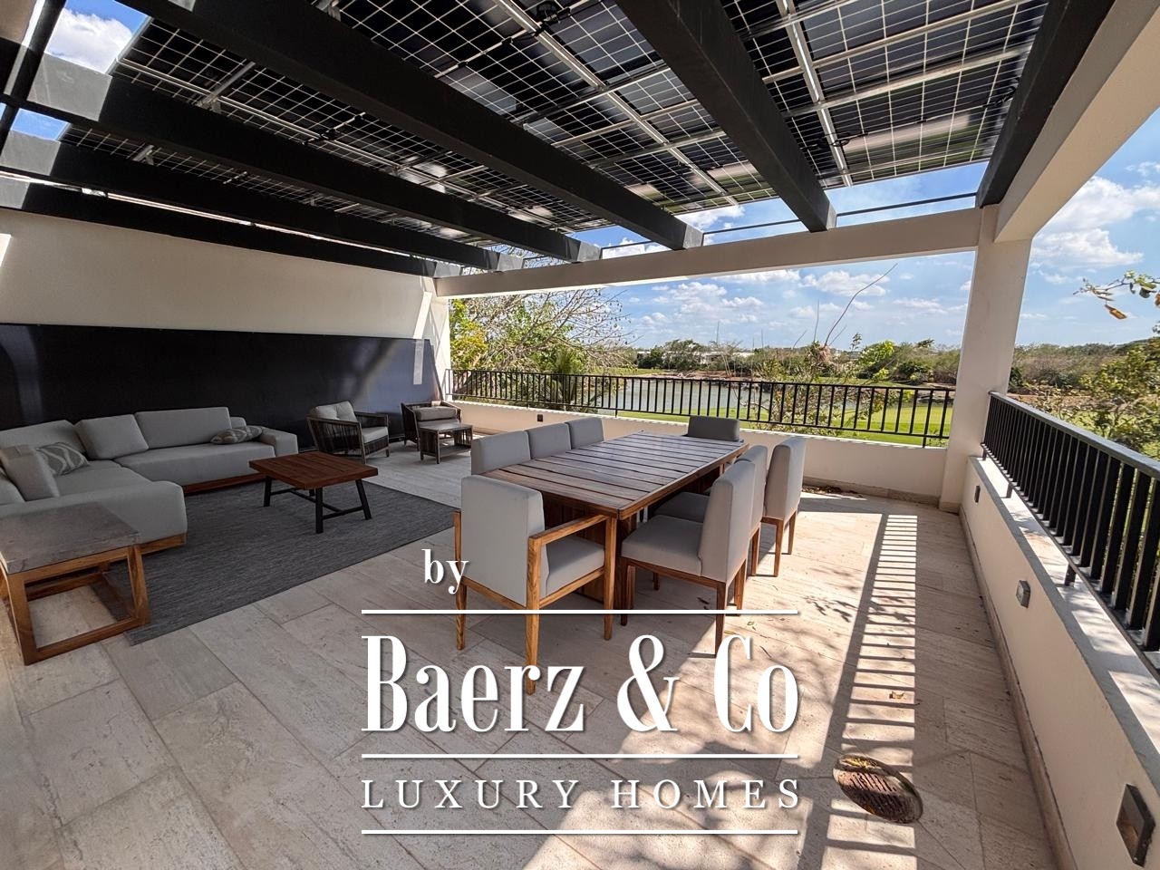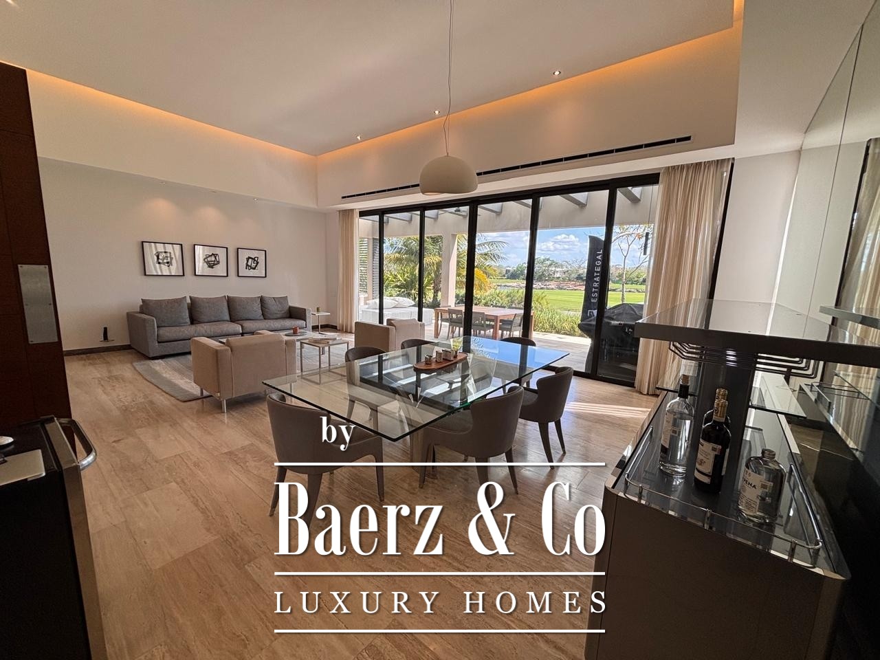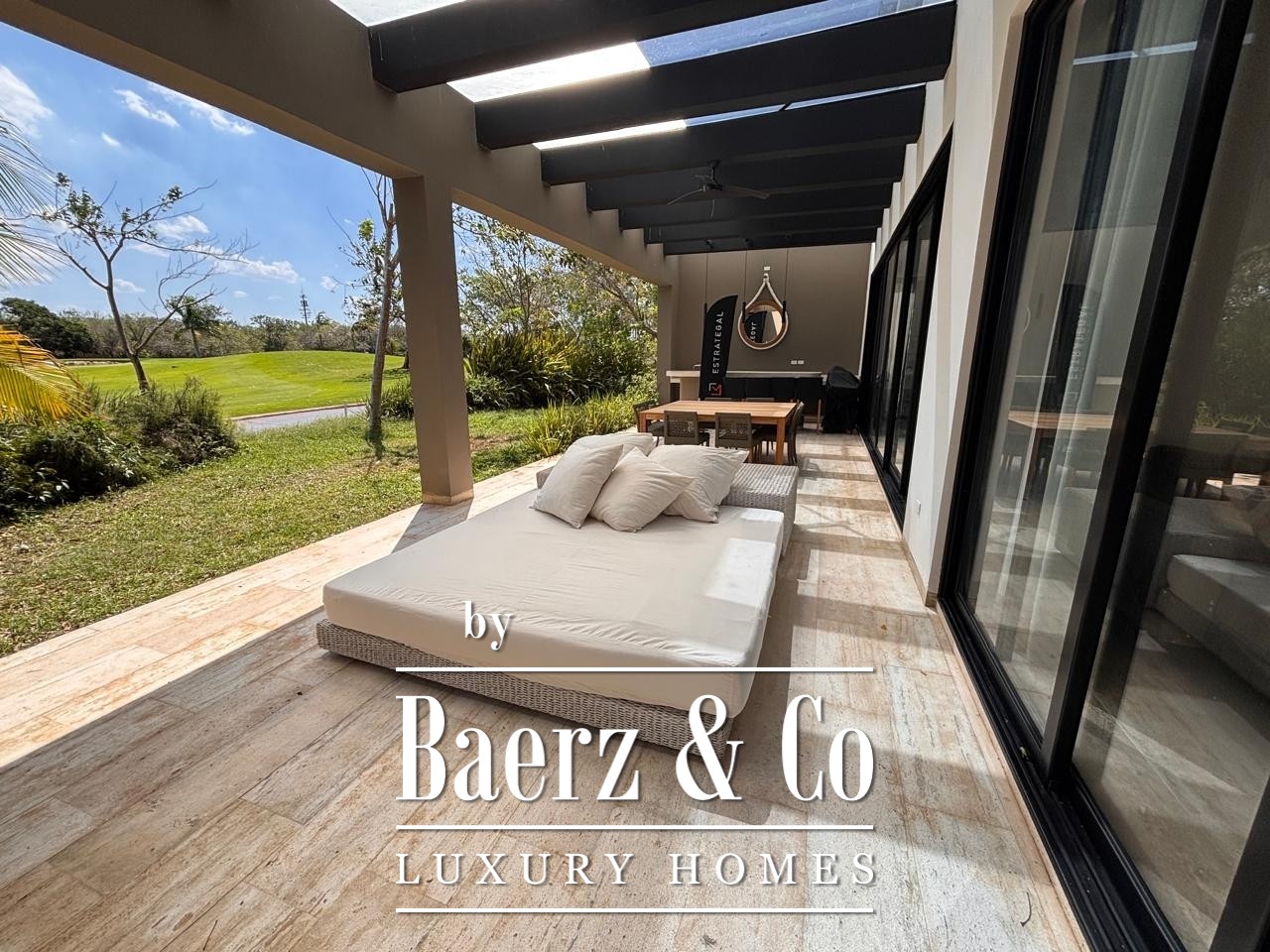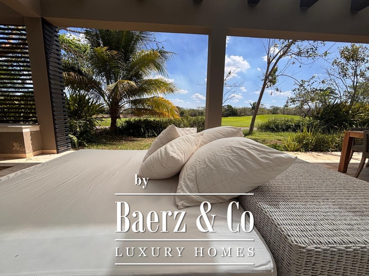 Country home Merida unfolds at the heart of Yucatan’s most exclusive gated enclave, conceived by acclaimed architects and interior designers for a life of effortless enjoyment. This fully furnished residence spans 426 m², offering a refined balance of timeless sophistication and contemporary comfort. The property’s open living and dining spaces invite natural light and garden views, while the enclosed gourmet kitchen stands ready with premium appliances. The master suite on the ground floor opens to panoramic golf course vistas, featuring a walk-in closet, private bathroom, and a secluded study or TV room. Two upstairs bedrooms, both with private bathrooms and walk-in closets, adjoin a tranquil family area and a broad terrace overlooking manicured greens.