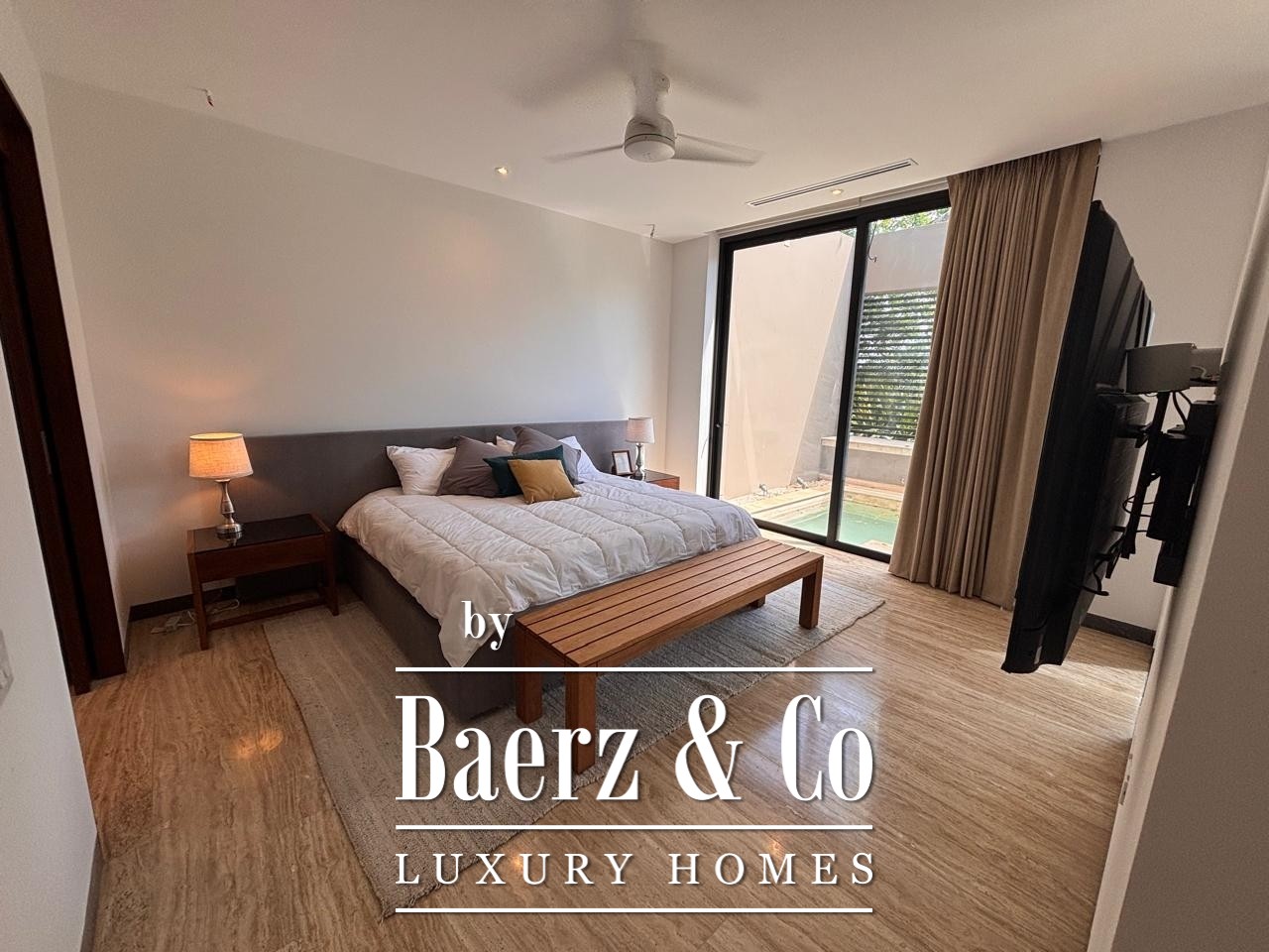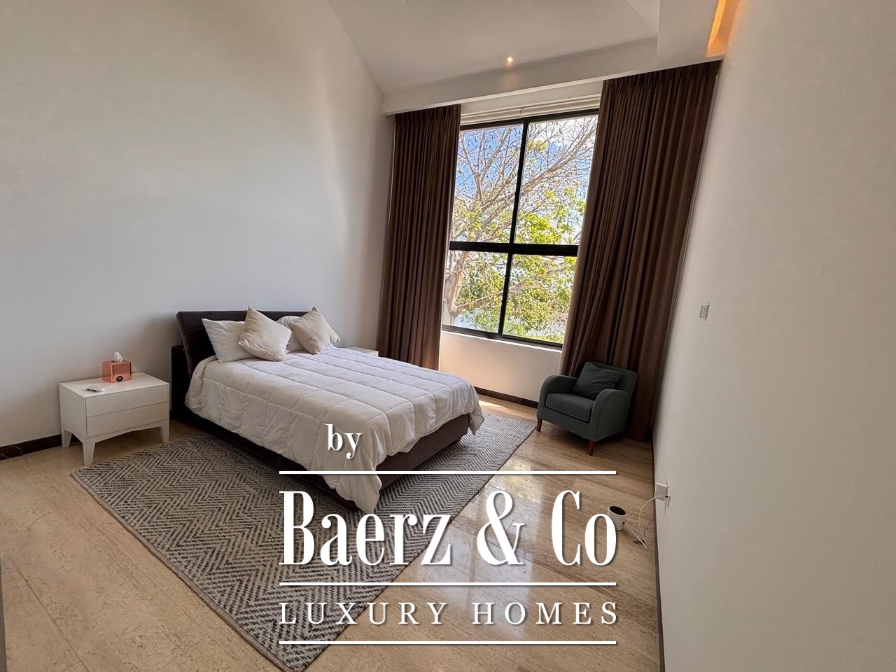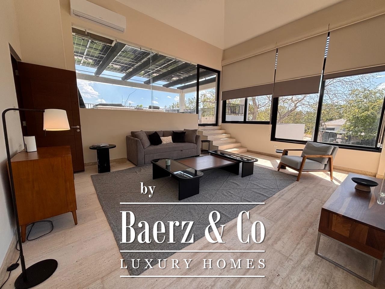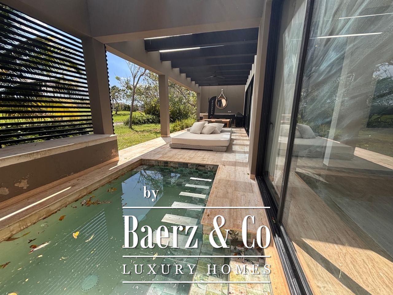 Country home Merida unfolds at the heart of Yucatan’s most exclusive gated enclave, conceived by acclaimed architects and interior designers for a life of effortless enjoyment. This fully furnished residence spans 426 m², offering a refined balance of timeless sophistication and contemporary comfort. The property’s open living and dining spaces invite natural light and garden views, while the enclosed gourmet kitchen stands ready with premium appliances. The master suite on the ground floor opens to panoramic golf course vistas, featuring a walk-in closet, private bathroom, and a secluded study or TV room. Two upstairs bedrooms, both with private bathrooms and walk-in closets, adjoin a tranquil family area and a broad terrace overlooking manicured greens.