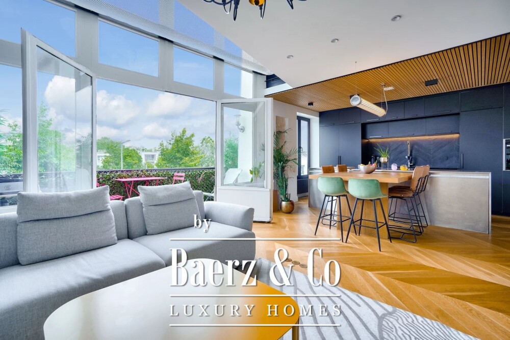 Apartment Meudon for those who understand the quiet strength of provenance and design. Nestled atop an 1860 townhouse restored to its dignified grandeur, this former artist's studio now offers 99.59 m² of restructured duplex living, with 84 m² under Carrez law and a balcony capturing serene views over Île Seguin. The journey begins through a gallery hall with a work space, leading into luminous living and dining zones paired with a modern open-plan kitchen. Flexible details include a laundry area and discreet guest toilet. Upstairs, two generous bedrooms provide thoughtful storage; one offers potential for a mezzanine, while a suspended living net of 12 m² suggests a light-hearted pause above the city. The bathroom, appointed with a sauna and Japanese toilet, is complemented by advanced home automation, a connected thermostat, and double glazing. Materials reveal a union of bespoke woodwork, original textures, and contemporary finishes. Positioned for easy access to schools, shops, and transit, the apartment balances Meudon’s heritage with the evolving horizon of Île Seguin, appealing to those who seek authenticity and calm modernity. This luxury apartment for sale in Meudon invites refined living shaped by artistry and craft.