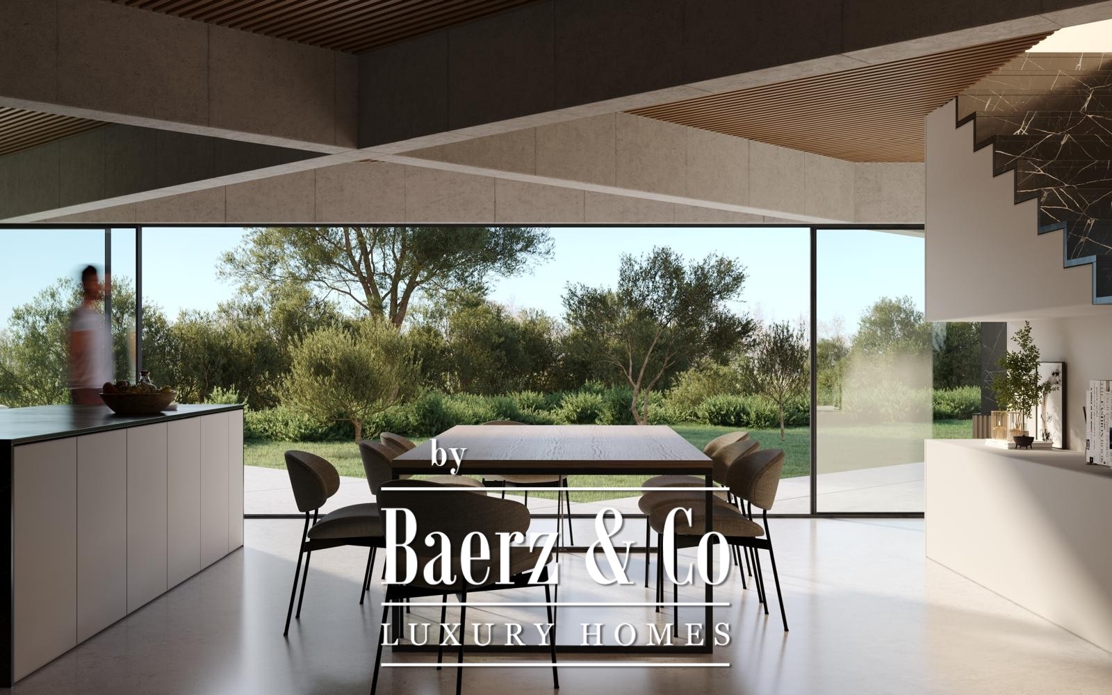 The residence extends over two floors, providing 519 m² of interior space that accommodates four suites, two living rooms, and six bathrooms with quiet sophistication. A spacious kitchen, dedicated laundry, and a garage for three cars respond to every demand of modern life. Broad glazed openings lead to the garden and a generous pool, set within a 1,323 m² plot, creating an uninterrupted flow between indoor refinement and outdoor calm.