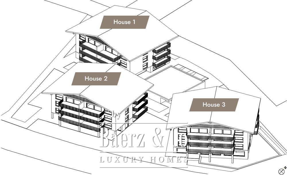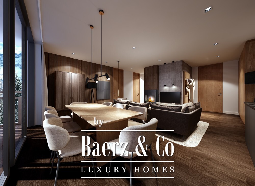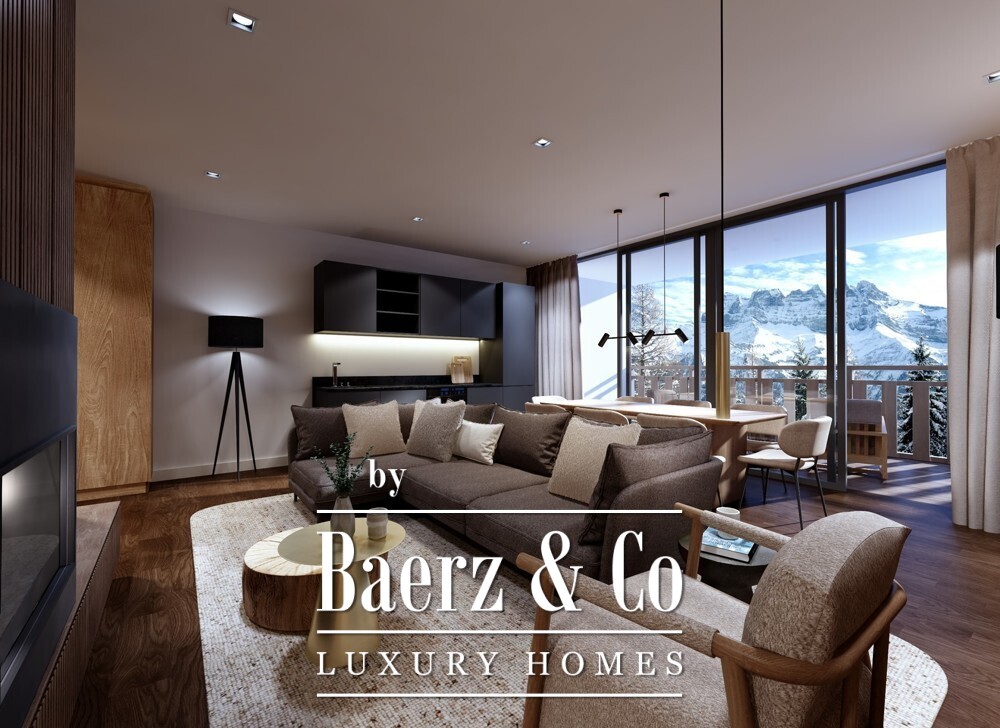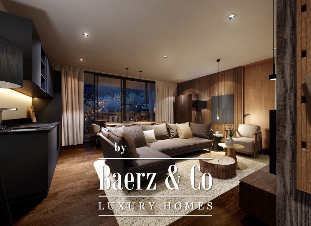 The development presents three distinct chalet-style buildings, their architecture in harmony with the alpine environment. A total of 33 managed hotel apartments sit within landscaped grounds, offering both seclusion and a sense of connection to nature. From the penthouse, expansive views reach across the Alps and the village below, framing a rhythm of daily life both dynamic and tranquil.