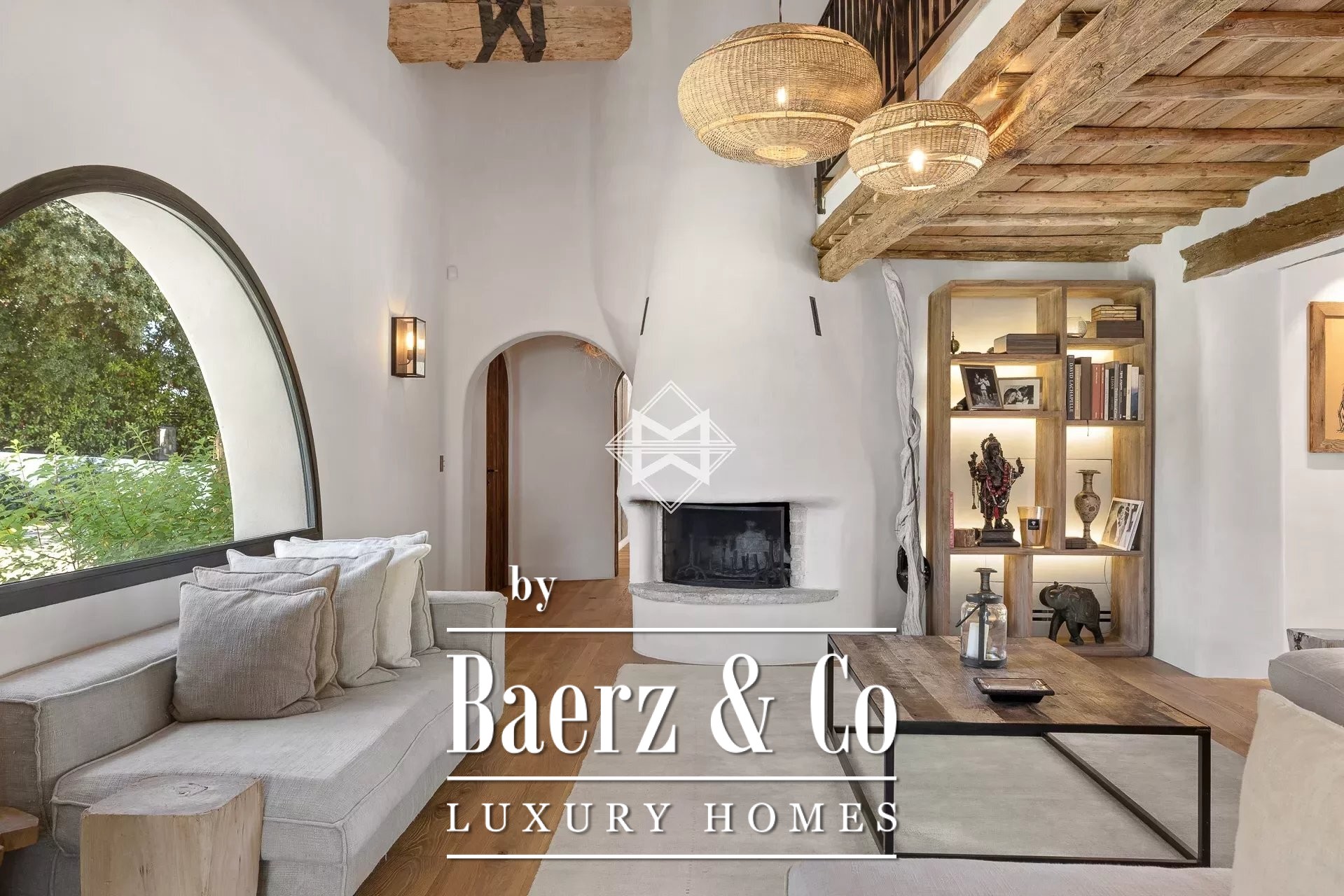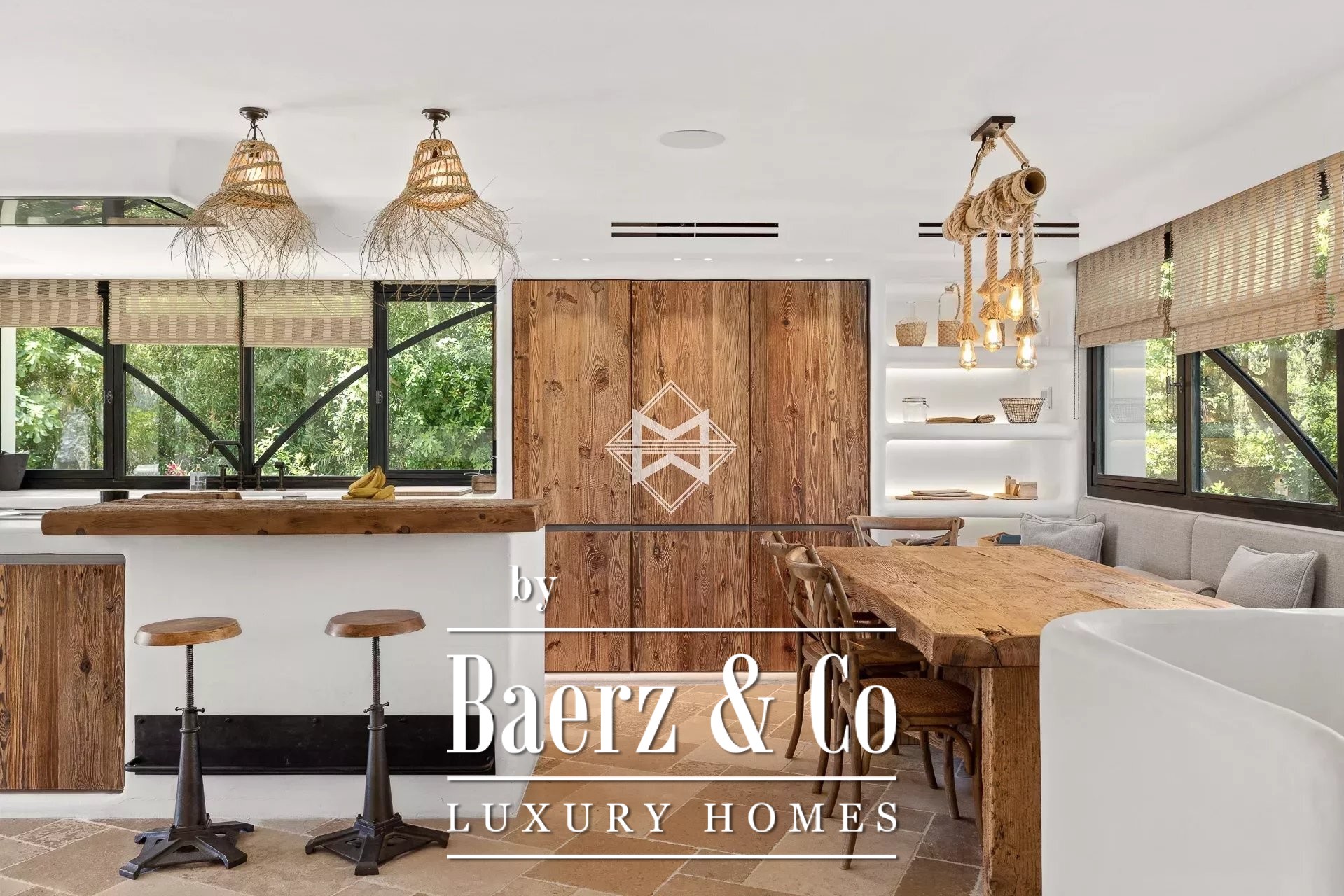 Villa Mougins, set in a prized residential pocket of Mougins, embodies Mediterranean poise. This villa Mougins offers 400 m² of thoughtfully restored interiors, where stone floors, wood panelling, and natural parquet lend tactile warmth to every room. The property opens onto panoramic views of green hills and forest, suffusing the home with a sense of calm and privacy.