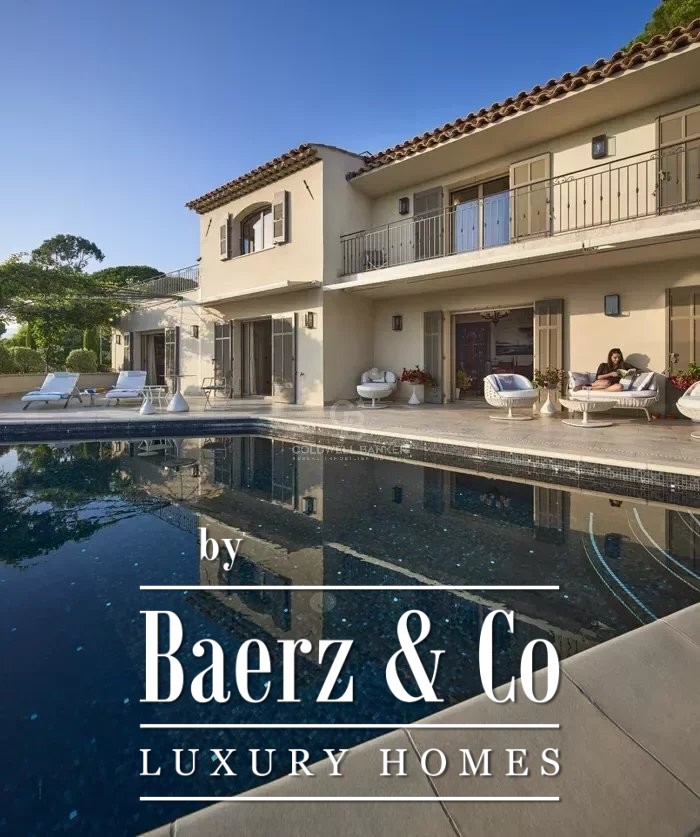 Neo-Provençal villa Mougins blends classic Provençal architecture with carefully selected Contemporary and Art Deco accents. Set on elevated ground, this 721 m² residence, including annexes, is thoughtfully secluded, just minutes from international schools and 15 minutes from Cannes' Croisette beaches. Panoramic sea views stretch across the Esterel mountains, while mature gardens envelop the heated swimming pool in privacy.