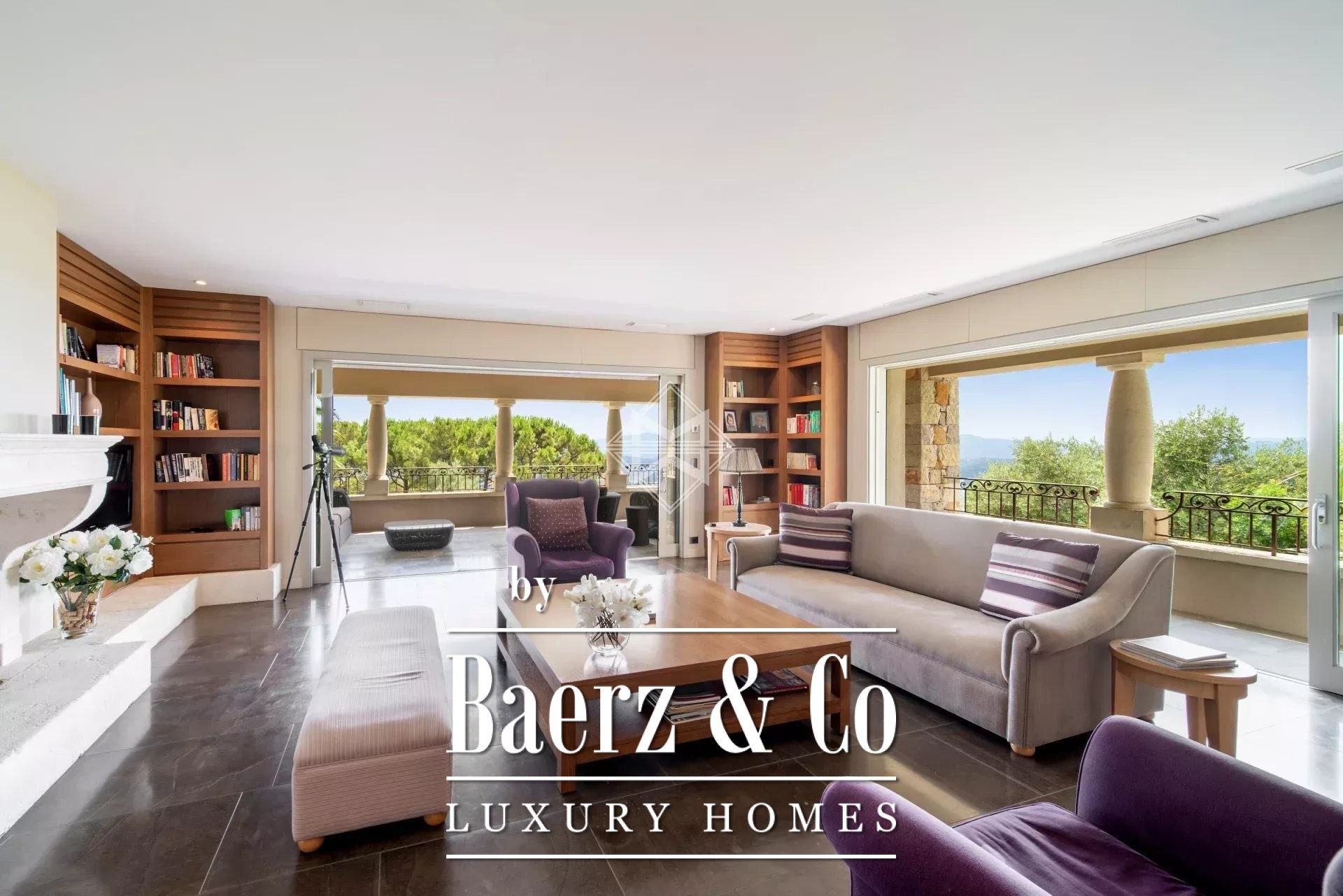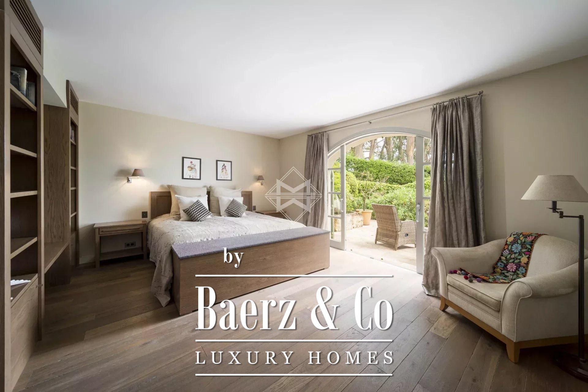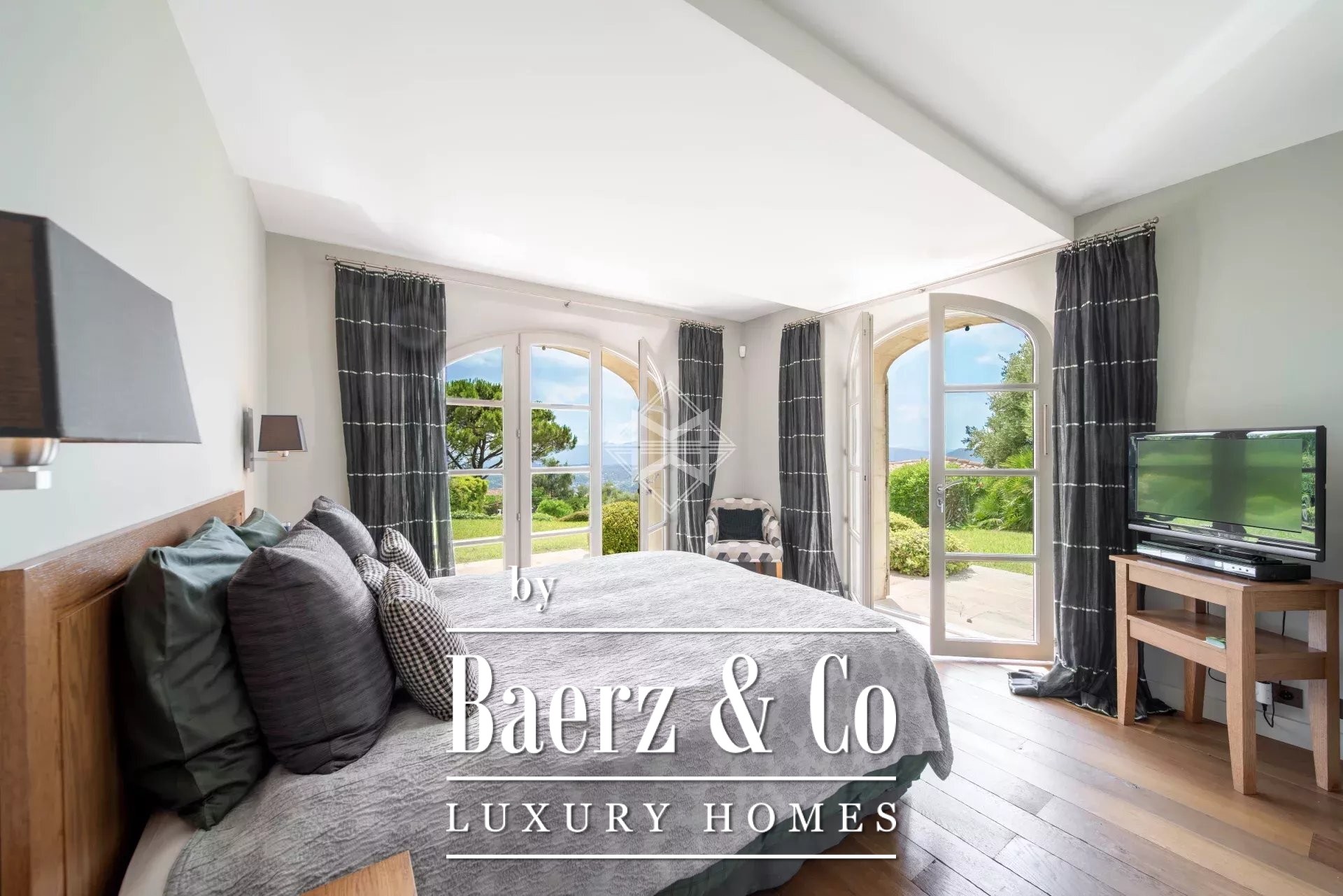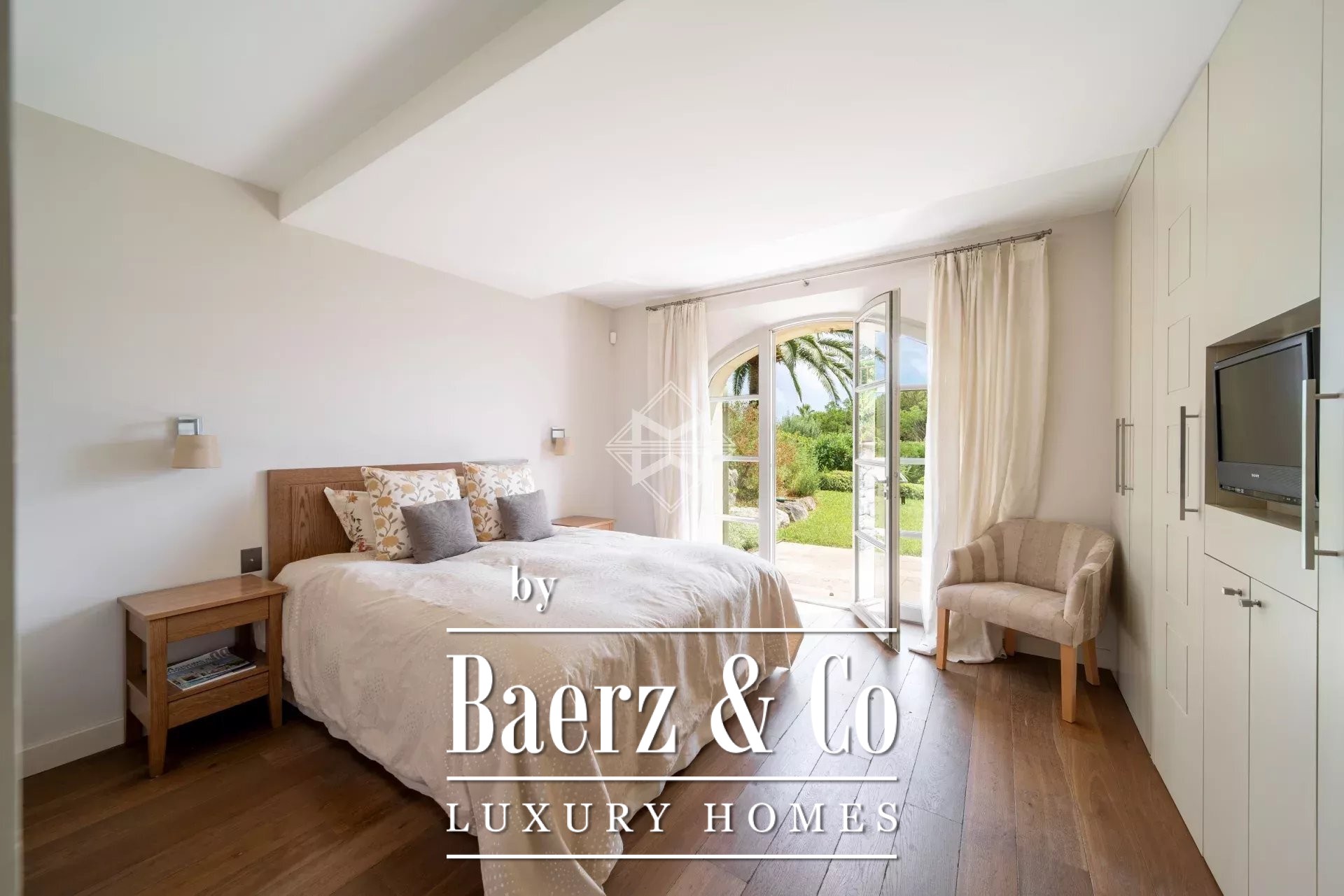 Each of the four en-suite bedrooms is designed for privacy, including a distinguished master suite that balances comfort with understated elegance. The architecture honors tradition, featuring a south-facing orientation that bathes the spaces in natural light and frames vistas extending to the Esterel Massif and the sea.